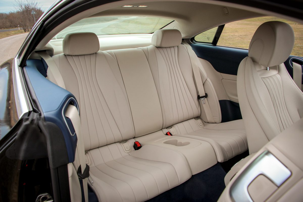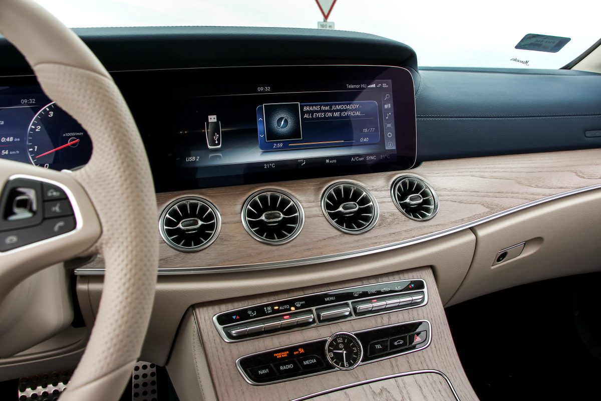 Az övvonalat puszta domborulatokkal oldották meg, az egész nagyon letisztult, mégis pompásan kiadja azt a formát, amit szerettek volna. Benne van a Merci vonás, de mégsem, trükkös és kifinomult. Az AMG csomag miatt kicsit agresszívabb az első lökös, a hűtőmaszk viszont így is rendkívül hangsúlyos, ahogy a dupla menetfénycsíkos LED fényszórók is. Imádni való a két domborítás a géptetőn, de valójában a B-oszlop nélküli, lehúzott ablakos állapotában mutat igazán jól. Egy csodás kupé, amit még feketében is megnéznek, hát még, ha valami rendes színt kapott volna.Lehúzott ablakokkal mutat igazán jól, hiszen nincs B-oszlop. A forma miatt kicsit magasnak tűnhet, és vezetés közben is azt érezzük, hogy futhatna alacsonyabban