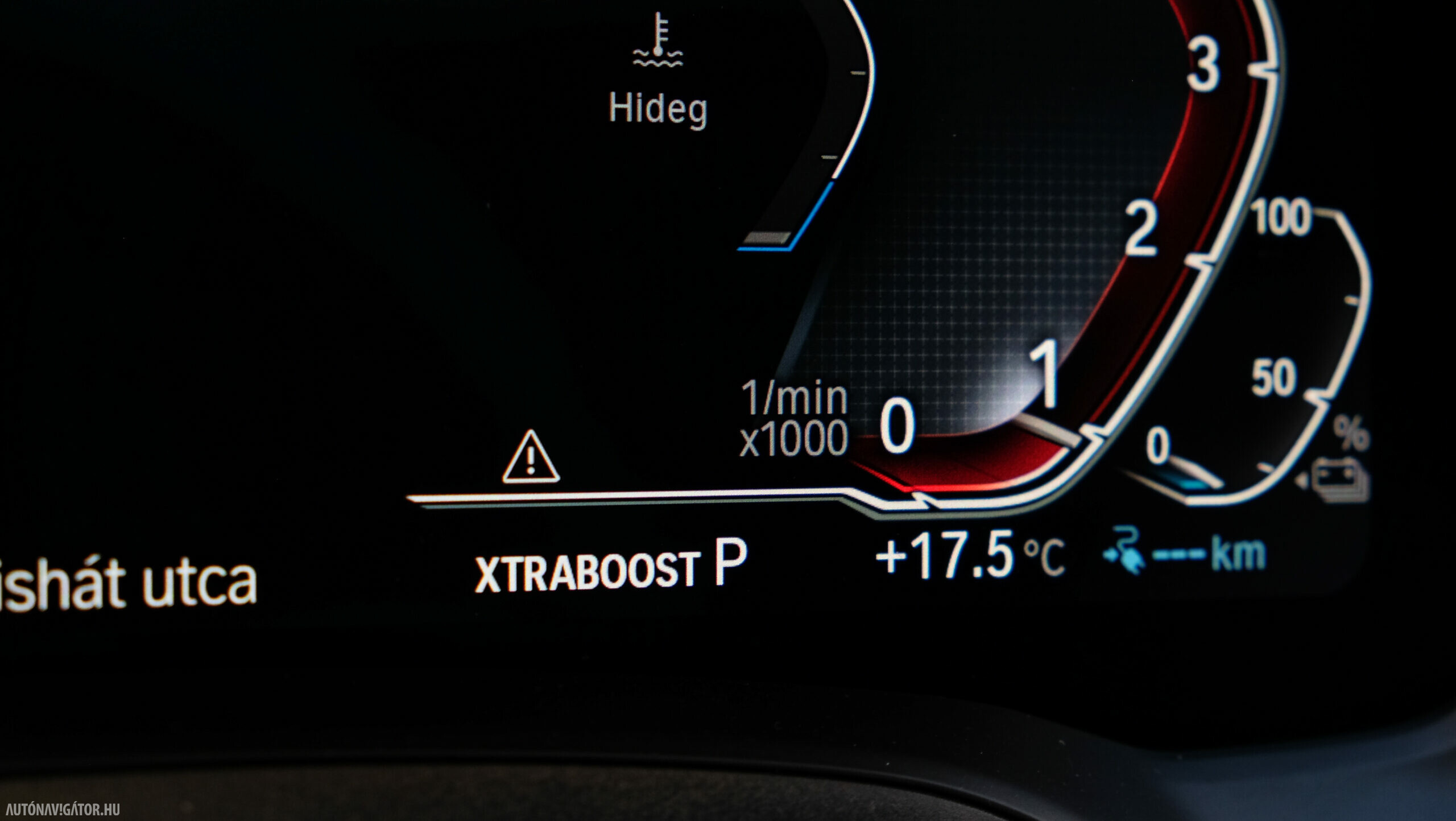 5-6 kilométernyi Sport módos nyúzás után 2-3 kilométer elektromos hatótáv jelenik meg a kis kijelzőn, akkor is, ha nulláról indultunk. Mindig tartalékol annyit, hogy elektromosan tudjuk elindulni, a parkolóban manőverezni hibrid üzemben, vagy ha előzni kell, akkor rá tudjon segíteni. A fék adagolhatósága nem tűnt másnak, mint hagyományosan, a nagyobb M Sport fékek itt is harapnak, de a gázelvételkori jelentős lassulás miatt kevésszer kellett úgy igazán fékeznem.