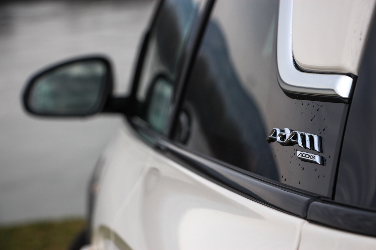 Pofás külső, vigyorgó arccal. Az Adam rengeteg színkombinációban és felnivel rendelhető. A Rocks esetén a körbeműanyagozott karosszéria és a vászontető alapfelszereltség, a hasmagasság 15 mm-rel emelt