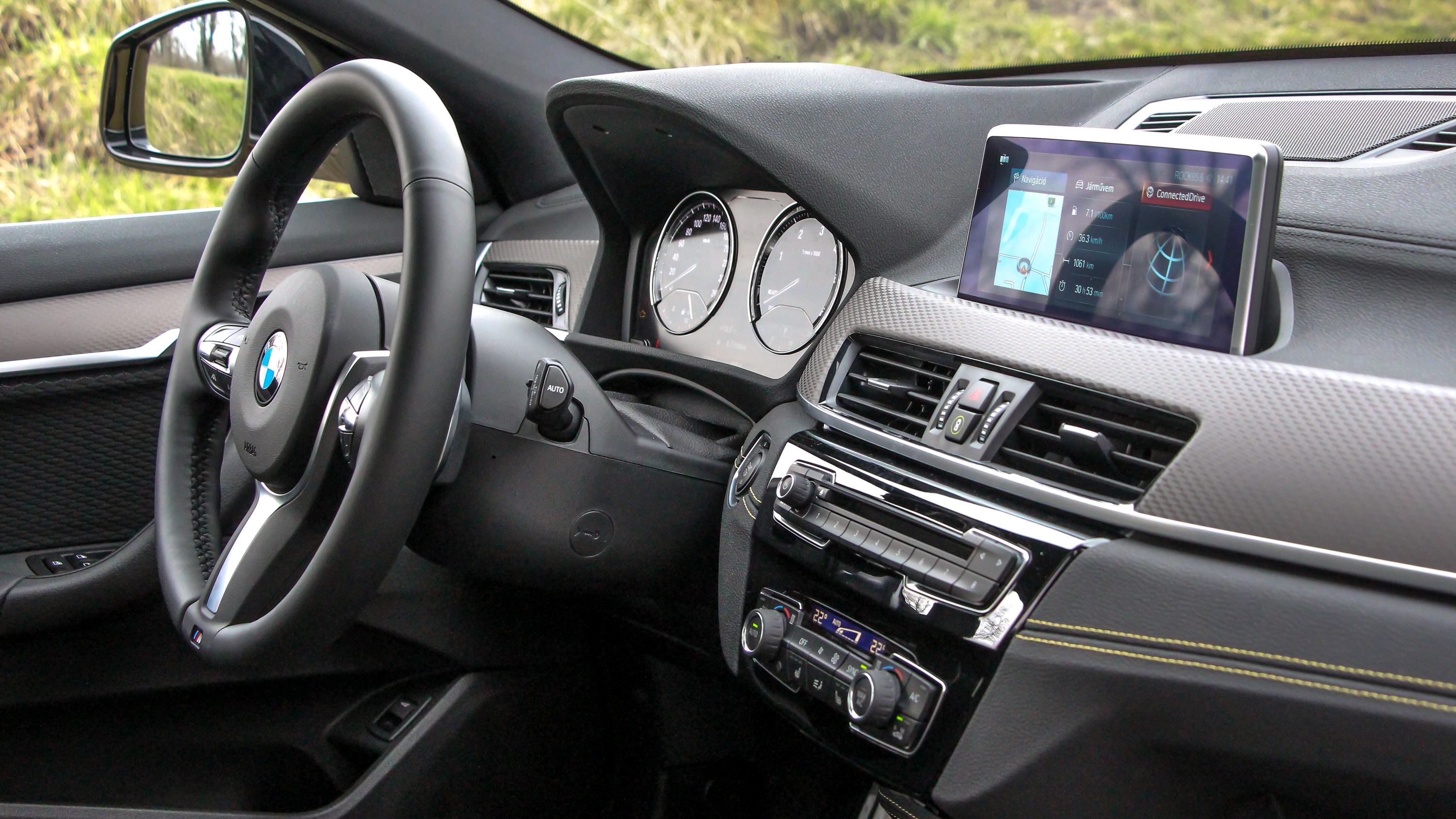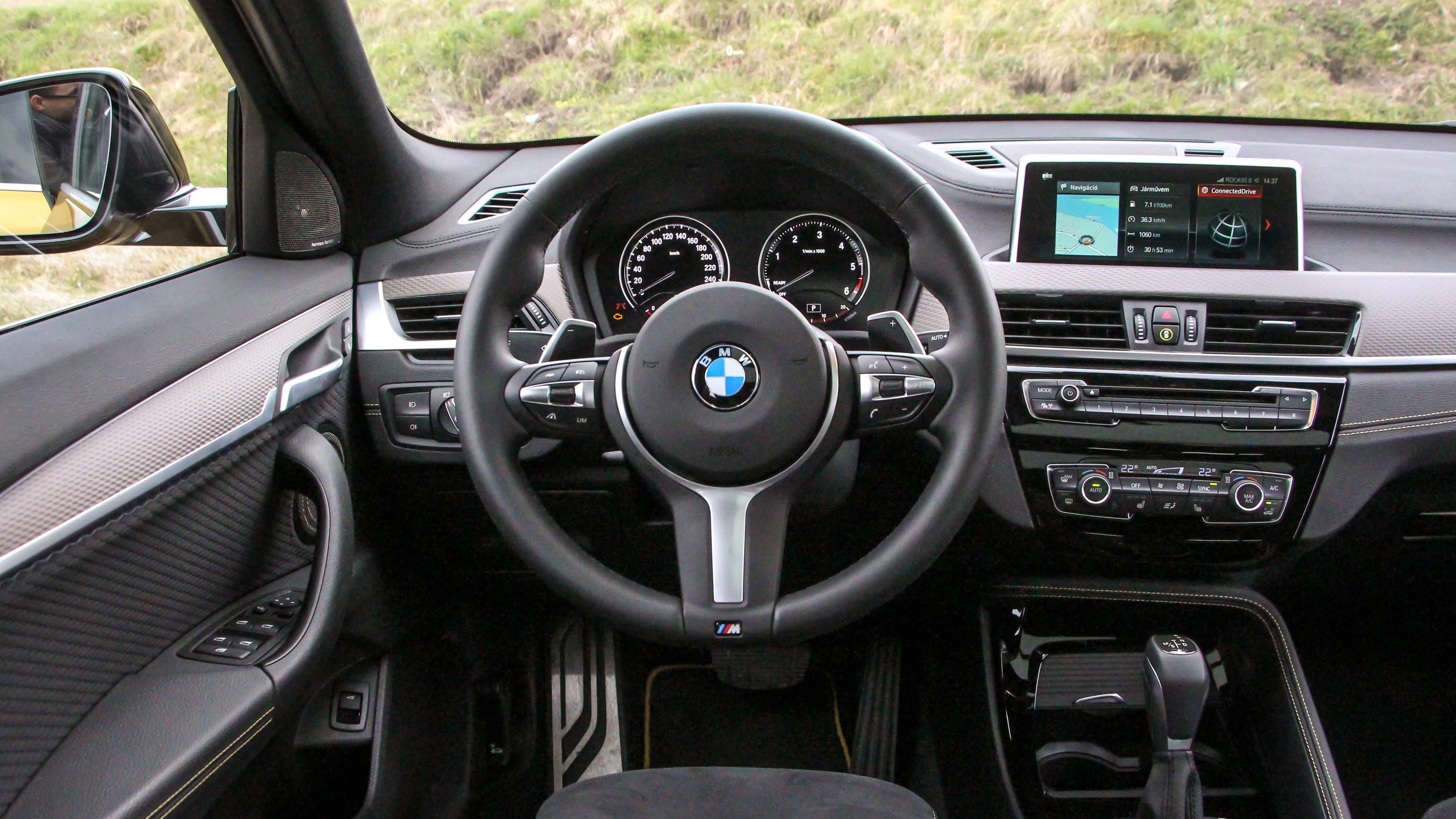 Mindkét gyártó érti, hogyan kell sportos hétköznapi autót, vagy jól mozgó nagykategóriás limuzint csinálni, így az eredmény nagyjából borítékolható. Akkor is, ha mindkettő keresztmotoros és elsőkerékhajtású alapból, hisz mint tudjuk, a BMW is képes nagyon jó elsőkerekes platformra épített autót csinálni, lásd a Minik. Az X2 padlólemeze ráadásul pont ugyanaz, mint az új Countrymané, vagy épp a 2-es Active és Grand Toureré, na meg persze az X1-é. Az X2 mozgása, pláne xDrive-val kifogásolhatatlan, nincs orrtolás, nincs bénaság, mintha sínen húznák. Az X2 súlya nagyjából annyi, amennyit tippelnénk, picivel 1,5 tonna feletti, ami egy ekkora autótól elfogadható, pláne, hogy még összkerékhajtás is van. Ennek ellenére rendkívül nehéznek érződik vezetés közben, a kormányzás indokolatlanul súlyos érzetű, ennél lehetett volna egy hangyányit erősebb a rásegítés. Az is igaz, hogy így minden pillanatban komolyan vesszük, és élvezzük, hogy egy kicsit küzdhetünk vele. A súlyos érzet mellé rendkívül kemény futóműhangolás tartozik, ami még a 18 colos kerekekkel is határozottakat üt a gerincünkön, de ez garantálja azt is, hogy tempós kanyarban nem dől észrevehetően a karosszéria.