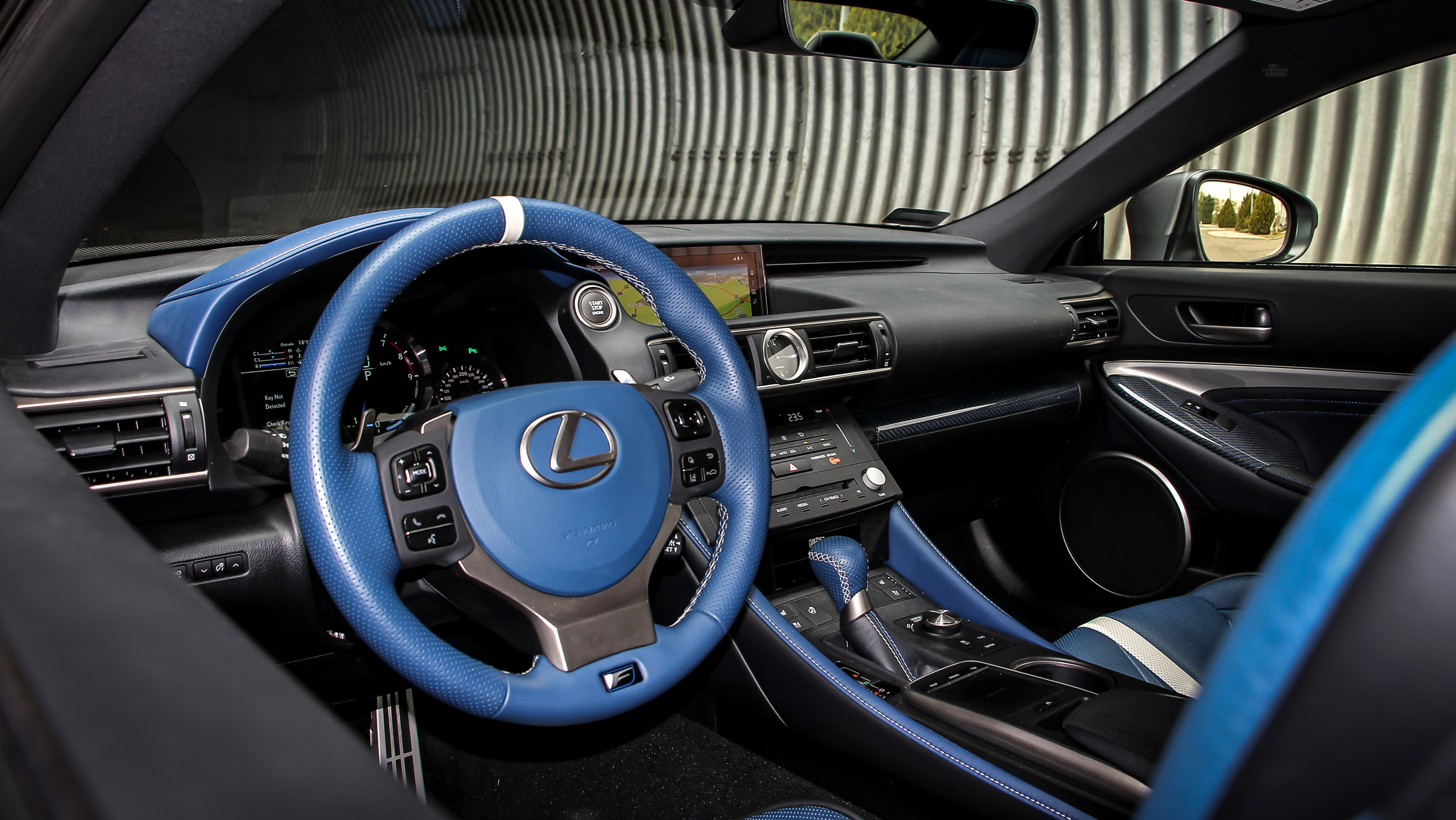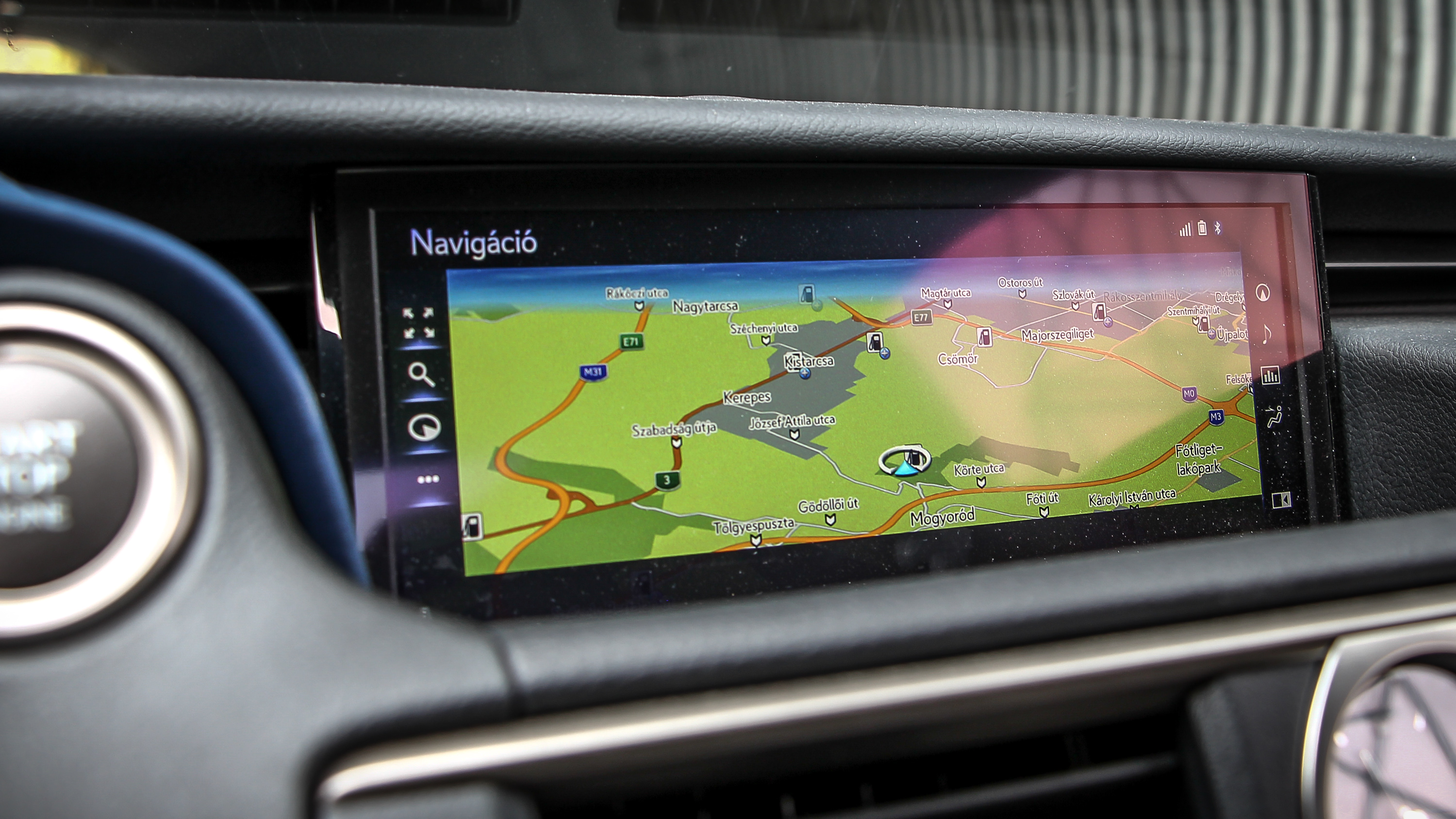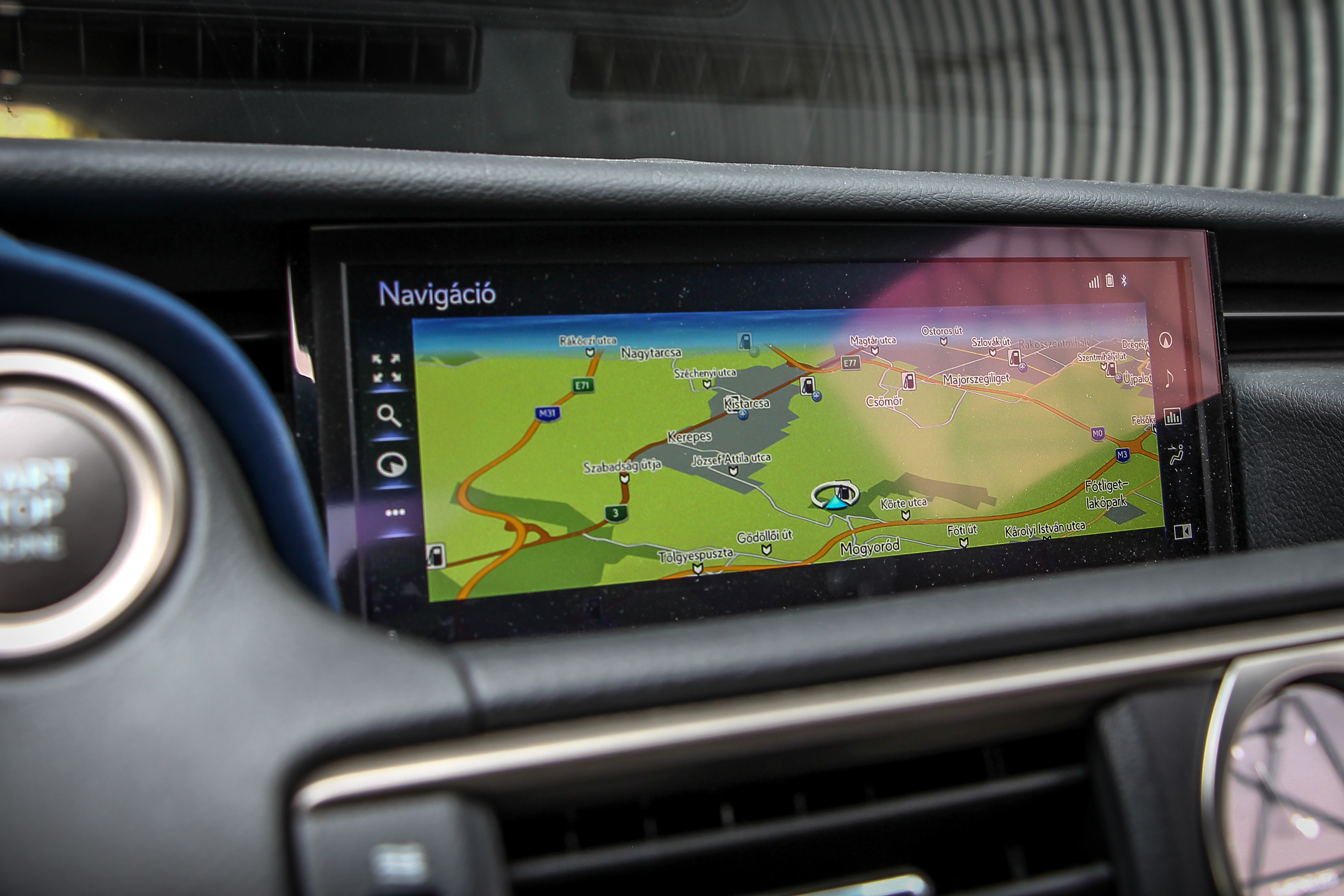 Az RC beltere hasonló a külsejéhez, olyan, mintha minden egyes négyzetcentiméterét más tervezte volna és máshonnan szerezte volna hozzá az anyagot. Nem akarok ezen sokat rugózni, mert ízlés kérdése, de a 10 colos multimédiás kijelző vibrálásának szeretetét senki nem fogja nekem bemagyarázni. Utoljára 10 évvel ezelőtt csinálták ezt az olcsó síkképcsöves tévék, a kezelőszervet és a menürendszert sem mondanám újabbnak, szerencsére van, ami erről tökéletesen elveszi a figyelmet, ahogy az agyon ajnározott, valójában csak az átlagnál hajszálnyit szebben szóló Mark Levinson hifiről is. Ez a motor, és a hajtás, az a váltó, a differenciálmű, meg a kormányzás.