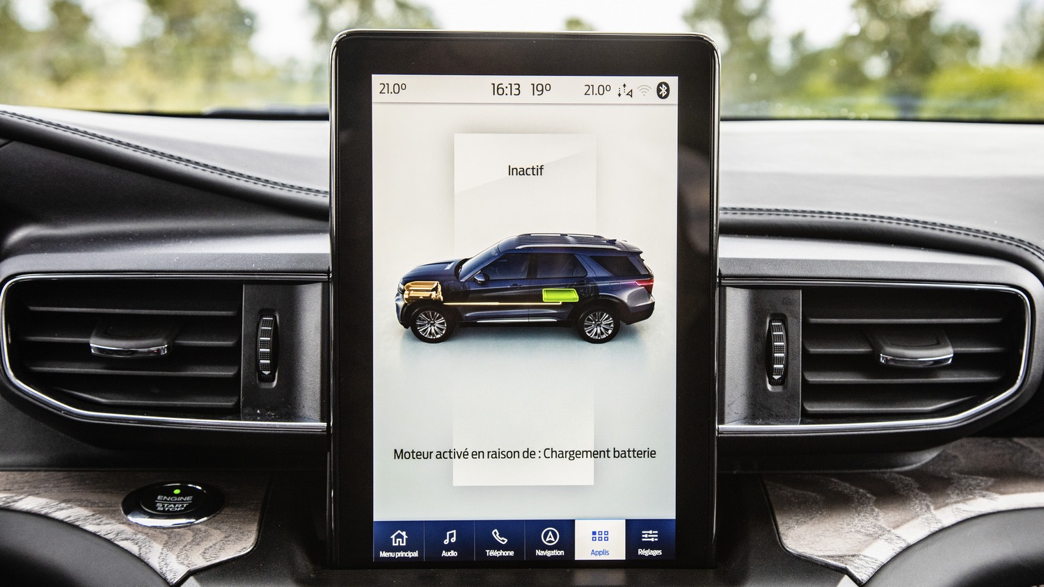 A rendszerteljesítmény elérheti a 450 lóerőt és a 840 Nm nyomatékot is, ezért a Ford sportos programot és futóműhangolást készített az óriáshoz. Az Explorer felépítését tekintve klasszikus hosszmotoros és alapból hátsókerékhajtású, de mindegyikhez jár az elektronikusan vezérelt összkerékhajtás és a 10 fokozatú automata váltó is. Beépített akkumulátora 14 kWh-s, melyből a felhasználható 13,1 kWh-val 40 kilométeres tisztán elektromos hatótávra képes, ami egy városi ingázáshoz már elégnek mondható. Ezt tartalékolhatjuk, vagy kimeríthetjük teljesen, de kérhetjük tőle hogy a benzinmotort generátorként használva töltse fel, mindre van külön program, ahogy vezetési menetmód is, összesen hét.