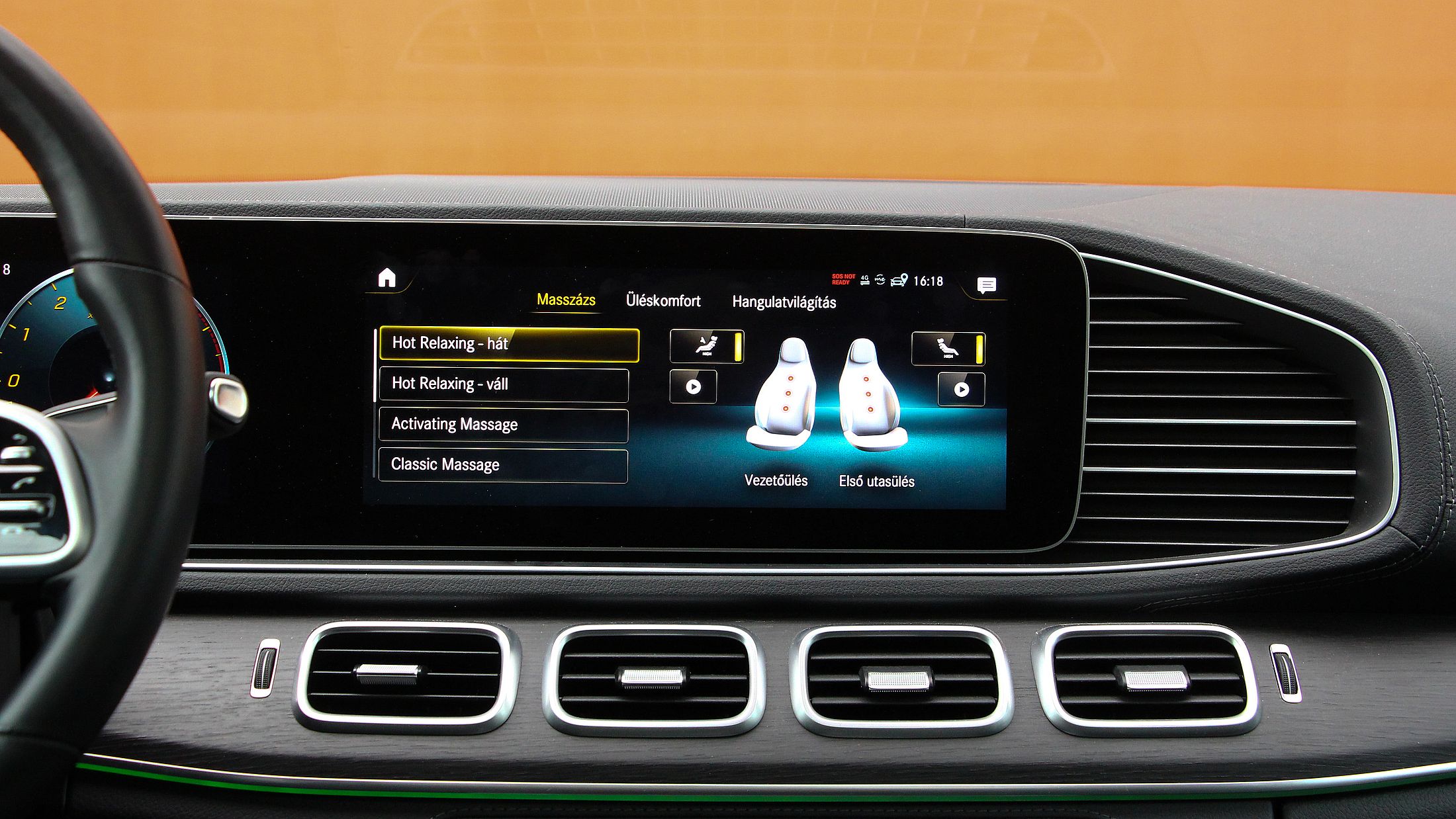 Persze a GLE a külsőségeken kívül olyan utasteret ad, ahol nem lehet unatkozni. A három nagy német luxusmárka közül a Mercedes szerintem egyértelműen az élen jár igényesség és főleg fantázia terén. Az összeválogatott anyagok, köztük a fa, a bőr, valamint az összeszerelés pontossága lenyűgöző. Az első üléseket inkább fotelnek nevezném, amelyek fűthetőek és hűthetőek, továbbá a masszázsfunkció sem maradt ki belőlük, és tényleg egészen jól képesek átgyúrni az ember hátát. Hátul is öröm utazni, az ülések nem kevésbé fotelesek, bár nem masszíroznak. Ugyanakkor a klímát a hátul utazók is személyre szabhatják. A csomagtér mérete persze megsínyli a hibridséget, bár nem vészesen. Alaphelyzetben 490 literes, szóval 140 litert veszít az akkupakk miatt, de ettől függetlenül ez egy sík padlójú, könnyen pakolható tér, ami 1915 literesre növelhető a hátsó ülések lehajtásával. Emellett a csomagtér pereme gombnyomásra a talajhoz közeledik, köszönhetően a légrugóknak.