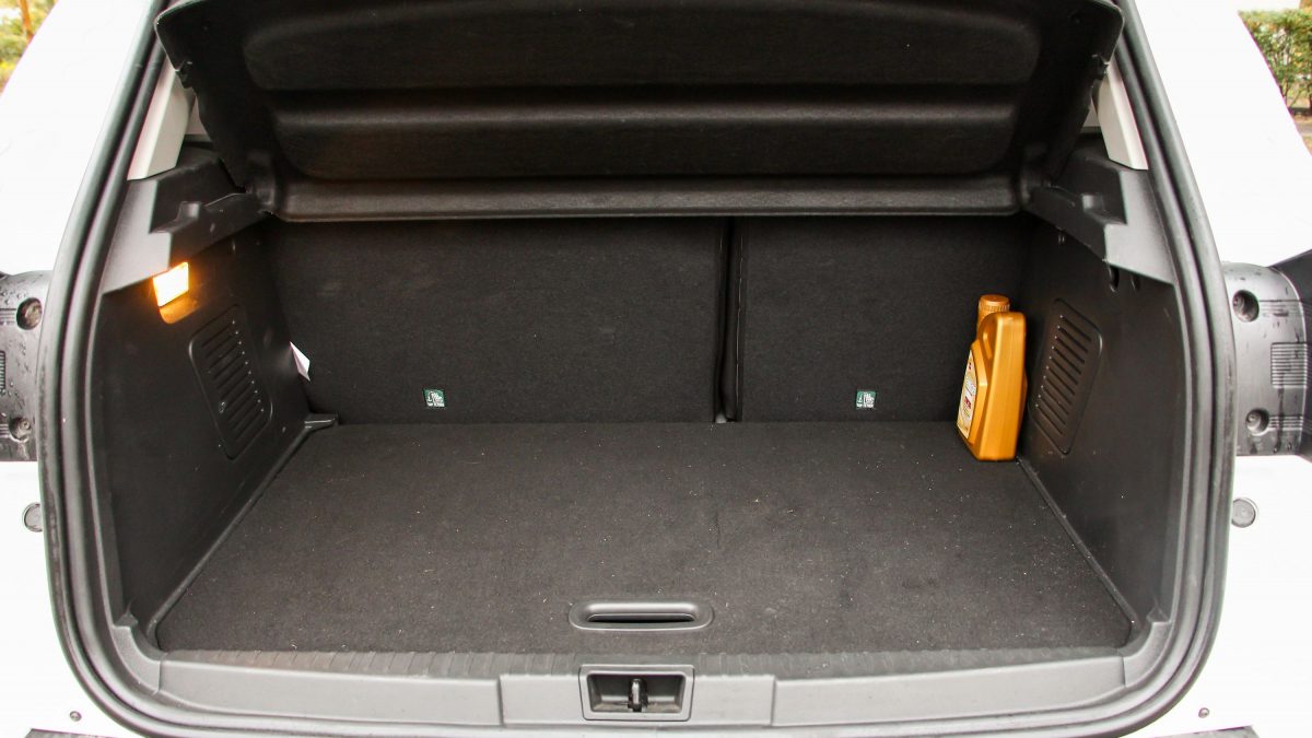 Egészen korrekt, az eggyel nagyobb kompakt kategóriát idéző a kisméretű crossovernek számító Captur 377 literes alapméretű csomagtere (a fotó Eneos termékmegjelenítést tartalmaz)