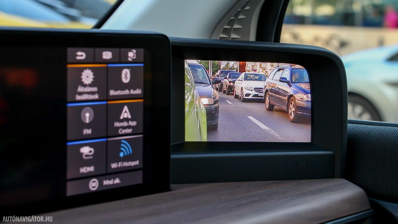 Jazz-zel szemben itt jól működő sávtartót kapunk, meg persze tökéletes távolságtartós tempomatot, a városi araszolás segítéségre még annak kapcsán is figyelmeztetést, ha elindult előttünk egy autó. Döbbenetes módon még parkolóautomatika is van, itt az volt az egyetlen rendszer, amit nemigen bírtam működésre bírni, leginkább azért, mert egy nem egész 4 méteres, a lehető legjobban körbekamerázott autóhoz nincs sok szükség rá. Kameranézetből teljes felülnézetig bezárólag minden választható, az Advance verzió középső tükre is digitális, a tolatókamera képét vetíti, hogy plafonig pakolt csomagtér esetén is lássunk magunk mögé.