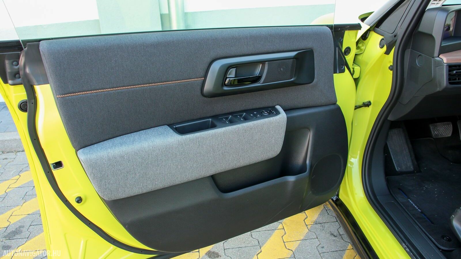 Elöl az ajtósíkokba, hátul a tetőoszlopba rejtettek a kilincsek. Az okoskulccsal vagy regisztrált NFC-képes okostelefonnal közelítve az elsők előugranak
