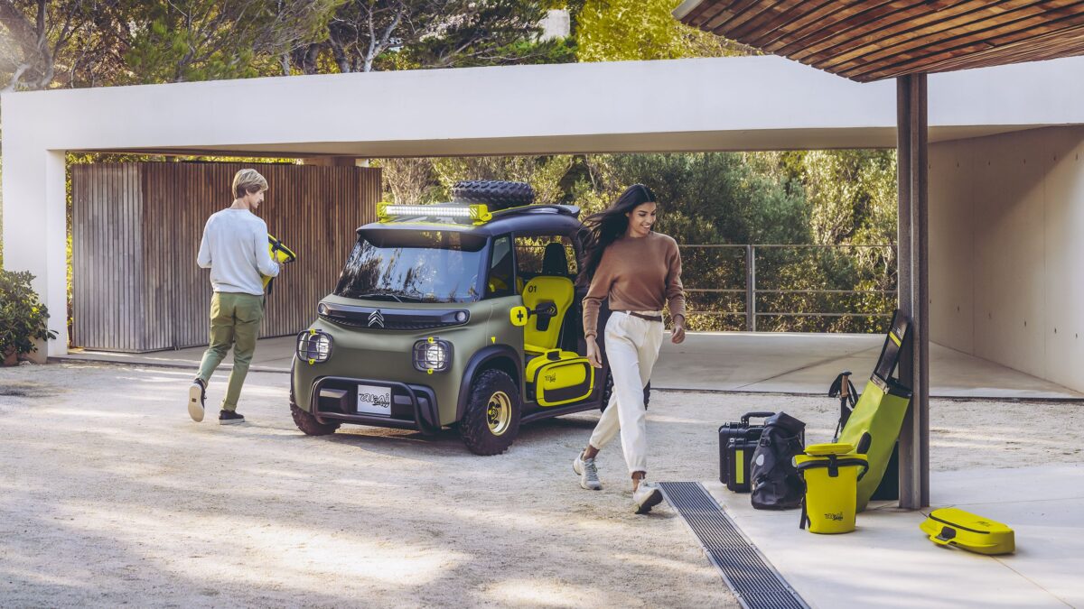 Ez a picurka Citroën tanulmányautó tényleg a szabadidő kellemes eltöltésére megalkotott jármű. Olyan mint egy valódi terepjáró karikatúrája, sugárzik belőle a vidámság. A fényezetlen kerékjárati ívek, a gallytörő, illetve a fényszórókat védő rács, továbbá a „traktorgumik” komoly terepjáróra utalnak, ám valójában inkább egy strandjáró a My AMI Buggy. Persze a tetőre szerelt pótkerék és a LED-es fényhíd a tetőn már-már arra csábítanak, hogy elguruljunk vele egy dzsungel mélyére, ám a villanyhajtás miatt jobb, ha urbánus környezetben marad, ahol található hozzá konnektor is.