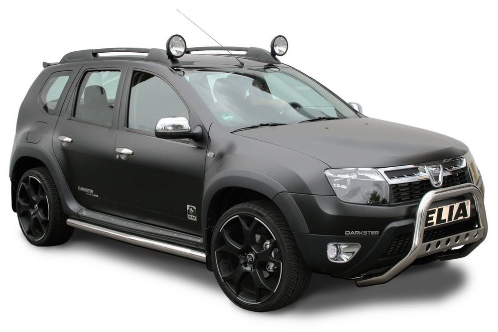 Az Andros Trophyban jégautózó Lodgy versenygép nyilván nagyon vagány, azt leszámítva viszont annyira menő, trendi és látványos Daciát még biztosan nem láttunk, mint amennyire az a mellékelt képeken mutatott, Elia-féle tuning-Duster. A Renault-Nissan Alliance termékeit előszeretettel berhelő német cég rögtön két új csomagot is kínál a főleg remek ár/érték aránya okán népszerű, de megjelenésében nem túl erős román-francia szabadidő-autóhoz, egyik durvább, mint a másik. [BANNER type="1"] A fent épp narancssárgában virító Color Concept matt fóliával, fényes-fekete felnivel, sárvédő-szélesítéssel, hűtőmaszkkal, visszapillantó tükrökkel, gallytörővel, tetővel és csíkokkal parádézik, sőt utasterében is visszaköszön ez a narancs-fekete kombó. Ültetett sportfutómű, motor- és kipufogótuning, minden van hozzá. A Darkster - nevéhez méltón - matt feketében nyomja, amihez az illetékesek még nem kevés krómot, dupla-dupla, azaz kétoldali, kettős kipufogót, extra reflektorokat és LED-es lámpákat gondoltak tökéletes kiegészítőnek. Érthetetlen, de ablaksötétítésnek nyoma sincs, holott úgy lenne teljes a kép. A spéci könnyűfém kerekek bezzeg brutál 20 colosak 245/35-ös abroncsokkal, az utastér bőrkárpitos, illetve kérésre az 1.5 dCi dízelmotor is erősödhet 16 LE-vel és 28 Nm-rel.
