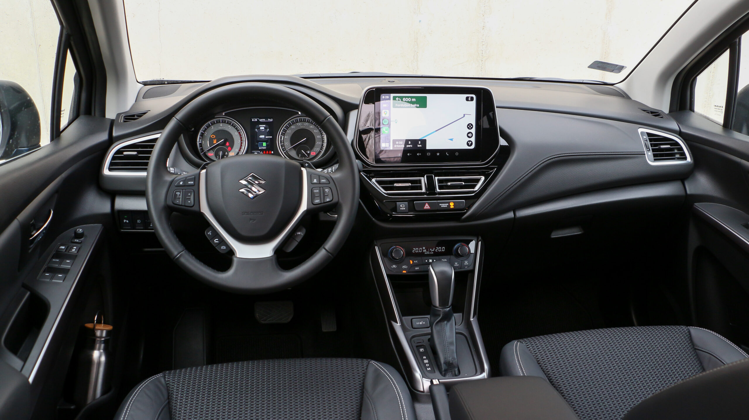 A Dusteréhez hasonlóan palacktartós az S-Cross első ajtaja is, összkerékhajtását Lock állásba téve automatikusan kikapcsol a stop-start, a Suzuki AllGrip rendszere hajszálnyit gyorsabbnak tűnt a Dacia összkerékhajtásánál, a GLX központi kijelzője vezeték nélküli Apple CarPlay-es