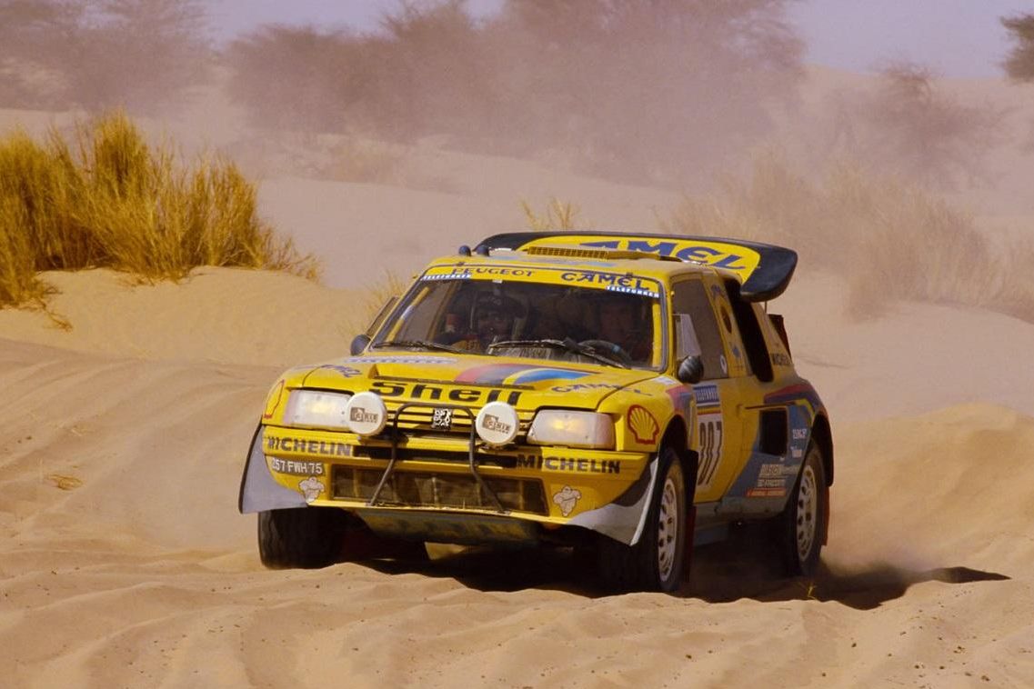 Pazar 205 T16 az 1987-es Párizs-Dakaron. A Peugeot 1990-ig dakarozott, adja magát a 2015-ös visszatérés a kerek évforduló miatt. Afrika helyett Dél-Amerikában