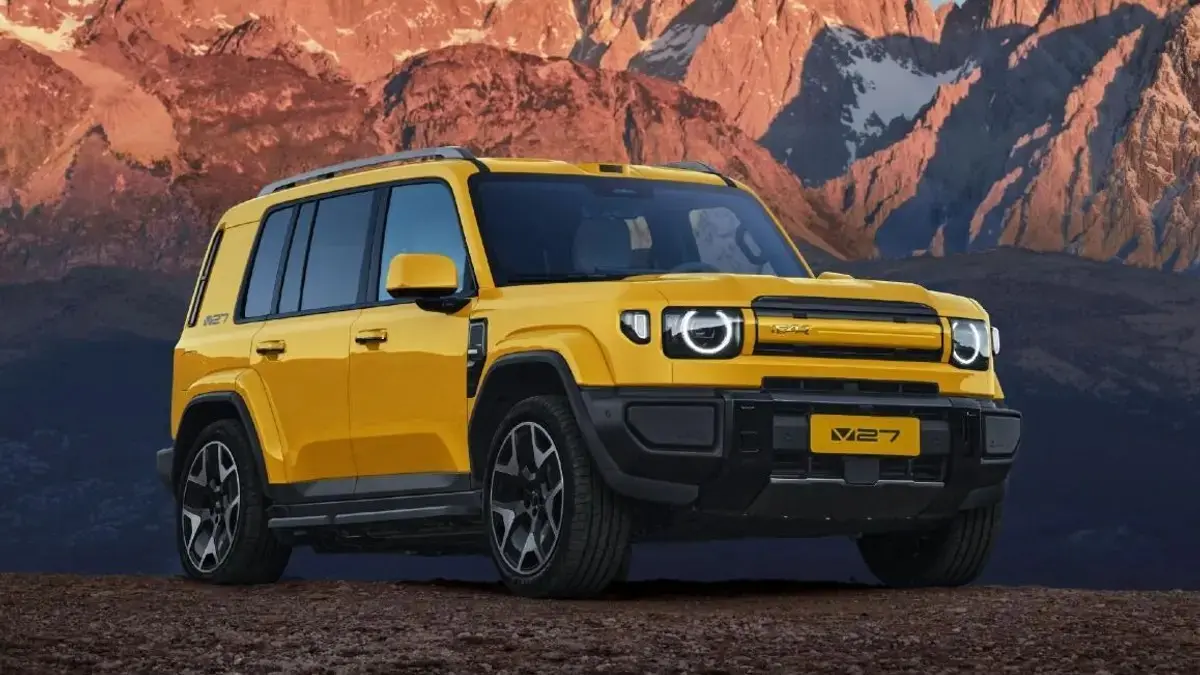 A másik nagy érdekessége a külseje. Kíváncsiak leszünk, mit szól majd a Land Rover, mivel az autó finoman szólva is kísértetiesen hasonlít az éppen aktuális Defenderre. Klasszikus szögletes, off-road SUV dizájn, kerek fényszórókkal, hagyományos kilincsekkel, függőlegesen elrendezett hátsó lámpákkal, kívülre helyezett pótkerékkel, oldalra nyíló csomagtér ajtóval és a jól megszokott fényezetlen műanyag betéteket is megtaláljuk körben az autón. A leendő vásárlók ötféle fényezés között válogathatnak: kék, sárga, ezüst, bézs és az elmaradhatatlan fekete.