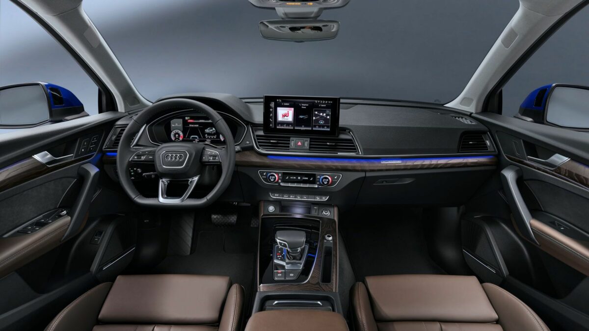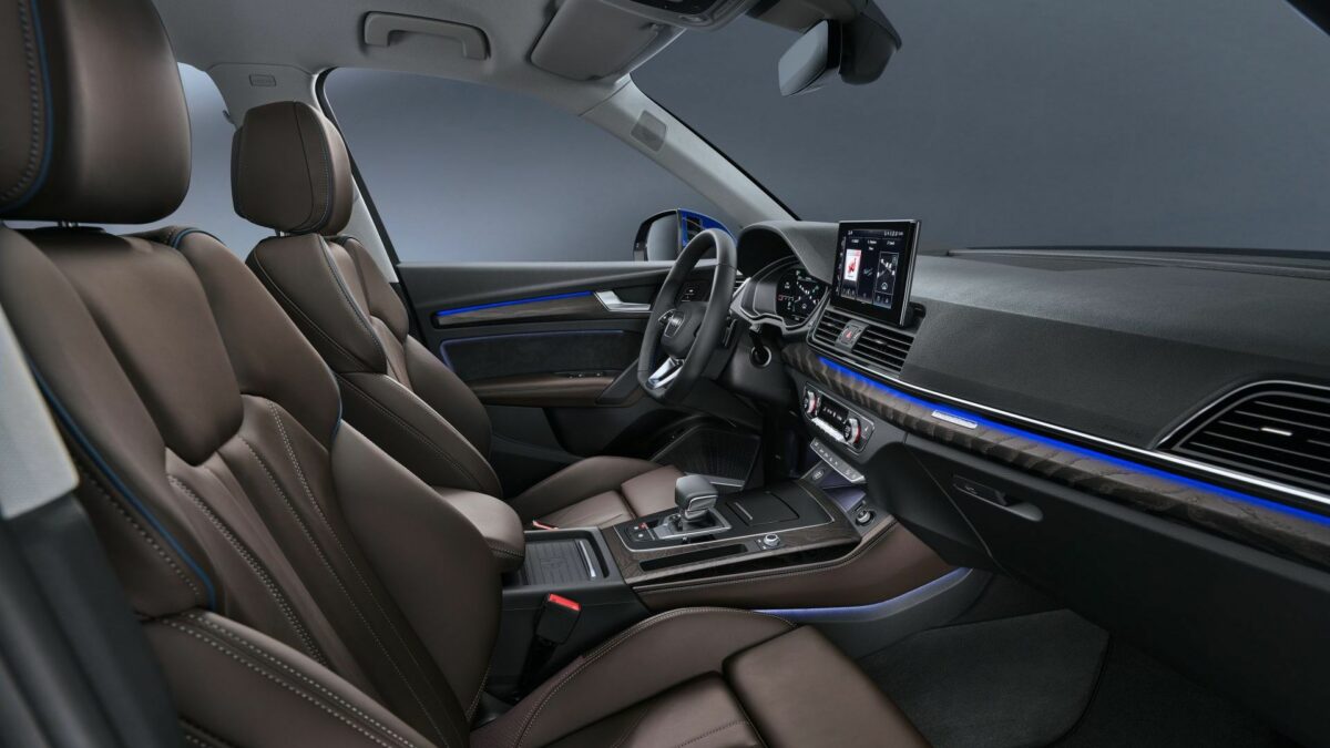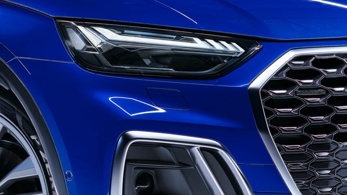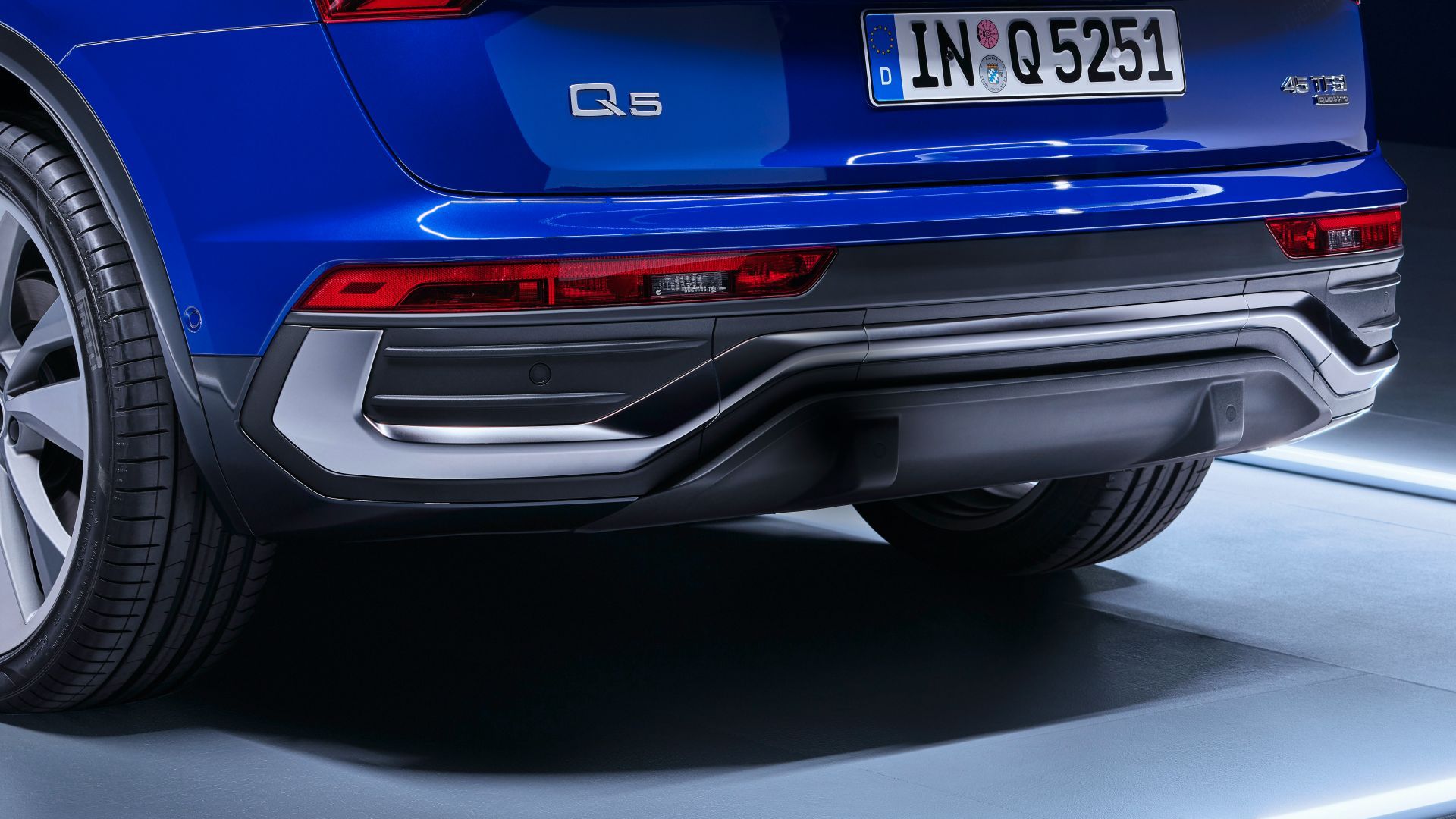 A frissített Q5 új vonásaival érkezett, melyek között teljesen megváltozott formájú első lámpák is szerepelnek. Ezek alapesetben ledesek, az S Line és SQ5 modelleken szériában mátrix LED technológiájúak, ahogy a hátsók is OLED panelekkel világítanak a magasabb felszereltségi szint esetén. Vannak azonban eltérő külső alkatrész is, méghozzá a lökhárítók, melyek az S Line és SQ5 modelleken más vonásokat kaptak, a fényezetlen fekete műanyag betéteken ezüst berakásokkal tették érdekesebbé és a single frame hűtőmaszk rácsozata is más, mint a frissített Q5-ön.