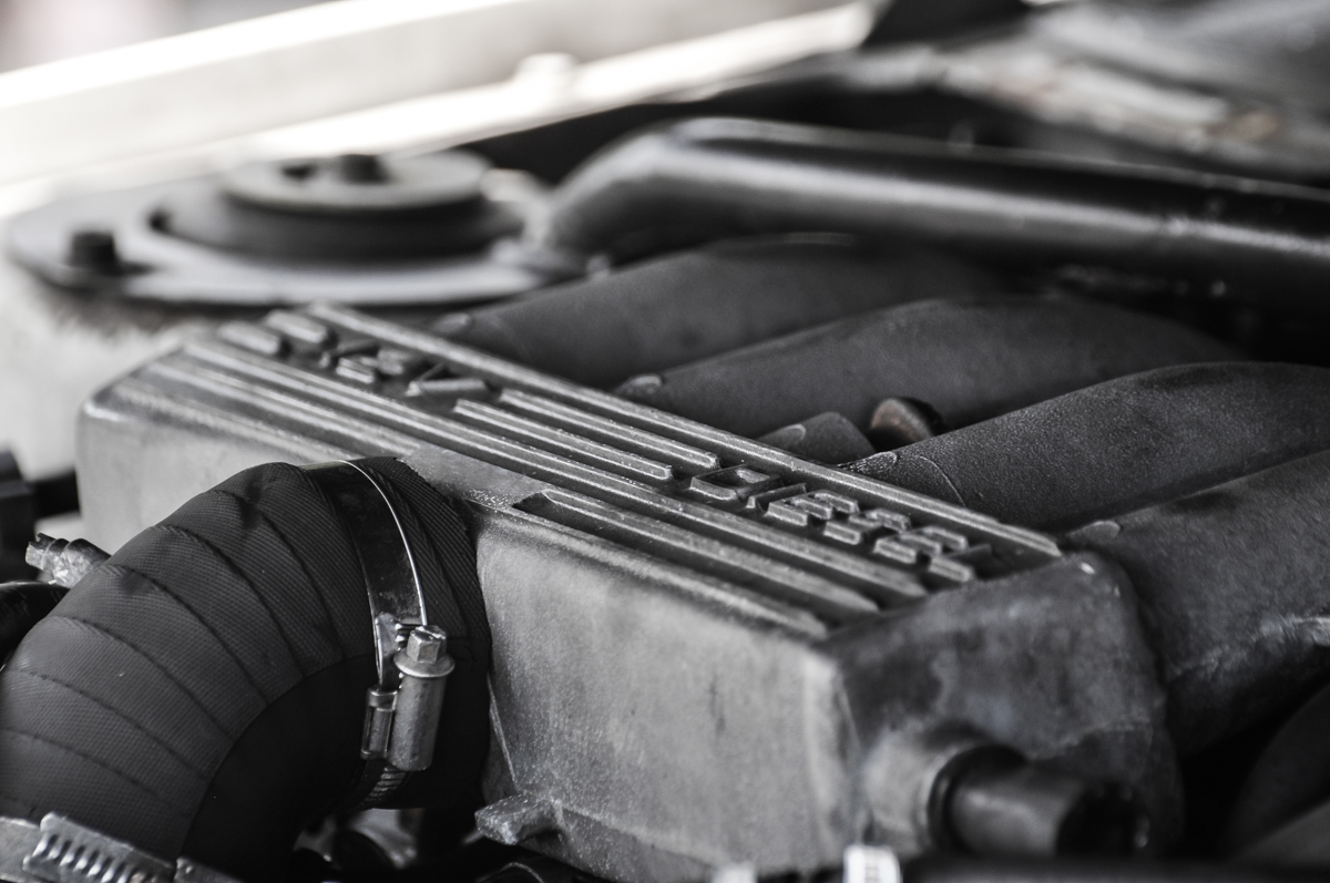 A futómű elöl-hátul, a fék csak hátul GTI, az első gyári 247 mm-es féktárcsákat már 283 mm-es hűtöttek váltották. Tudatukon kívül persze, de különböző német autógyárak is keményen bedolgoztak, például fékfőhengerrel, hűtővel és kiegyenlítőtartállyal. Ahogy a tulaj leírta a helyzetet: „az került bele, ami elfért, ugye.” A kormányszervó szivattyúját például már kiszorította a motor, ezért egy kisebb, hazánkban is nagyon kedvelt japán gyár elektromosa került bele. Bár a szűkös kerékjárati ívekből nehéz elhinni, állítólag rugózik a kocsi, a nagyobb és jóval nehezebb motort viszont csak vastagszárú Bilstein gátlók és komolyabb rugók bírják el. Mennyire ül? Egy hagyományos testvér mellé állva, pont befér a tükre a másik alá. Többek között ezért változott a klasszikus hátsó kerékív is, ami számtalanszor lett szabdalva különböző igények szerint, mindez mégsem látszik rajta. Az átalakítások jól behatárolják a kerékméretet, a nagyobb fékek és a szűkös, de nem abroncskarcolós kerékjárati ívek miatt szinte csak 15-ös kerekek jöhetnek szóba.