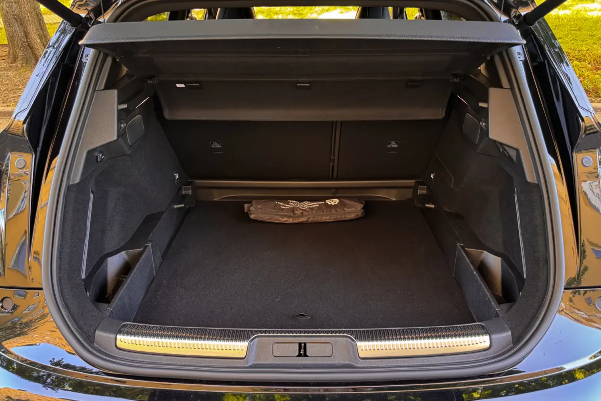 Bent az egyetlen kompromisszum az indításkor felnyíló óra száműzése. Habár ez amúgy is sokaknál már a "túl sok" kategóriába tartozott, tehát még kedvező is lehet, például flottavásárlóknak, ha több autót vásárolnak egyszerre, különböző emberek kiszolgálására. Amúgy az anyagválasztásban nem fukarkodtak, az Alcantara szerű felületek tapintása kellemes, a különleges formák ugyanúgy felbukkannak itt, mint a magasabb felszereltségeknél. Az első ülések kényelmesek, a hátsókra sem érkezett panasz, de a közel 4,6 méter hosszú SUV nagyobbnak látszik, mint amekkora valójában az utastér. Ezt persze ne értsétek félre, hátul is kényelmesen elfér akár két átlagos termetű felnőtt, tehát gyerekeknek végképp kényelmes, illetve alapból 555 literes a csomagtér ami tovább bővíthető a 60:40 arányban osztott hátsó üléseknek hála. De akkor is termetesebbnek tűnik kívülről.