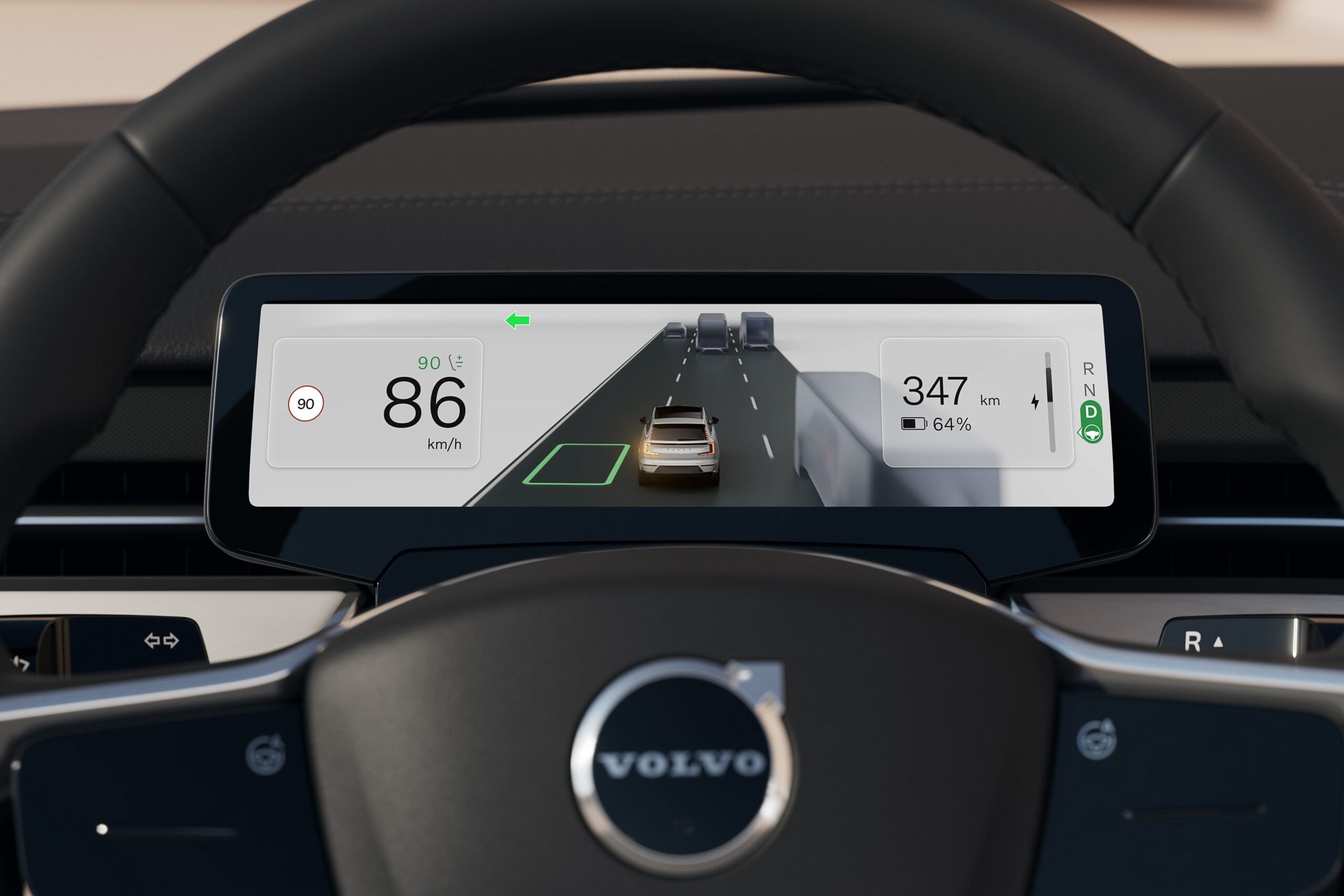 Az EX90 futóműve hasonló felépítésű, mint az XC90-esé, azonban néhány módosítással. FSD lengéscsillapítók elöl, módosított perselyek, eltérő méretű kerekek, hátul nagyobb nyomtávval, na meg a kétkamrás légrugózás gondoskodik a kényelmes suhanásról. Talán mondani sem kell, hogy biztonság terén ebben az autóban sem köt kompromisszumot a Volvo. A rengeteg vezetősegéd között olyan újdonságok is megtalálhatók, mint a biztos oldaltávolságot biztosító rendszer teherautó kikerülésekor.