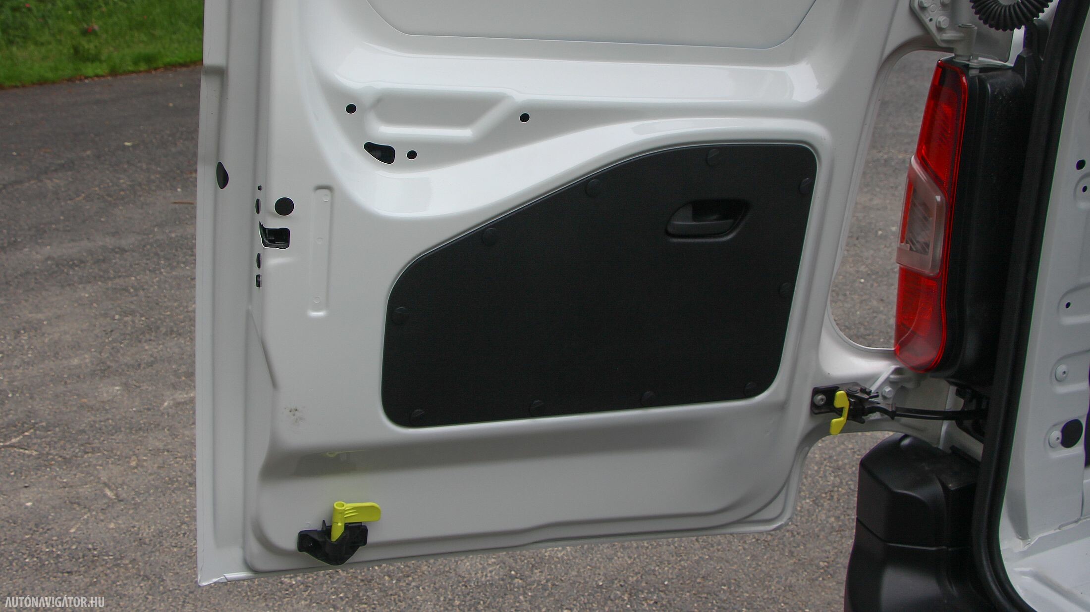jobbegy mögötti ülést lehajtva a hátfal nyitható, és még több tér áll rendelkezésre. Az alap tesztautóban ez sem volt benne, de hasznos extra, így a 2,2 méteres raktérhossz 3,4 méterre nő. Hátul hat kampó segít a rakomány rögzítésében, viszont érdemes rendelni a padlóra is valami védőréteget, mert a csupaszon hagyott, fényezett padlón gyorsan elszaporodhatnak a sérülések. Pakolni a jobb oldali tolóajtóval feltáruló nyíláson és hátul a két fokozatban, szélesre tárható ajtókon keresztül is lehet, a küszöb alacsonyan van, ami szintén megkönnyíti a rakodást.