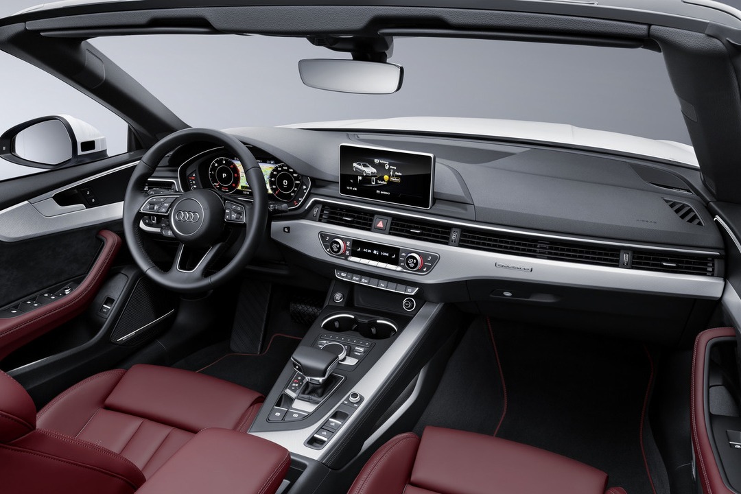 Negyven kilogrammal karcsúbb elődjénél a – márka szerint – kategóriájának legmerevebb karosszériáját adó A5/S5 Cabriolet. Alapvetően első, felárért viszont Quattro összkerékhajtássú az új kabrió, motorjai pedig a Coupéval és a Sportbackkel közösek. 252 lovas TFSI az alap, följebb kétliteres és háromezres TDI-k érhetők el 190 és 218 lóerős teljesítménnyel, de később lesz egy 190 lovas kétliteres benzines és 286 lóerős háromezres dízel is a kínálatban.