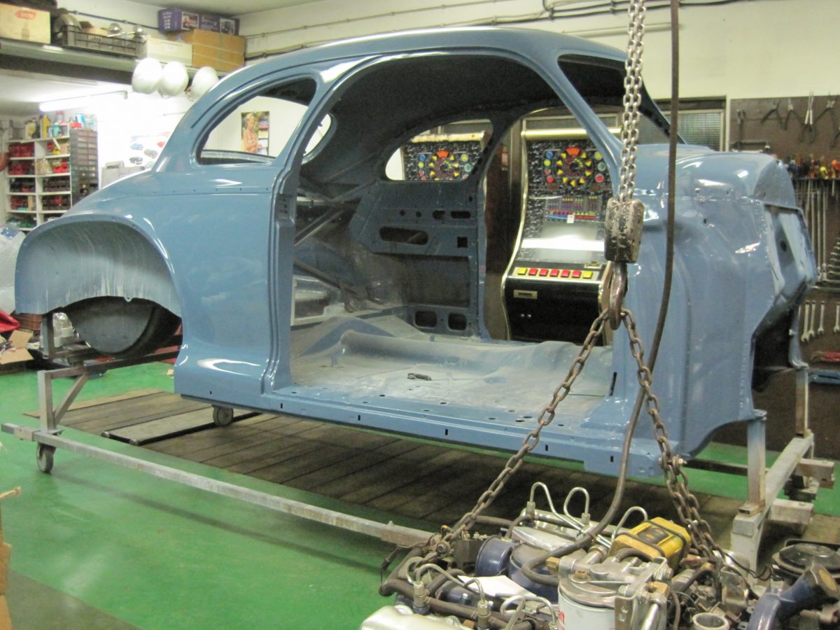 Kifizettük, azonban a fényezés hamarosan több helyen megrepedezett. A garázsban, álló helyzetben, még csak hozzá sem nyúltunk, el sem kezdtük összerakni. A fényező nem ismerte el a hibát. Azt mondta, hogy ez azért van, mert nem volt az autó homokfúvatva fényezés előtt… Komolyabb ráhatással, a restaurálás addigi lépcsőiről készült fényképek közös átnézése után aztán elvállalta garanciába, s jó ideig ismét nem láttuk.