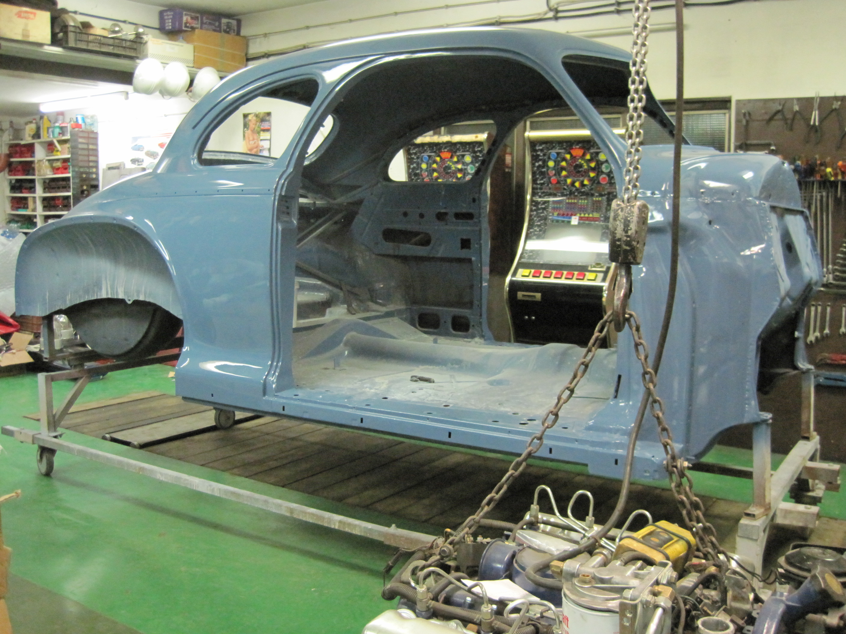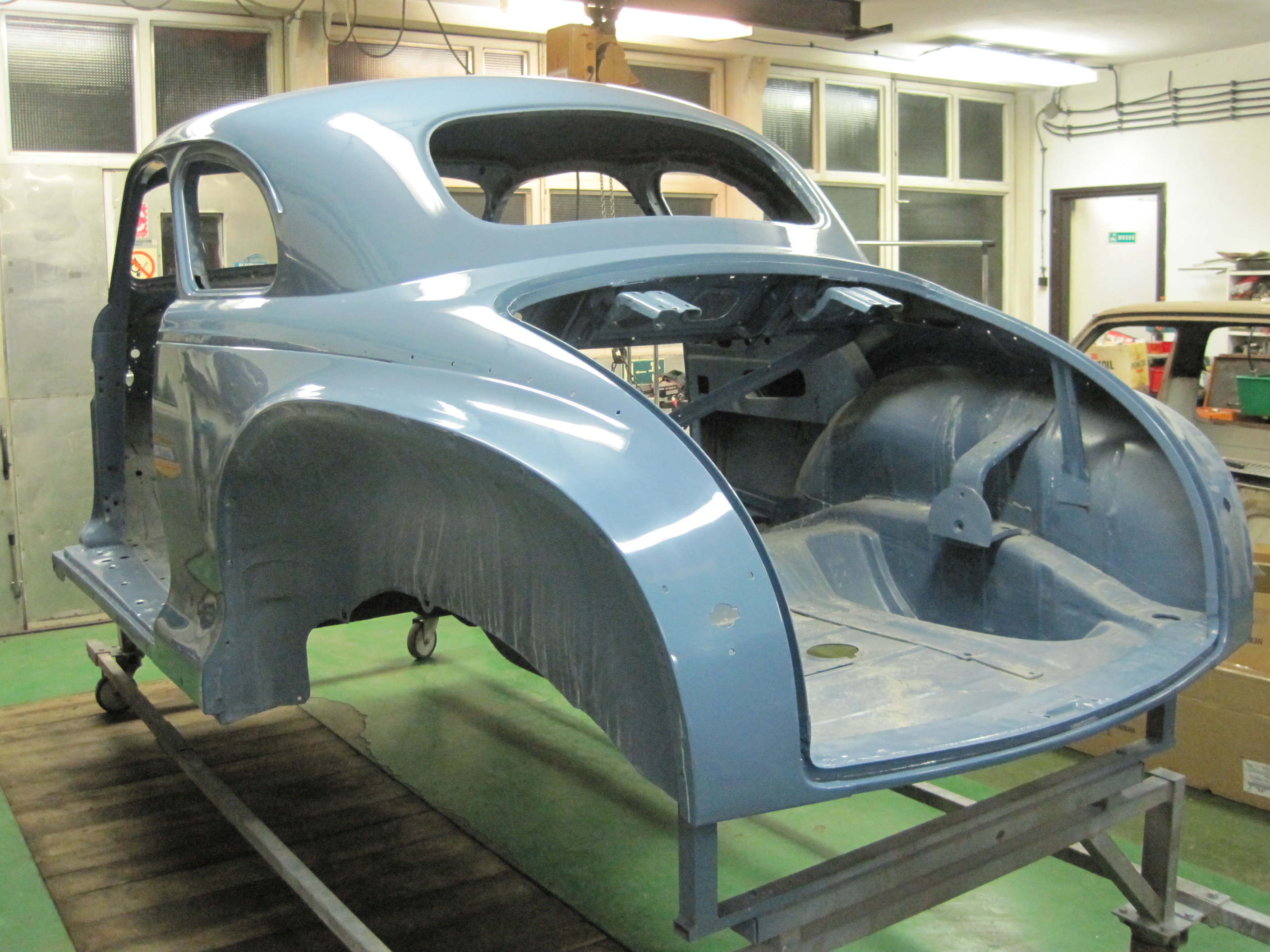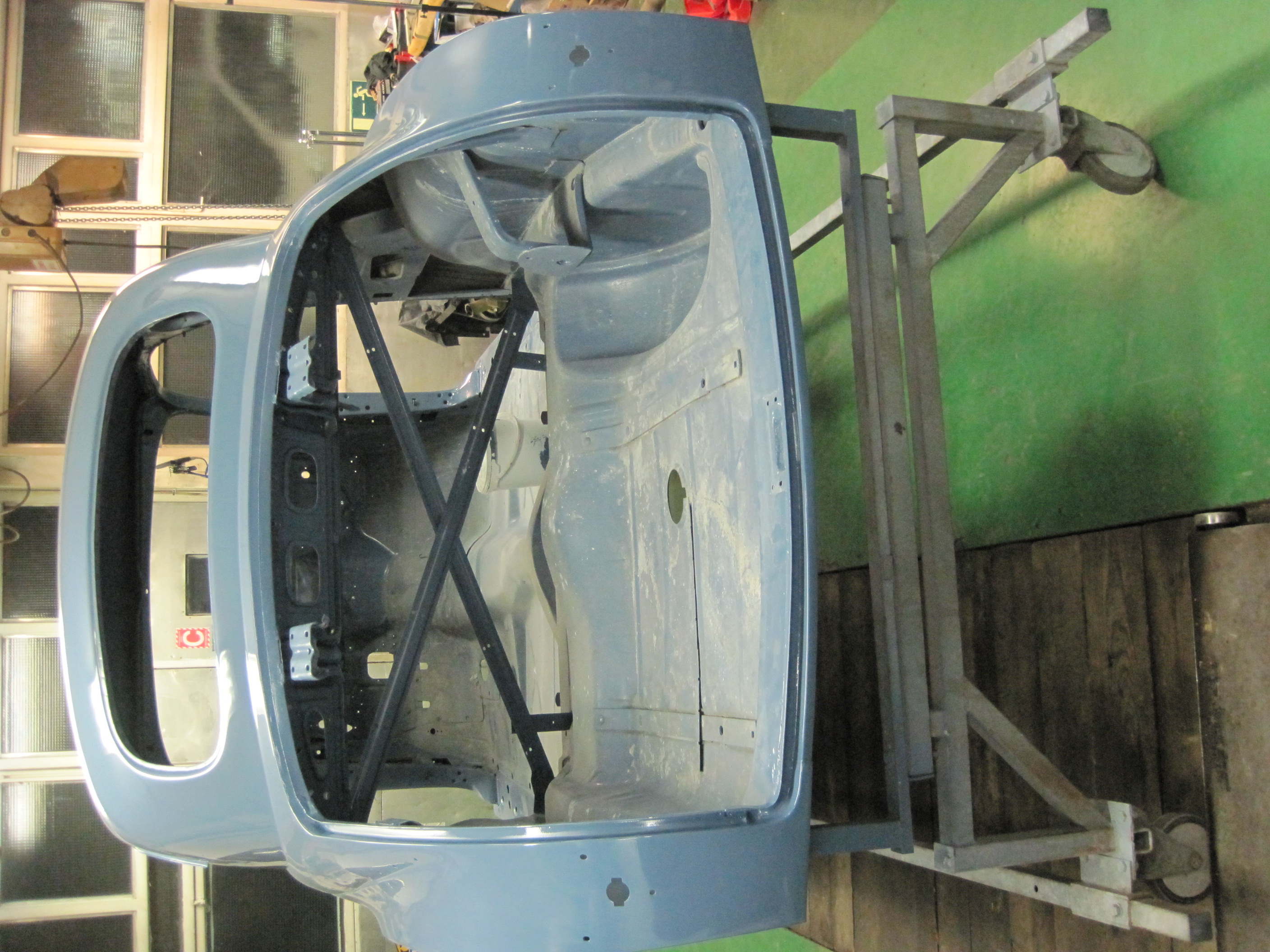 Kifizettük, azonban a fényezés hamarosan több helyen megrepedezett. A garázsban, álló helyzetben, még csak hozzá sem nyúltunk, el sem kezdtük összerakni. A fényező nem ismerte el a hibát. Azt mondta, hogy ez azért van, mert nem volt az autó homokfúvatva fényezés előtt… Komolyabb ráhatással, a restaurálás addigi lépcsőiről készült fényképek közös átnézése után aztán elvállalta garanciába, s jó ideig ismét nem láttuk.