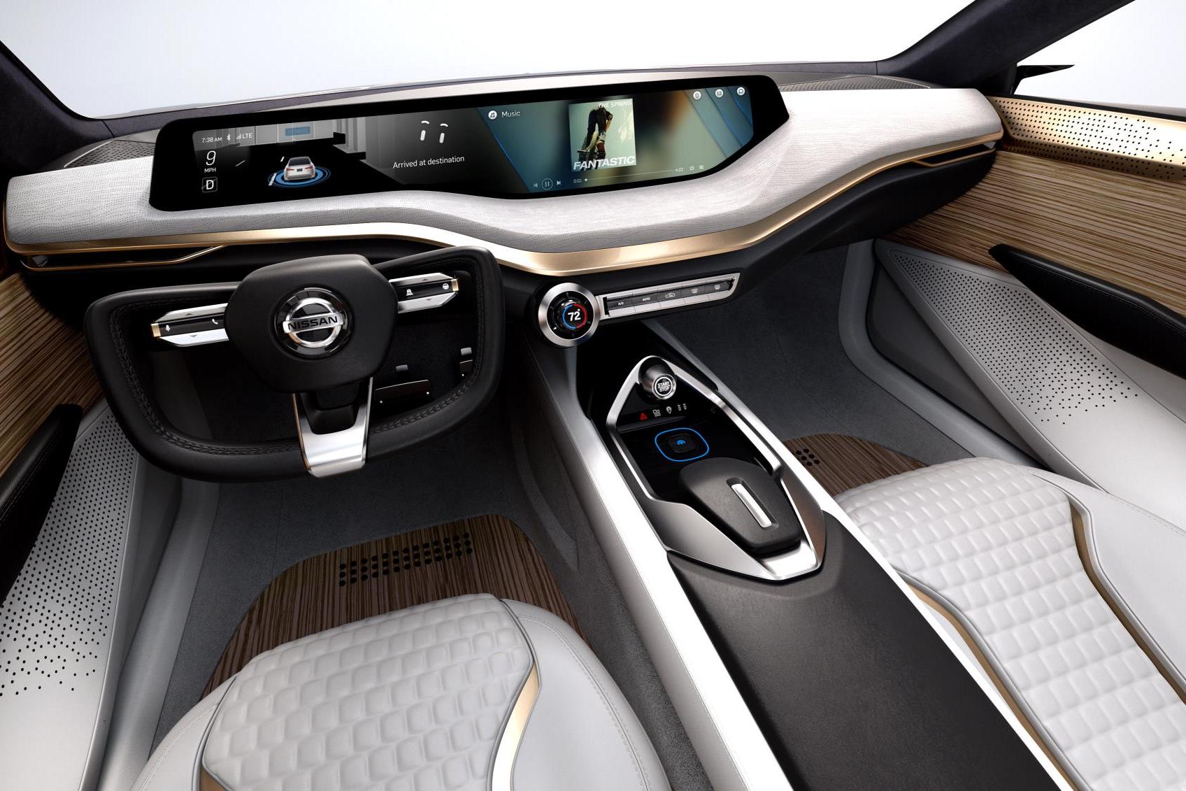 Hasonlóan letaglózó a formavilág, mint a Lexus LS legújabb generációjánál, mégis annál jobb az összhang. A Vmotion 2.0 teteje szinte lebeg, a far élesen nyúlik hátrafelé, a hátsó sárvédő-domborulatok pedig bekebelezik a hátsó lámpákat. A lényeg elöl keresendő, a nevét is adó V alakú maszk akkorára nőtt, hogy beteríti szinte az autó egész orrát, a következő Nissanokon is ekkorára nőhet. Az is előfordulhat, hogy a Vmotion 2.0 közel teljes egészében megelevenedik, méreteiben ugyanis a jelenlegi Altimát szinte centire pontosan hozza.