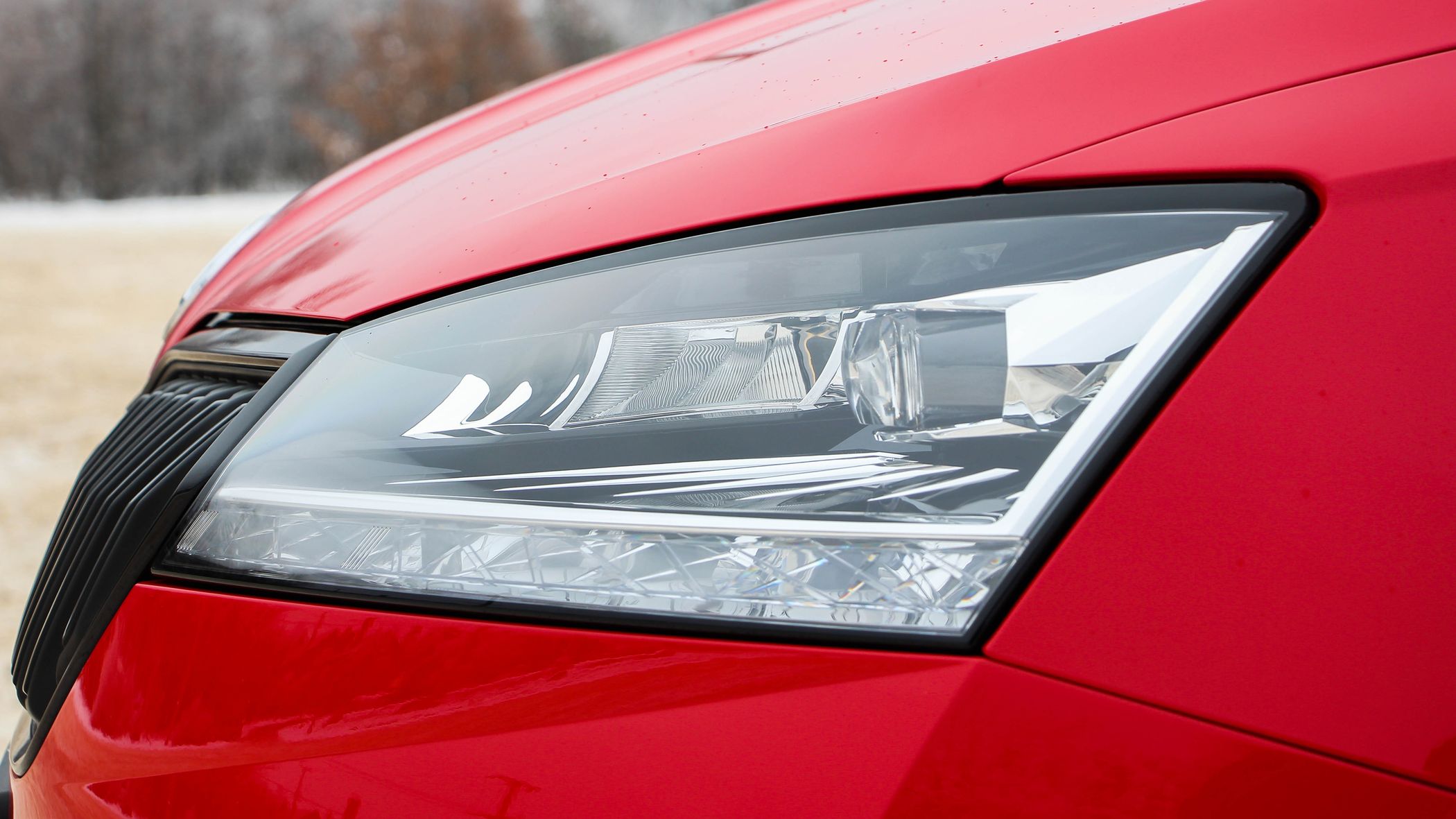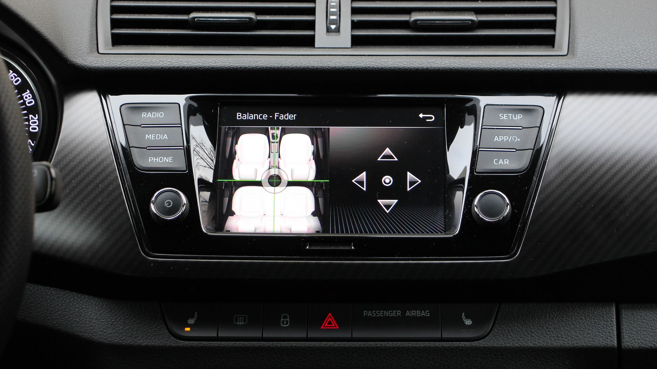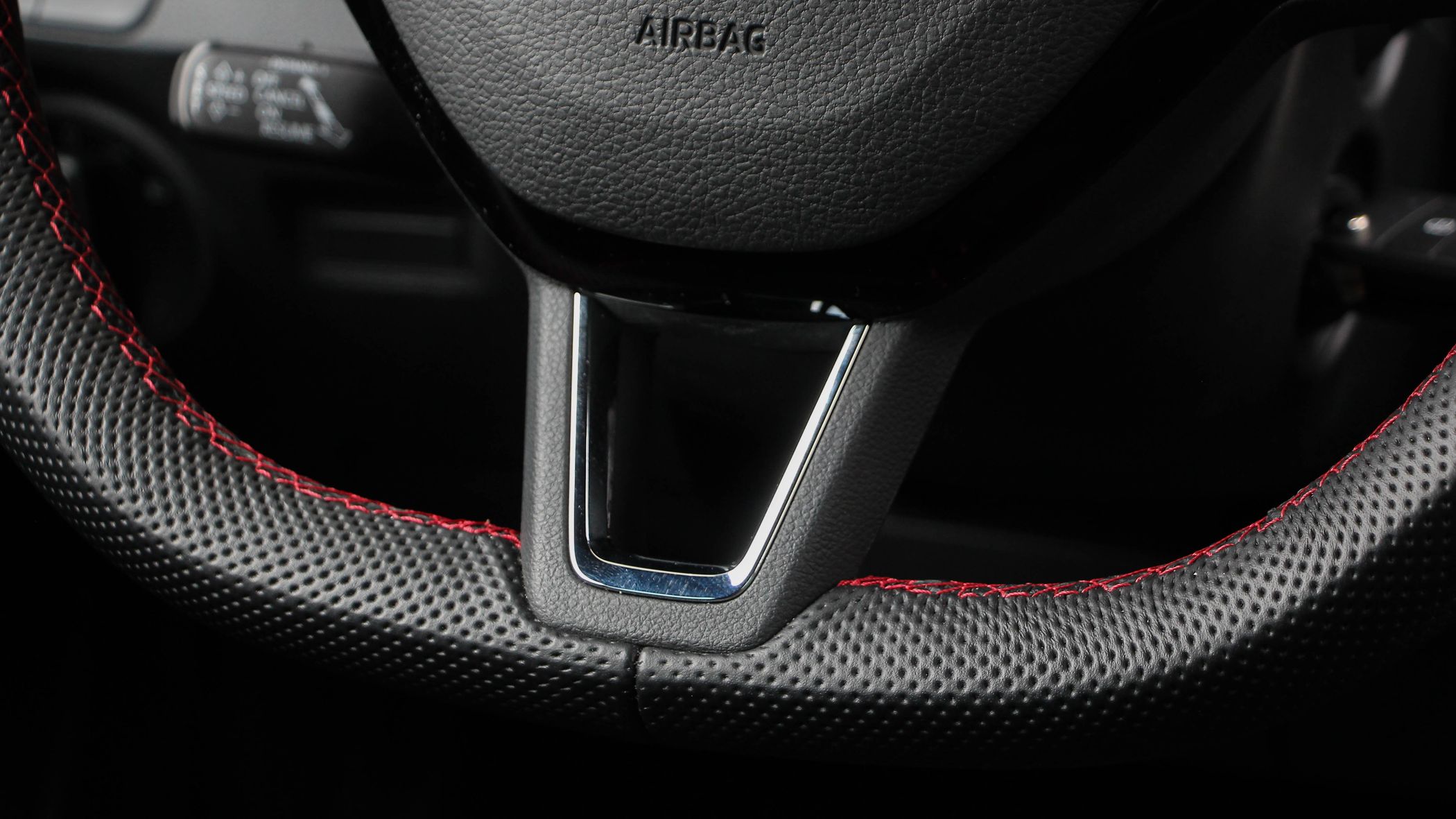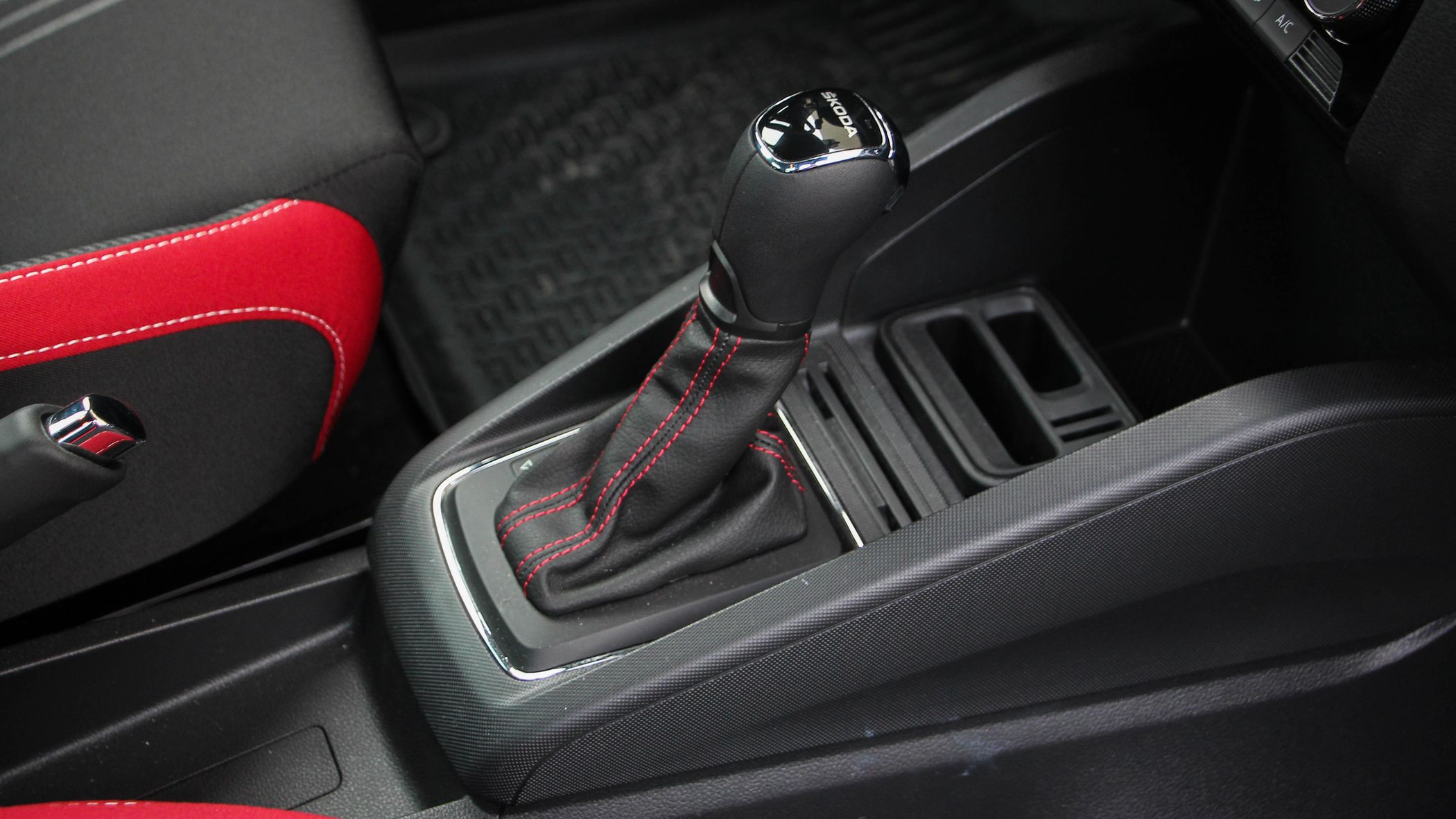 Az utastérbe szintén igényesen csempészték be a sportosságot. A sportülések kétszínű kárpitozása a legfeltűnőbb, de a kormánykereket borító bőrt is vörös cérnával varrták, ahogy a DSG választókarjának szoknyáját is. Nem valami eget rengető extrák ezek, mégis képesek tényleg sportosabbá tenni a hangulatot, pedig összességében a műszerfal egy nagy és sötét tömb. Ugyanakkor szinte kikezdhetetlen az ergonómiája. Könnyű kezelni a digitális klímát, amely külön gombokat kapott, a középkonzolon pedig az infotainment rendszer érintőképernyője Mirror Link funkcióval is rendelkezik, szóval a telefonnal pillanatok alatt összepasszítható. A vezető előtt jól leolvasható a két nagy kerek műszer, amelyek között a digitális kijelzőn jeleníthetők meg további információk. Minden egyszerű és célszerű, vagy ahogy a Skoda mondaná, simply clever.