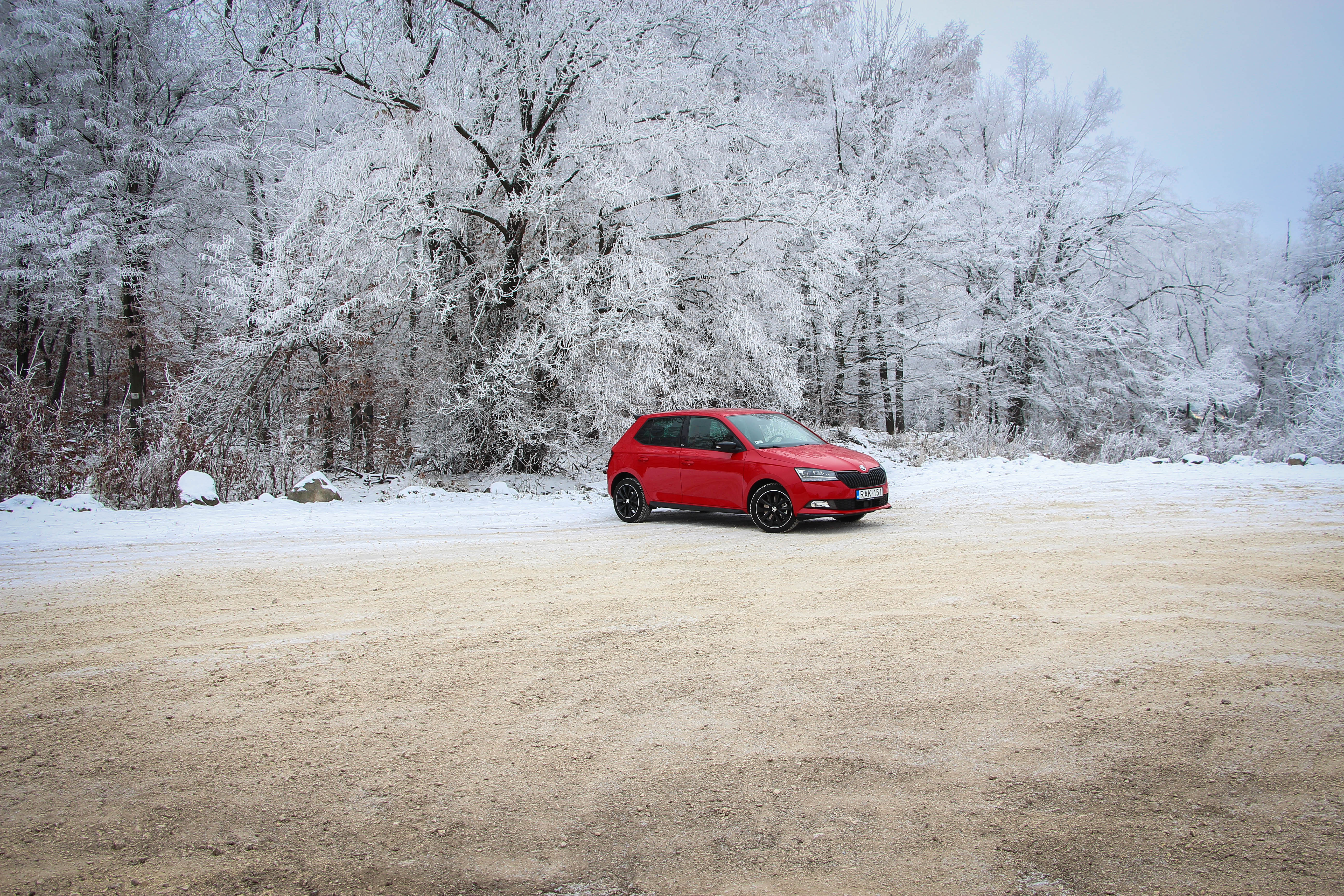 Kicsit Mikulás utánérzés így a fehér tájban vöröslő Fabia Monte Carlo