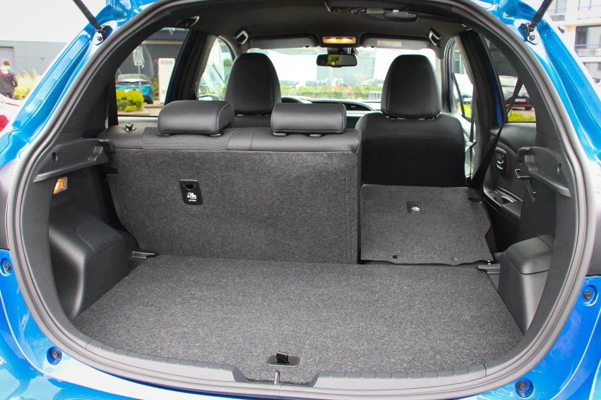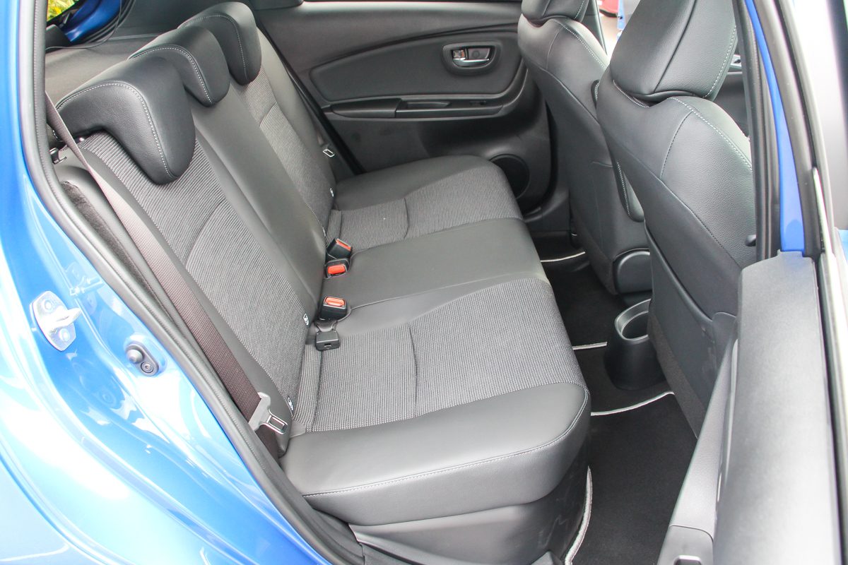 Fejlesztett utastér. Meglepően jó, a kisautók között kiemelkedő minőségű plasztikokat kapott az utastér. A műszerfal jó része, köztük a négyféle színben választható betétek és az első ajtók teteje is puha, jó fogású műanyagot visel. A lefelé ívelt övvonalnak köszönhetően elöl is pazar a kilátás, hátul pedig eleve magasabban ülünk. A hátsó lábtér a kategóriának megfelelő, mintegy 190 centimmel passzentosan fértem el magam mögött, a fejtér is épp rendben van. Csomagtere továbbra is 286 literes és még a hibrid hajtással sem éri el az 1,2 tonnát, ami meglátszik a menetdinamikán. A Toyota szerint 5,5 decibellel javítottak a zajkomforton. Persze összehasonlítani egy ilyen rövid menetpróba alapján lehetetlen az előddel, de annyi elmondható, hogy mindhárom tesztelt motorral halk volt a Yaris.