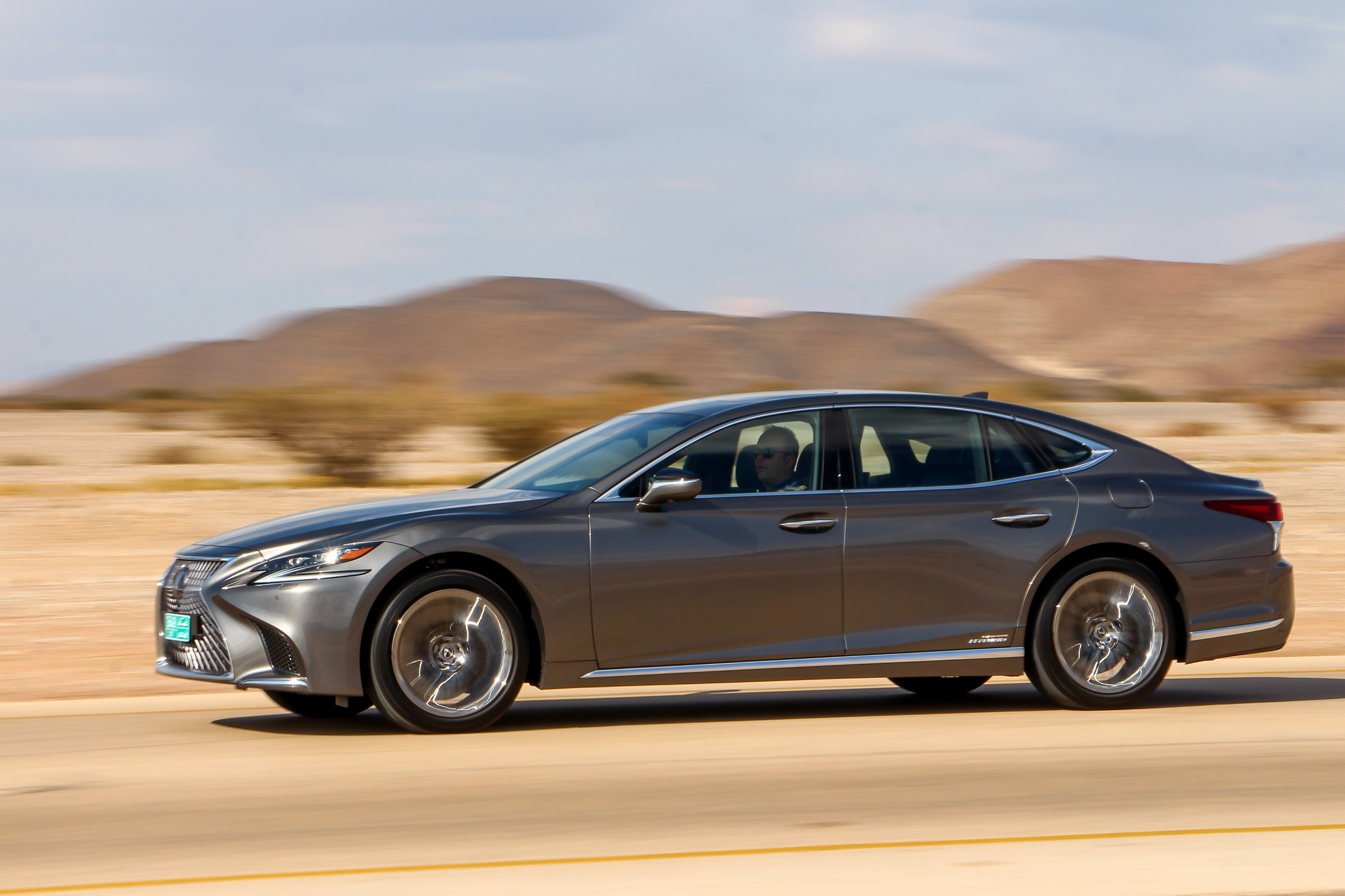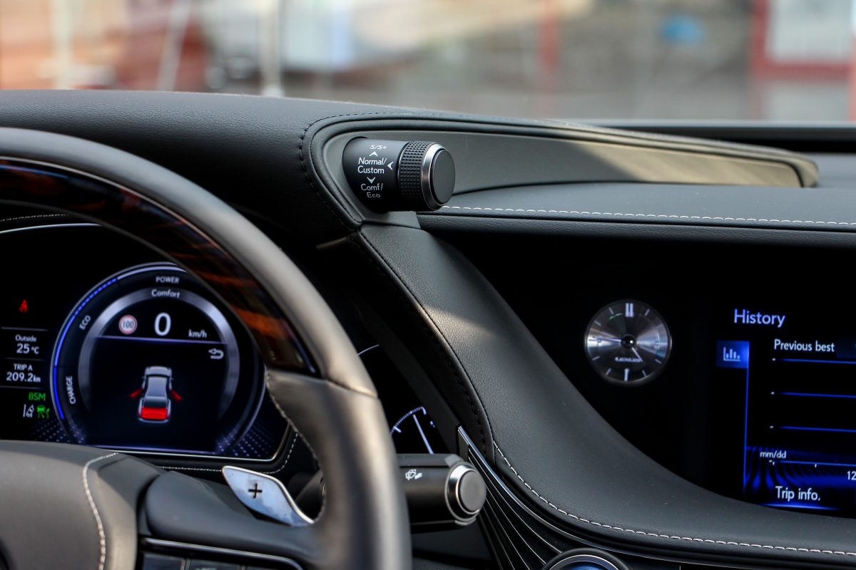 Na persze az LS mellett messze nem a vetélytársaiénál jobb alap és még kedvezőbb extrázott ár az érv. Hanem a technikai elsőség. Míg az előző LS a világ első V8-as hibridjét jelentette, a mai LS már csupán V6-os motorral, de jobb menetdinamikát és természetesen még kedvezőbb fogyasztást hoz. Az eladások zömét az LS 500h-tól várják, ami hátsó vagy öszkerékhajtású lehet, de a hazai piacra csakis összkerekesként jön, ilyennel is vezethettük a menetpróbán. Utóbbi 5,5 (a csak hátul hajtó 5,4) másodperc alatt ér 100 km/órára. A benzinmotor 3,5 literes, közvetlen befecskendezésű, Dual VVT-iw, azaz szívó- és kipufogóoldalon is változó szelepvezérlésű, a szívóoldalon széles tartományban variáló és persze Atkinson ciklusú. Csak utóbbi 299 lóerőt és 350 Nm nyomatékot ad, de van két villanymotor is, amelyekkel a rendszerteljesítmény 359 lóerő. A hibridrendszer akkumulátora immár lítium-ion, ami tömeg- és méretcsökkentést is eredményezett. Konnektorról tölthető, zöld rendszámra jogosult verzió (egyelőre) nincs, ez a hibrid csak néhány kilométert tud megtenni elektromosan, de akár 140 km/órás tempóra is képes benzinégetés nélkül, persze csak időszakosan. Menet közben természetesen csak a folyamatábrákból tudhatjuk, hogy éppen mivel hajtunk. Menetmódból egy szokatlan, de roppant praktikus, a műszerblokk oldalára szerelt kapcsolóval választhatóan Eco, Comfort, Sport és Sport+ áll rendelkezésre. Utóbbiban elég jó motorhangot és menetdinamikát kapunk. Előbbi a leírás szerint hanggenerátornak (is) köszönhető, de ha nem mondják, nem tűnik fel.
