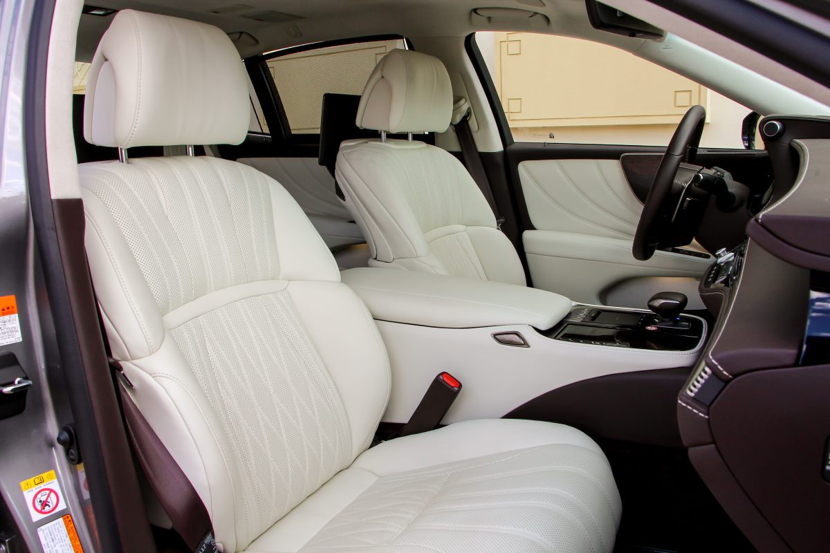 Fontosabb, hogy ebben a kategóriában is rekorder méretűre, 1086 mm-esre növelhető a jobb hátsó utas lábtere (ez a korábbinál is 8,6 centivel hosszabb), de még inkább a vezethetőség. Az új LS hiába nagyobb az előzőnél, könnyebb is - köszönhetően a nagy szilárdságú acélok bőséges alkalmazásának, valamint annak, hogy az összes karosszériaelem alumínium. A platform ugyanúgy a GL-A, ahogyan a szintén idén érkezett LC kupénál is, a tömegközéppont a kategória legalacsonyabbja, 54 cm. Az autóba ülve nem fogad a túlzott "hű, de nagy" érzés, nincs fölösleges fényűzés, de minden nagyon finom, minden szépen kivitelezett. A beltér színvilága fekete, fehér, elefántcsont árnyalatú, kétféle barna és vörös is lehet. Ma már semmiképp sem vádolható az amúgy továbbra is csomagokkal extrázható LS szűk személyre szabhatósággal, a csomagpolitikának pedig továbbra is megvan az az előnye, hogy a konkurensekénél jóval kedvezőbb árakat tud adni.