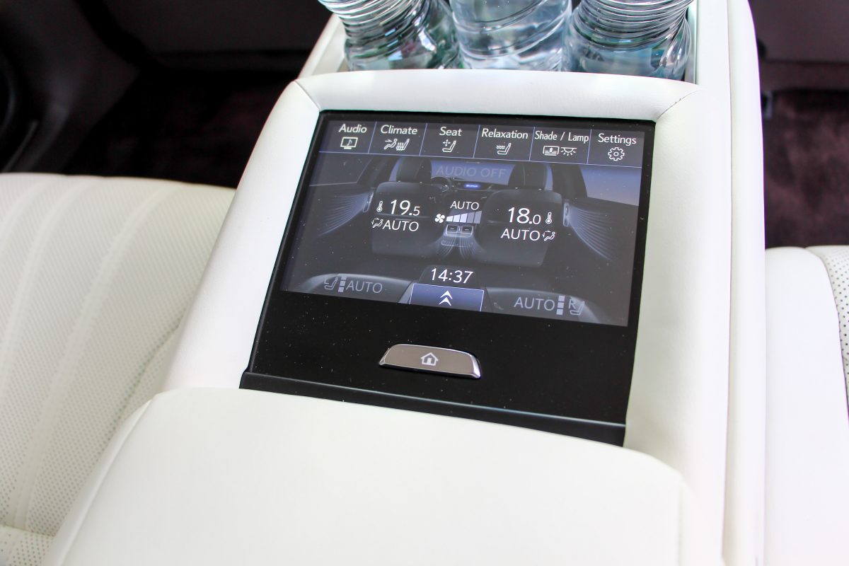 Távirányítással, a két hátsó ülőhely közötti érintőpanelről hajthatjuk előre a sofőr melletti ülést, ugyaninnen kapcsolható a hátsó masszázs is