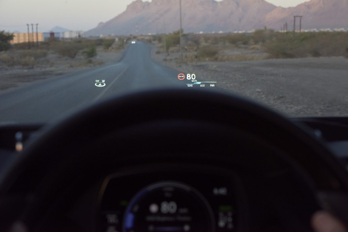 Három méterre a sofőr elé vetít az eddigi legnagyobb head-up display - legalábbis így tűnik, így minimális fókuszváltással olvasható. Szép részlet a műszerfalon végigfutó sínrendszer