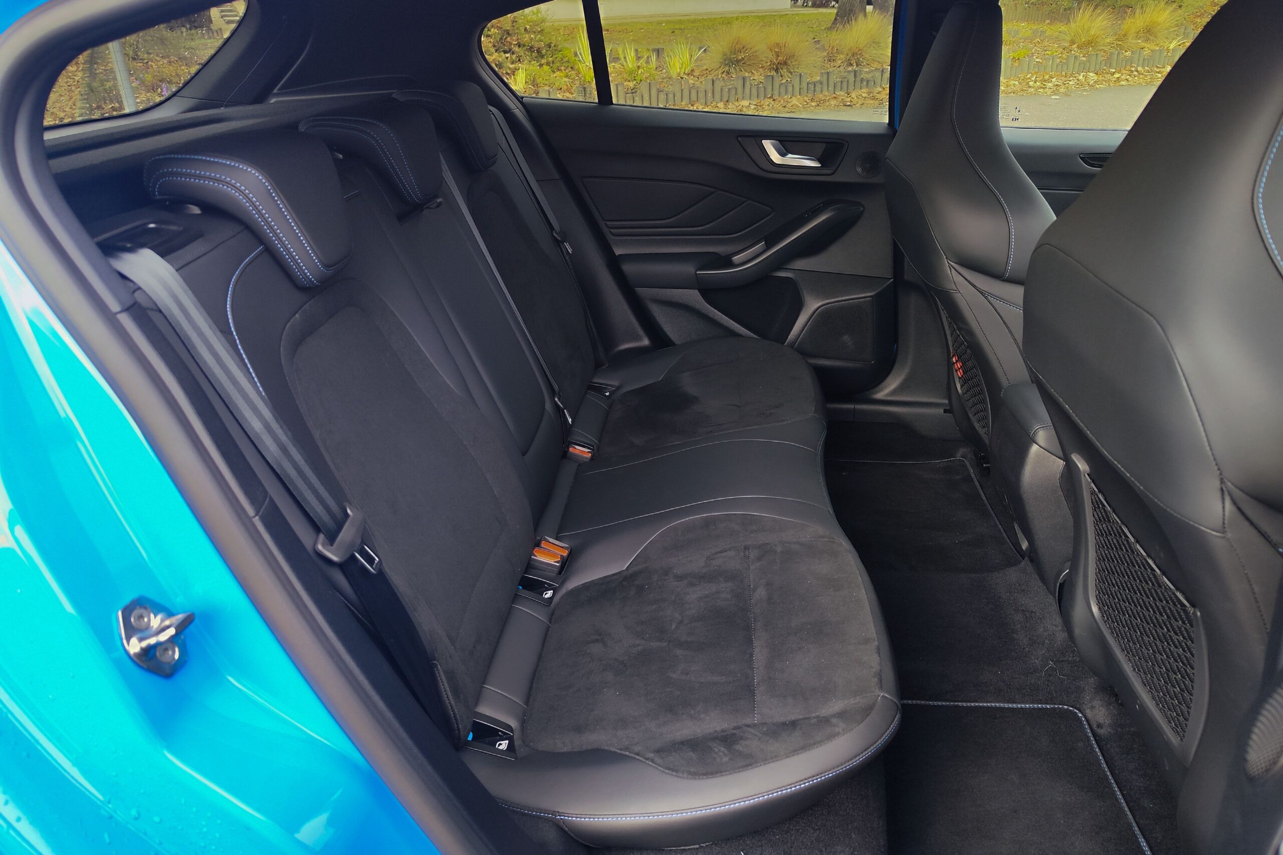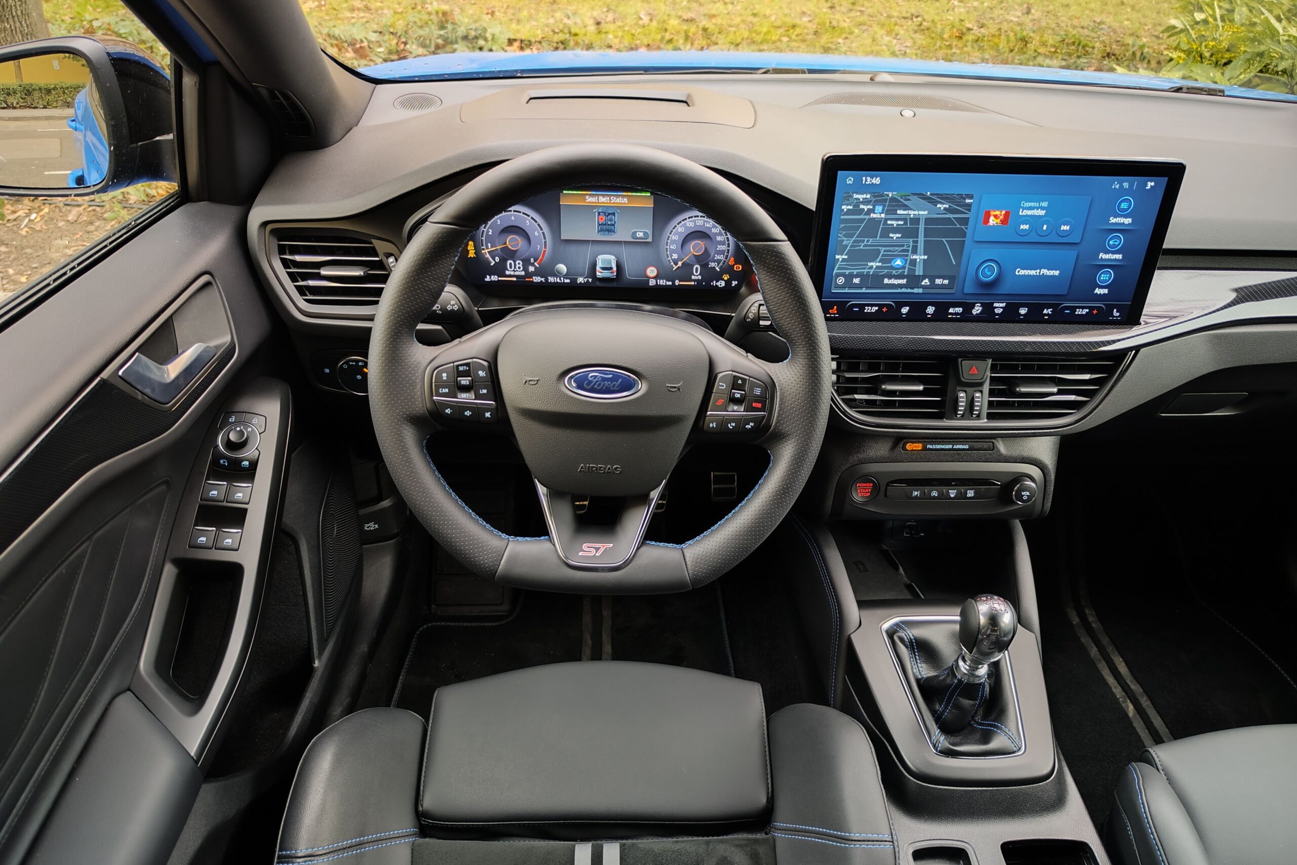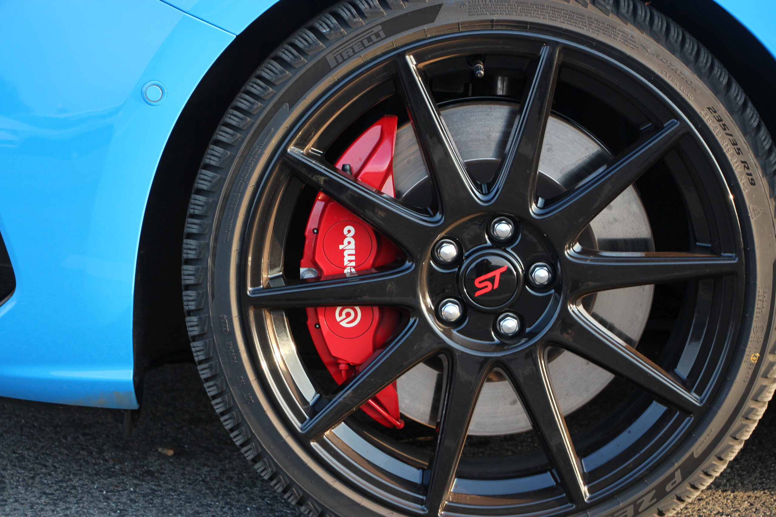 Ám az egyedi fényezésen kívül szinte minden ugyanolyan, mint bármelyik jól felextrázott ST modellen. Méhsejtmintás hűtőmaszk, fekete díszbetétek a lökhárítóban, fekete légterelő hátul, két vaskos kipufogóvég és a diffúzor növeli a sportos hangulatot, a Focus feliratot pedig eltüntették. Végül az új rajzolatú, 19 colos könnyűfém felnik mögött vörös féknyergek harapnak az elöl 330, hátul pedig 302 milliméteres tárcsákra. Látványos az egyszer biztos!