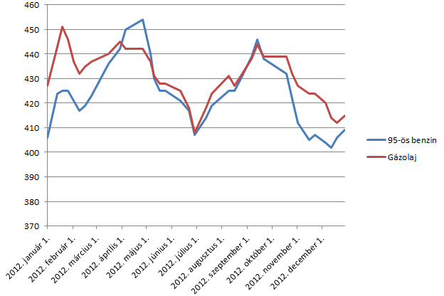 Mivel a gázolaj ára pénteken nem változik, az átlagáron 427 forint marad, pontosan annyi, amennyi a benzin átlagára lesz. Ahogyan korábban írtuk, a gyakoribb emelés egyik indoka, hogy a benzinkutakon ne következzenek be drasztikus változások, illetve, hogy az üzemanyagárak a korábbiaknál jobban tükrözzék a nemzetközi árakat, illetve a forint és a dollár árfolyamát.