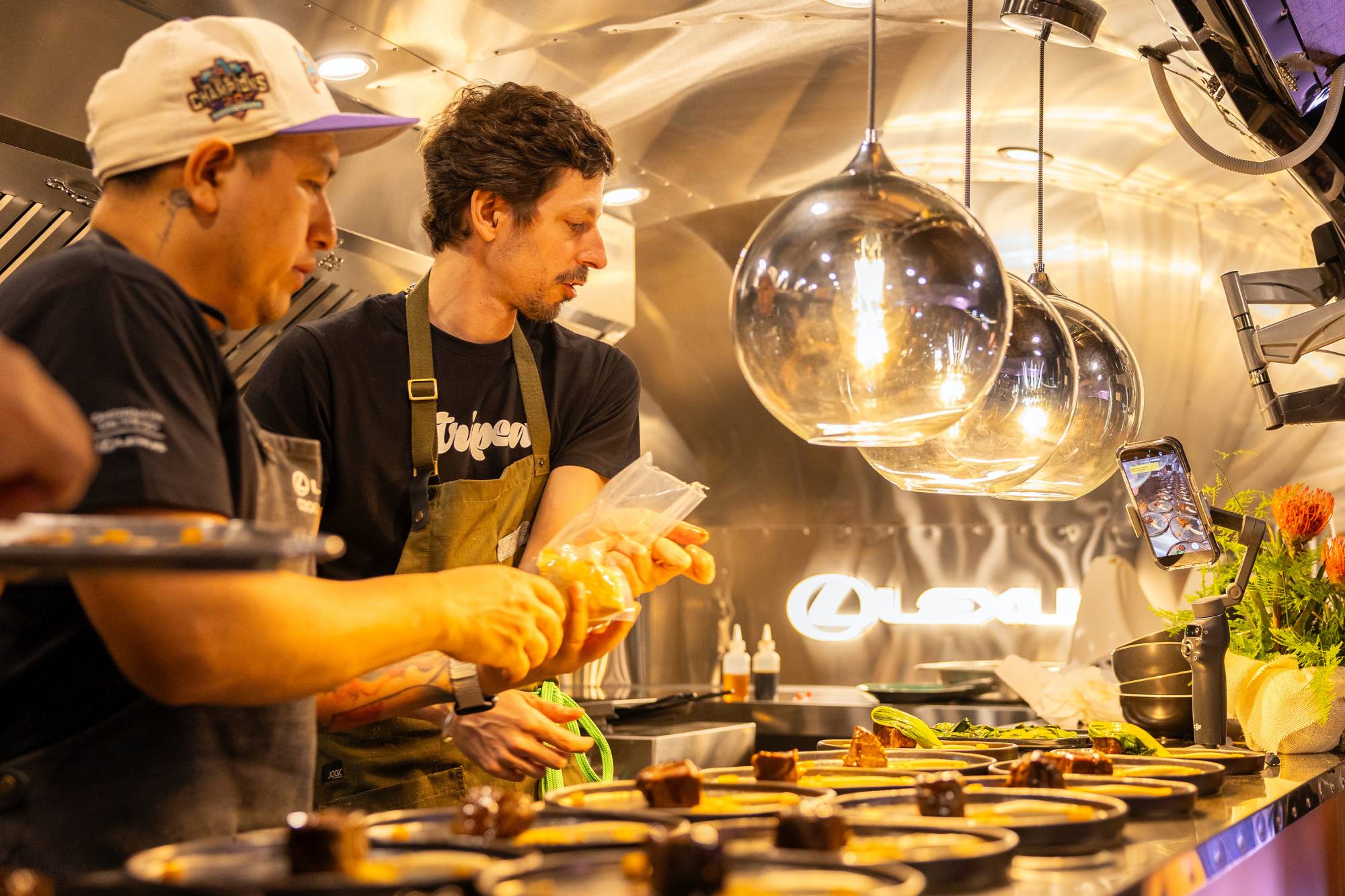 A Lexus nem bíz semmit a véletlenre. A food truck fényeit a 2014-es Lexus Design Award-nyertes, Sebastian Scherer Iris lámpái szórják: kézzel fújt, speciális bevonatú üveggömbök játszanak a fénnyel, és látószögtől függően új és új árnyalatokat jelenítenek meg. A zenei élményről pedig a csak csúcsmodellekbe beépített Mark Levinson No. 519 audiorendszer gondoskodik.