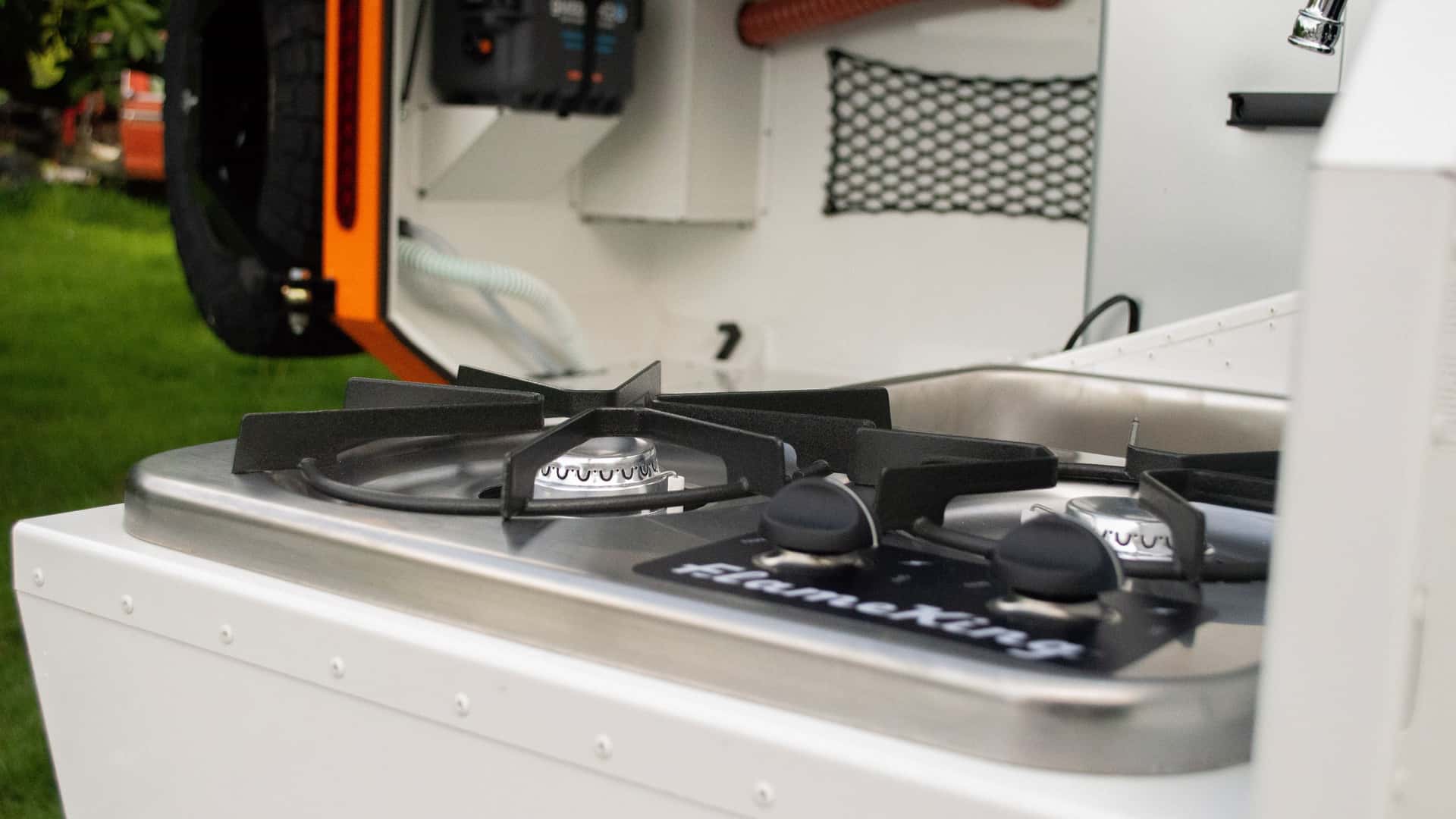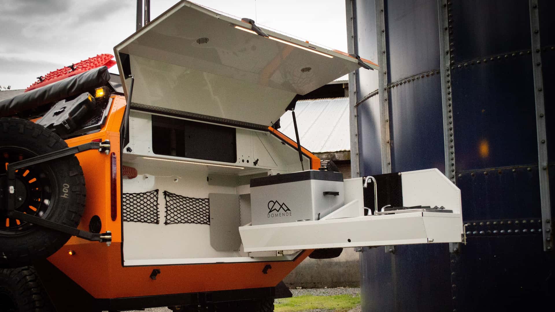 Belül 32 hüvelykes tévéképernyő, műholdas internetkapcsolat, és légkondicionáló is van, bár ezek nyilván pont addig működnek, amíg le nem merülnek az akkumulátorok. Mosdókagyló és gáztűzhely is van, bár ezeket meglepő módon csak kívülről lehet elérni, így csak a veszélyek elmúltával használhatók. Ivásra és tisztálkodásra 80 literes víztartályt építettek az utánfutóba.