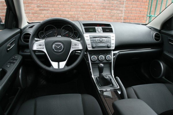 Kritika illeti azonban a Mazda6 belterében felhasznált egyes műanyagokat. Sokak szerint finomabb, kevésbé kopogós borítás illene a műszerfal bizonyos részeire. Szerintem a manapság már túllihegett tapintási érzetnél fontosabb volna, hogy tíz év múlva is műszerfal maradjon, ne egy nyeszergő plasztikhalom. Mert ettől eltekintve a beltér és a kezelőfelületek kialakítása példás ergonómiáról tanúskodik. Jó szögben áll a kormány, pont megfelelő helyen a könyöktámaszok, pompásan beállítható az ülés és remek az üléspozíció. Élvezet innen dirigálni az izgatott vizslához hasonlóan élénk masinát, amely terhelésváltásra finoman, de igen határozottan megindítja fenekét, ezzel is segítve a még jobb kanyarvételt. A sportos futómű mellett ez a kellemesen későn beavatkozó menetstabilizálónak is köszönhető. Érezni, előbb egy önmagában is kiváló futóművet alkottak, és azt finomhangolták később biztonsági elektronikával.