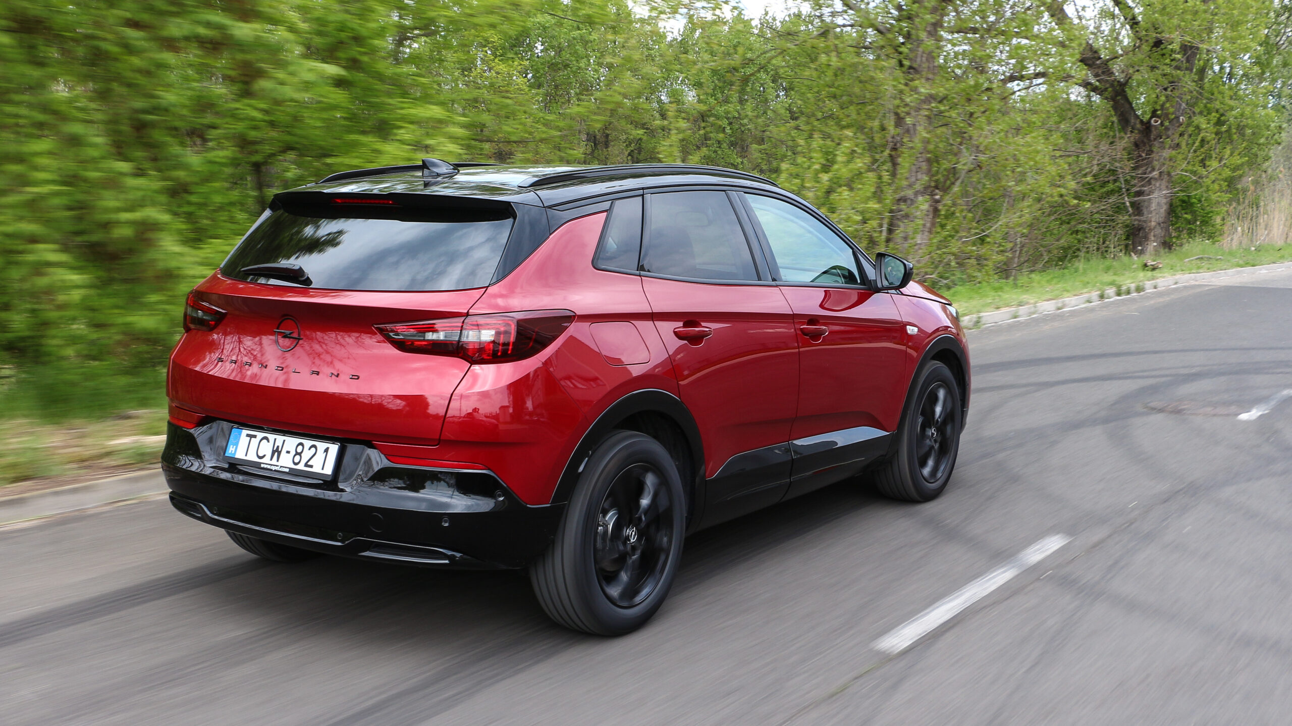 A Grandland összképét sem rontja el az új arc, sőt, egyenesen nagyobbnak és robusztusabbnak tűnik, ami a nevével is jobban harmonizál. Egyébként, ha már itt tartunk, a neve is megtévesztő próbál lenni, akárcsak a faceliftje: ne feledje senki, hogy ez még inkább csak egy közepes méretű autó, lényegében egy megemelt Astra, vagy ha úgy tetszik, akkor egy kicsit kisebb és kerekebb 3008. A PSA, avagy most már Stellantis EMP2 platformját használja tehát továbbra is, ami egy kiváló alap. Méretek terén sem rugaszkodik el az ebből kikövetkeztethetőktől: 2,68 méteres tengelytávja pontosan egyezik az említett Peugeot-val, míg 4,48 méteres hossza, 1,9 méteres szélessége és 1,6 méteres magassága is centiken belül mozog vele, a küszöböt takaró oldalajtókon igazán látványos a hasonlóság. Nem meglepő tehát, hogy hasonlóan is viselkedik, ám amíg az oroszlános modellt a kényelemre, addig a villámosat a feszességre, sportosságra hangolták inkább.