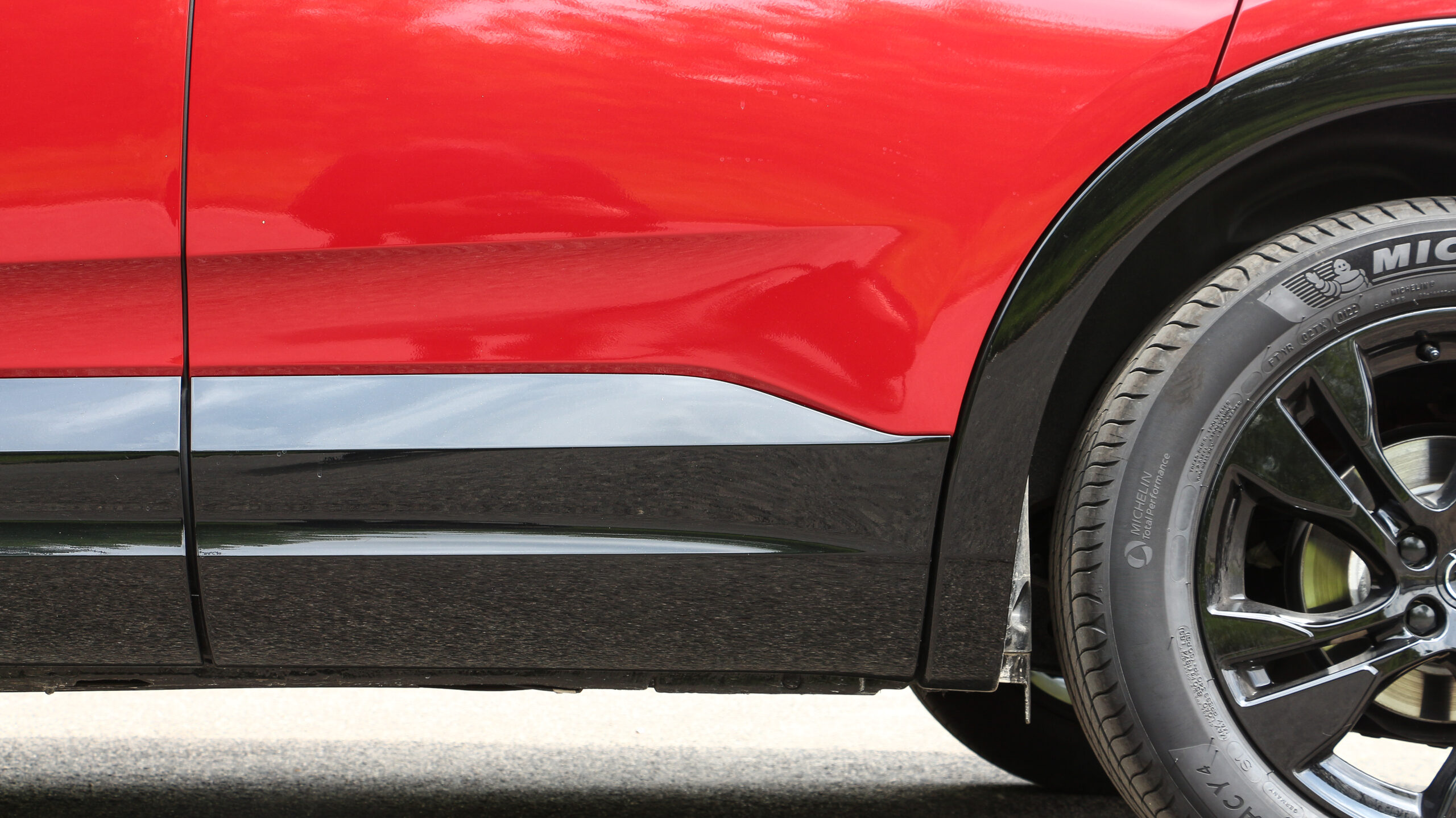 Fekete felnijei összhangban vannak a körbe-műanyagozással, az ajtók pedig a teljes küszöböt elfedik, hogy beszálláskor még véletlenül se koszold össze magad az út porával