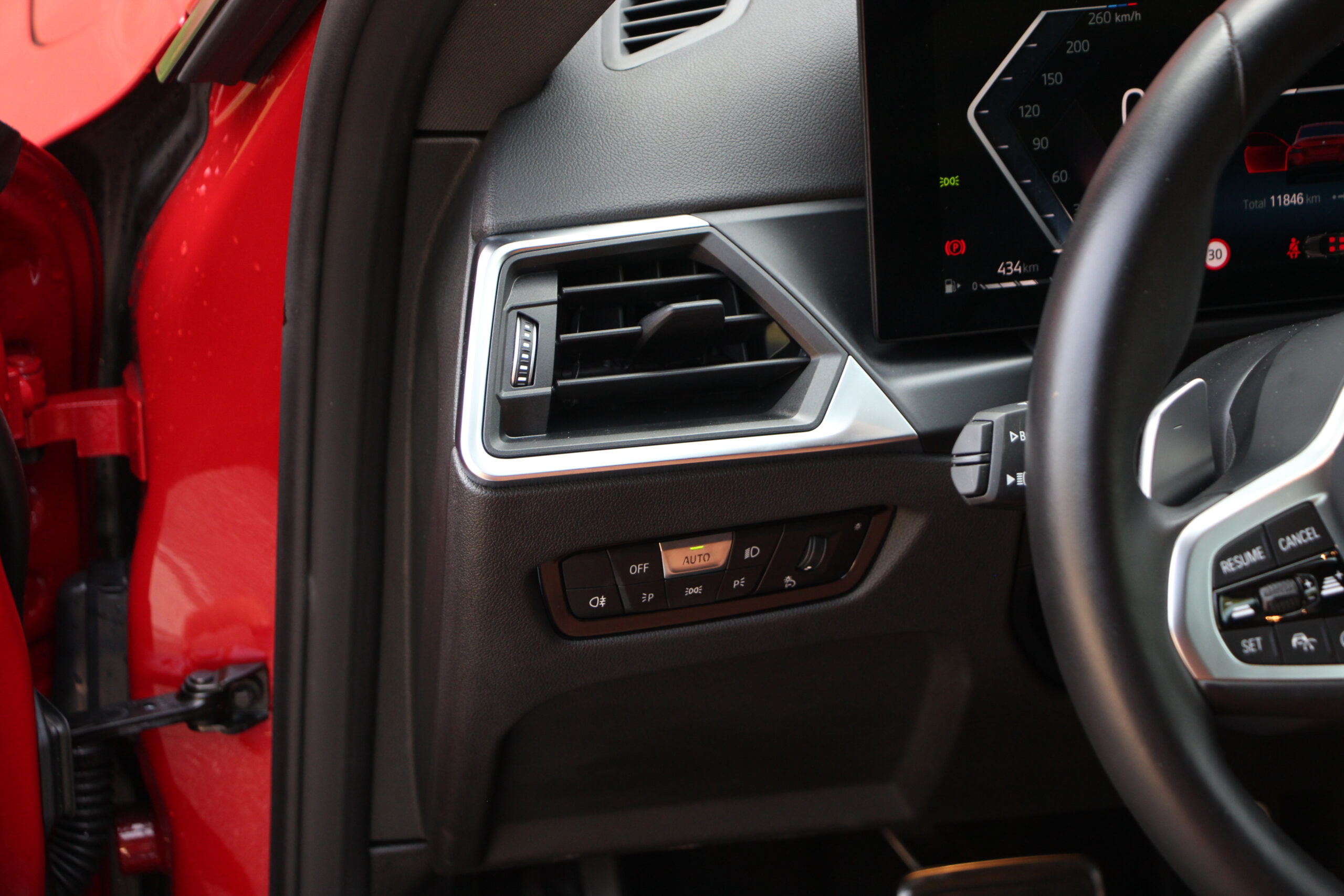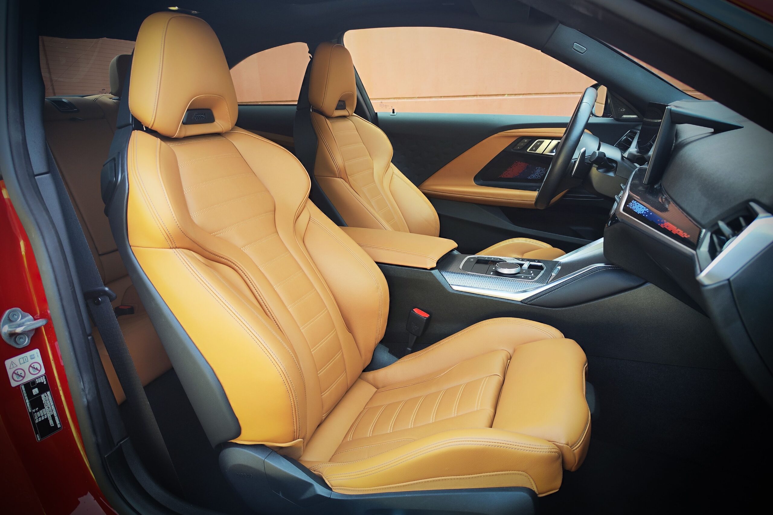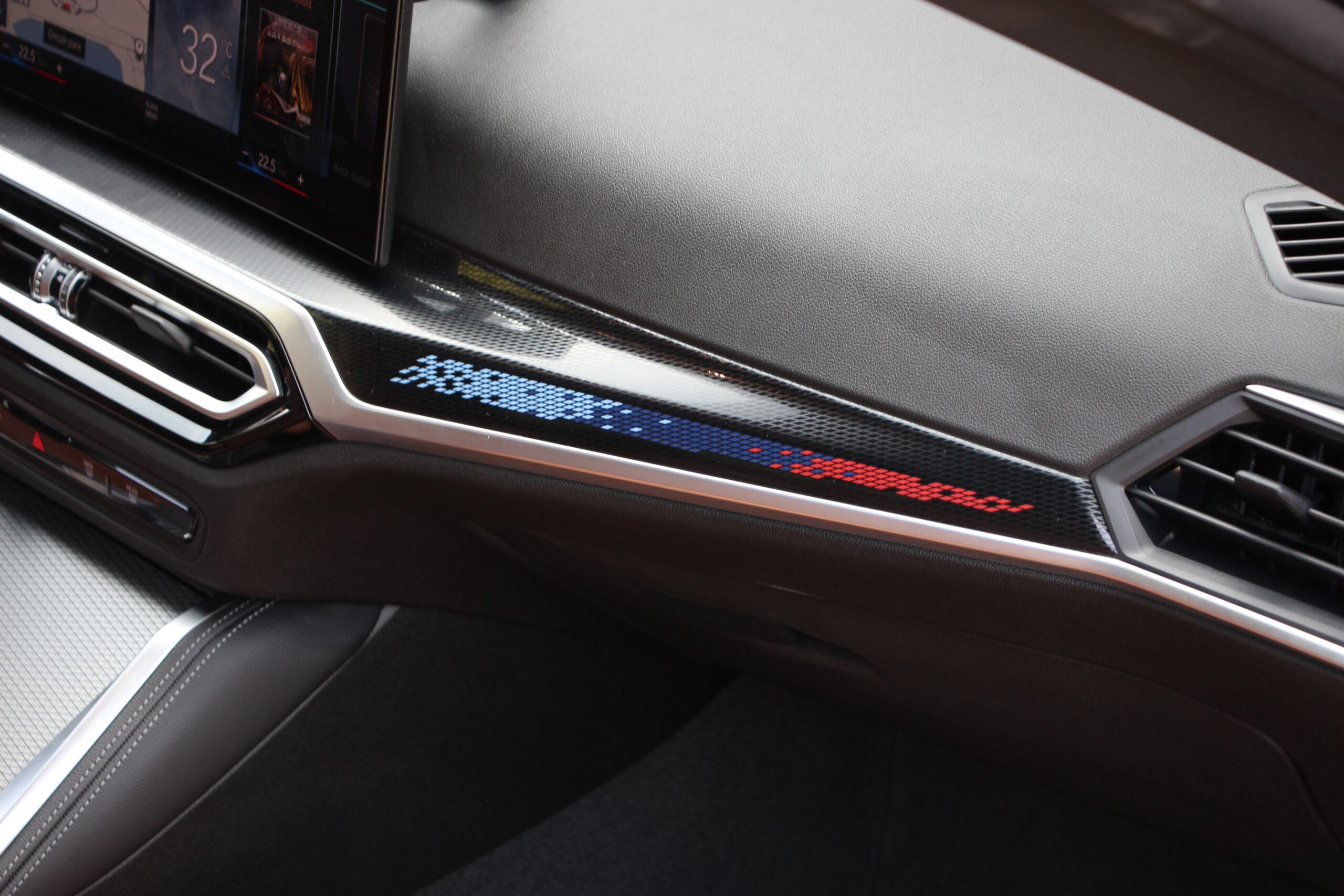 Talán mondanom sem kell, hogy az utastér a BMW-nél széles határok között személyre szabható, a tesztautókat általában kimondottan igényesen válogatják össze, így történt ez most is. A konyak műbőr sportülések elképesztően kényelmesek, jól tartanak comb és deréktájon is. Ugyanebből a színű műbőrből jutott az ajtókra is, ahol a BMW sportrészlegének színei adnak megfelelő aláfestést esténként a cirkáláshoz. A műszerfal a márkától megszokott, technokrata hangulatú a nagy digitális képernyőkkel. Továbbra is csak a kormánykerék vastagságába tudok belekötni, ezt már igazán elengedhetnék a bajorok. Viszont a rövidségéhez képest használhatók a hátsó ülések, persze hosszabb távra ide ne ültesetek felnőtteket, sőt, a 390 literes csomagtér se kicsi. Na jó, azért annyira nem is kicsi, mert 4,5 méter hosszú, a tengelytávolsága pedig 2,74 méter, szóval ez a 3-as sorozat platformjára épül, de annál viszont tényleg szűkösebb.