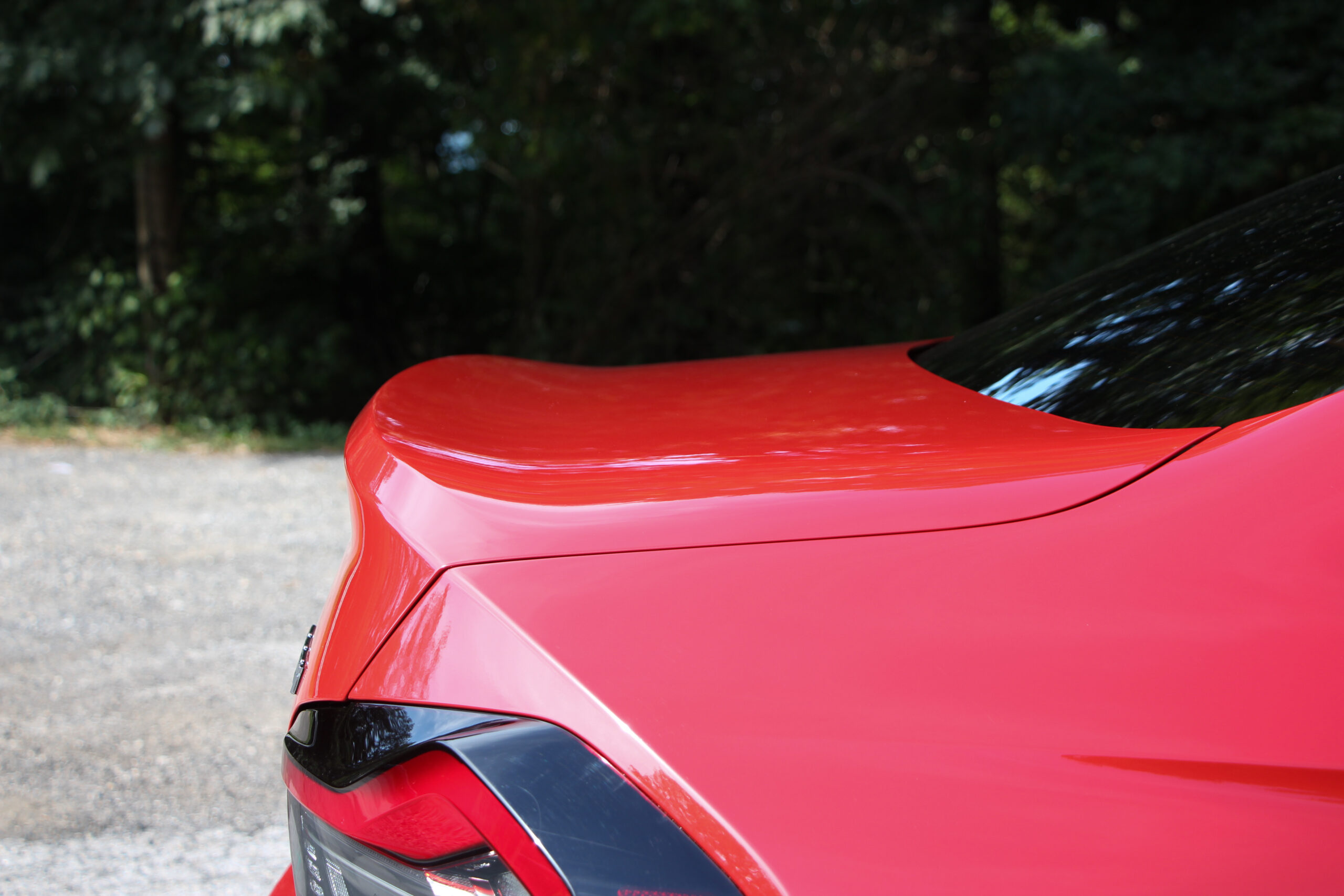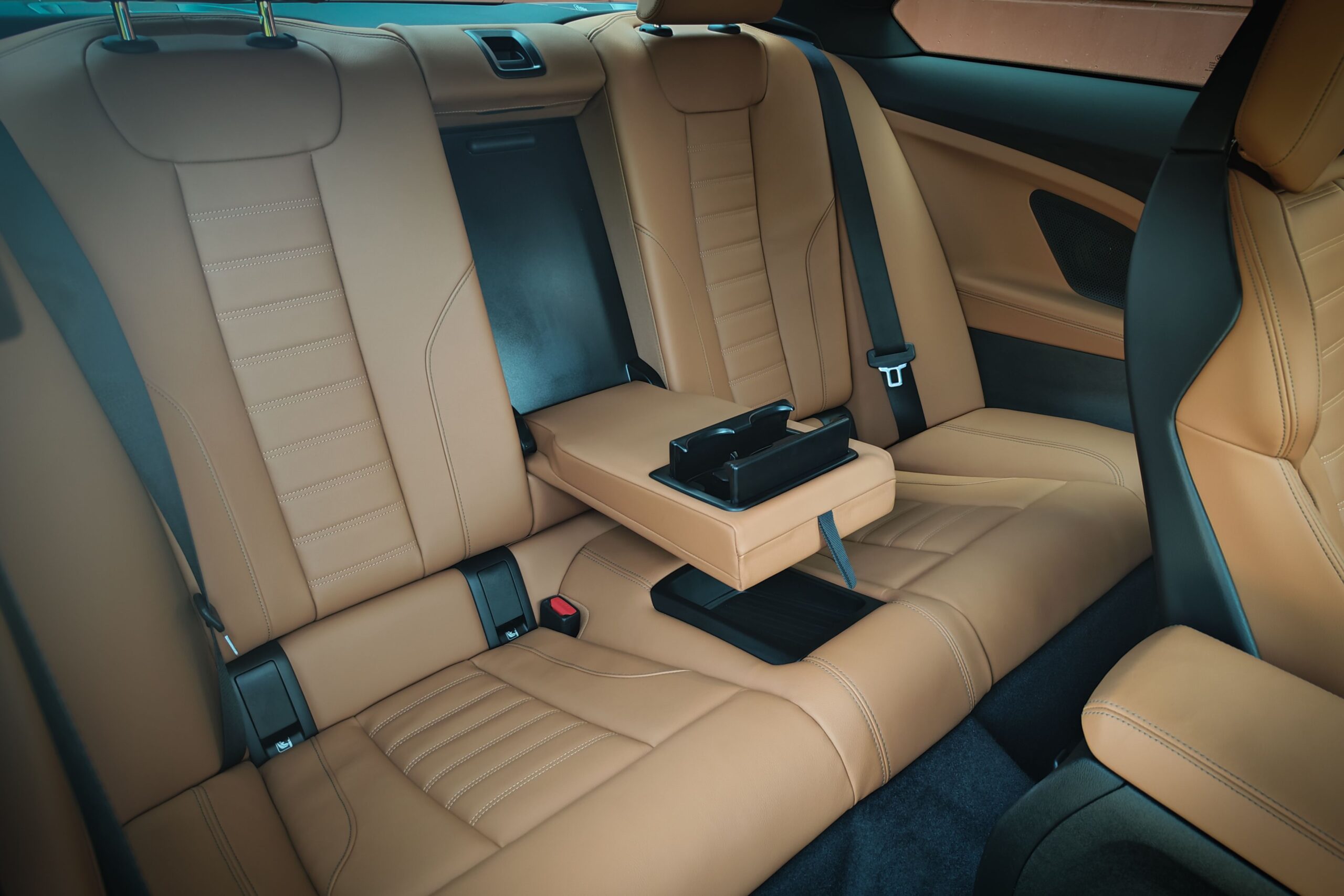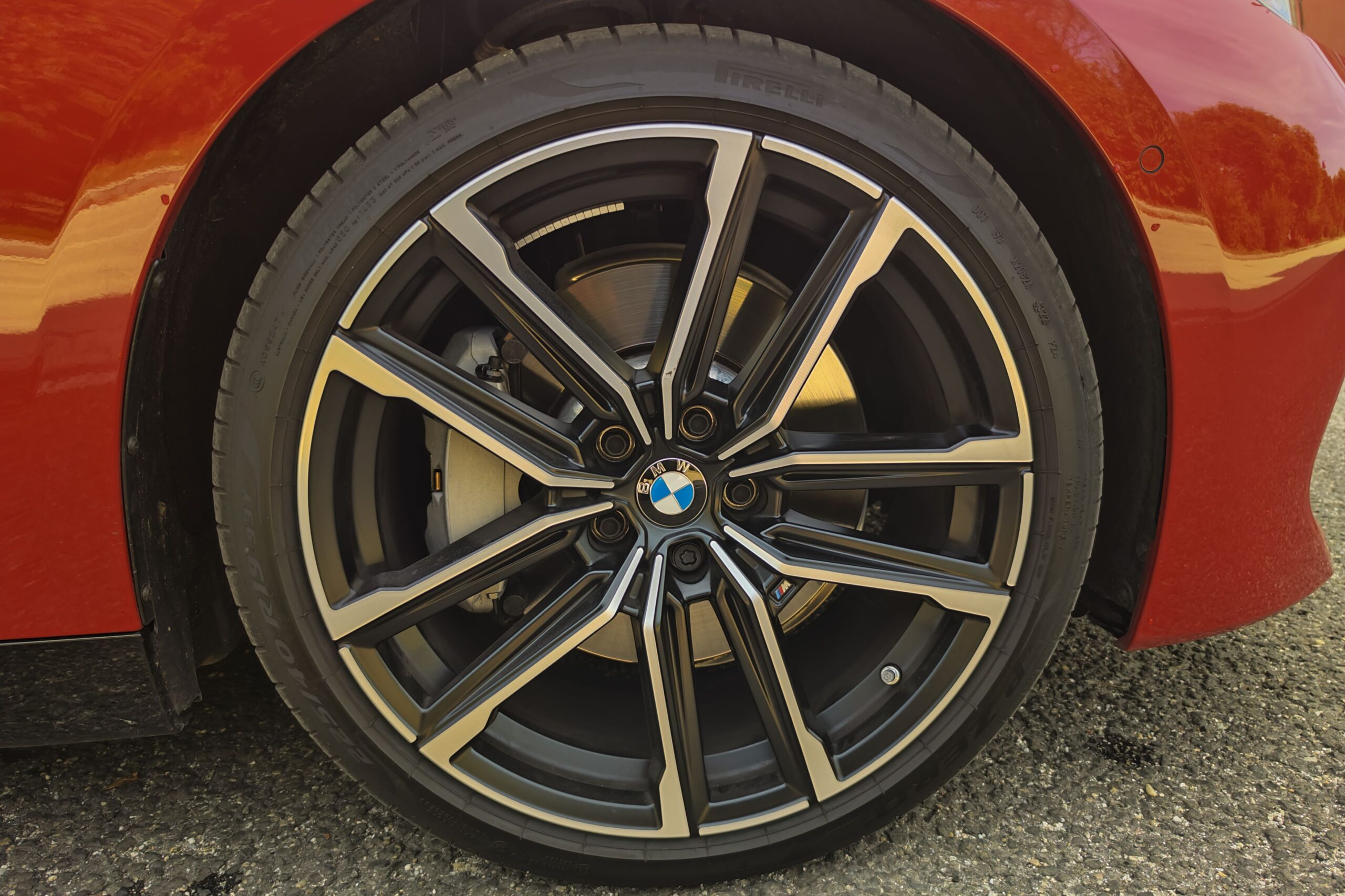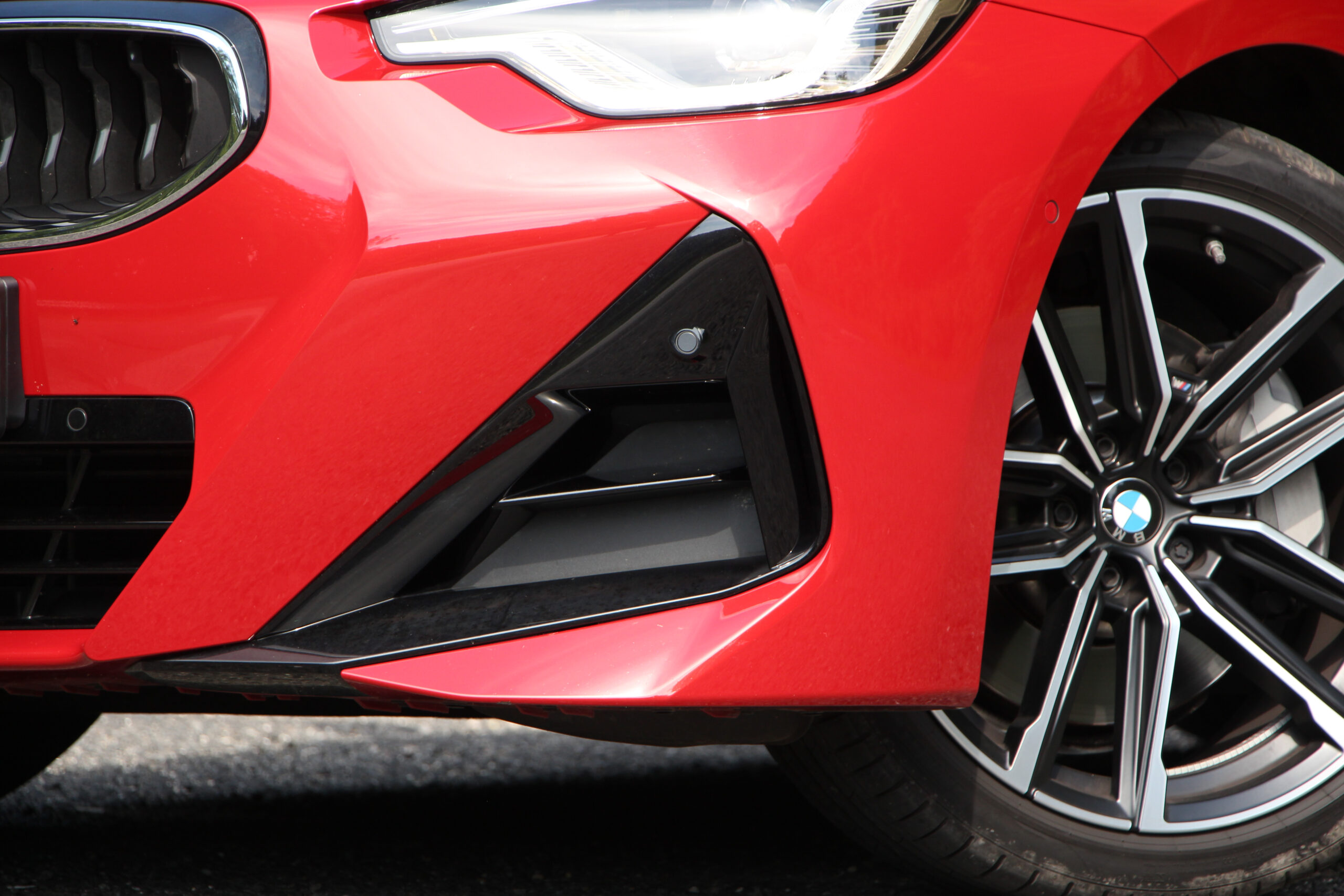 Mindene megvan, ami egy sportkupénak meg kell, hogy legyen. Hosszú orr, ami sejteti, hogy kellőképp erős motort rejt. Aránylag rövid tengelytáv, szintén rövid far, így tökéletesen kiadja egy klasszikus kupé formáját. Nincsenek nagy vesék, sem hivalkodó fényszórómegoldások. AZ M Sport csomag persze látványos lökhárító betéteket ad, illetve a 19 colos felnik is látványosak, de még a 379 ezer forintos „tűzpiros fényezéssel sem magamutogató.
