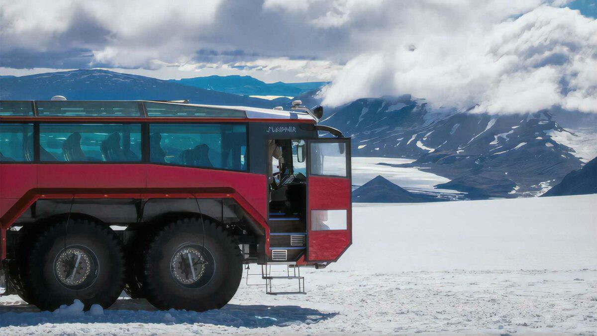 Emberméretű kerekekkel szerelt monstrum szállítja a turistákat Izland zord tájain