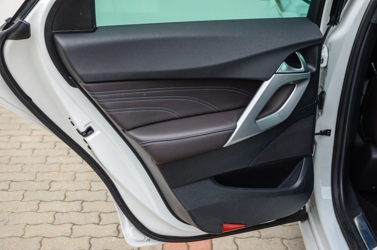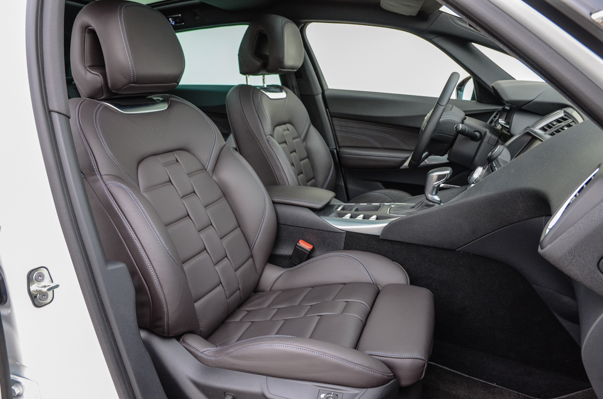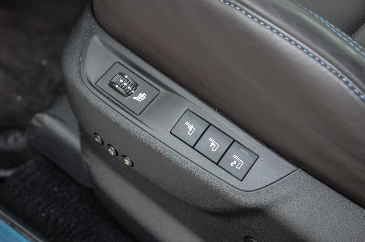 Különleges mintázatával és anyagával egyértelműen prémium érzetet keltenek az ülések. Elöl állítható a combtámasz, a vezető számára masszázs funkció is van