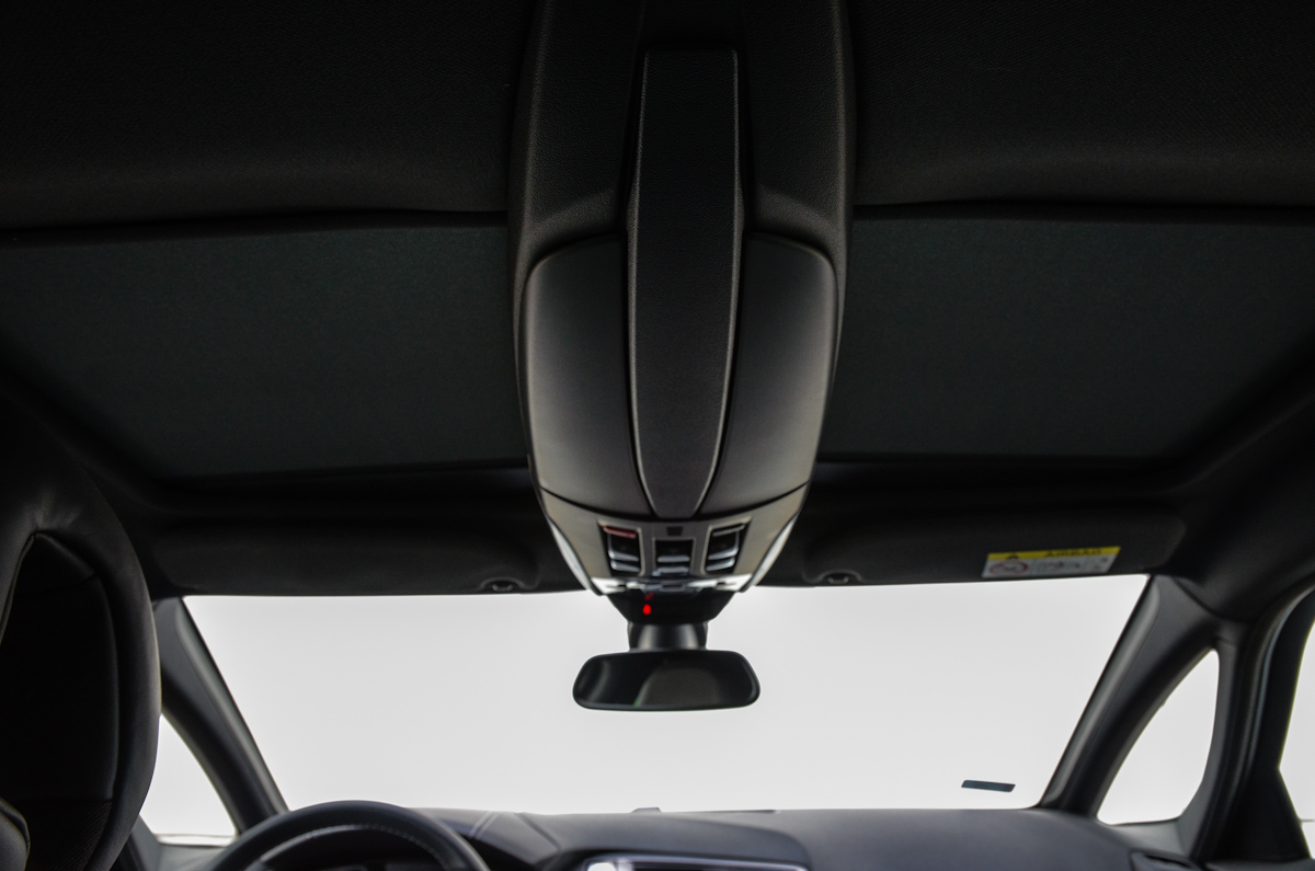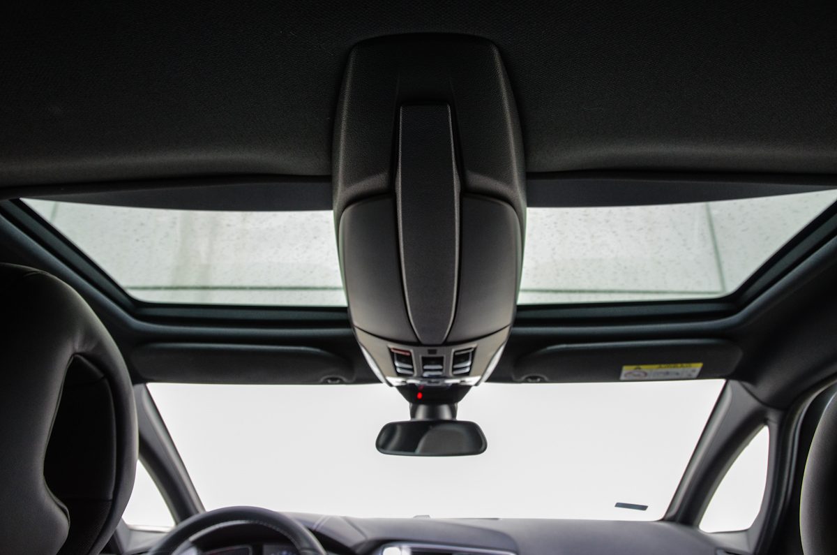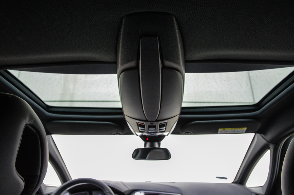 Elöl osztott tetőablak, hátul pedig egy darab panorámaablak található. Egyik sem nyitható, csak a sötétítő vászon húzható el alatta. A világítás mellett a Head Up Display funkcióit is innen vezérelhetjük