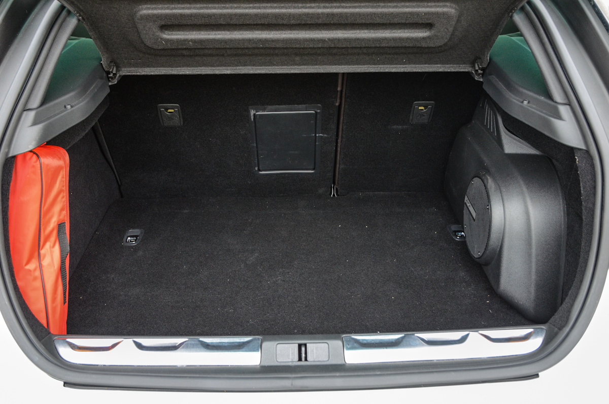 A csomagtér alapesetben is jól pakolható, 468 literes. Az ülések ledöntésével és a kalaptartó kivételével már 1288 literes raktér áll rendelkezésre