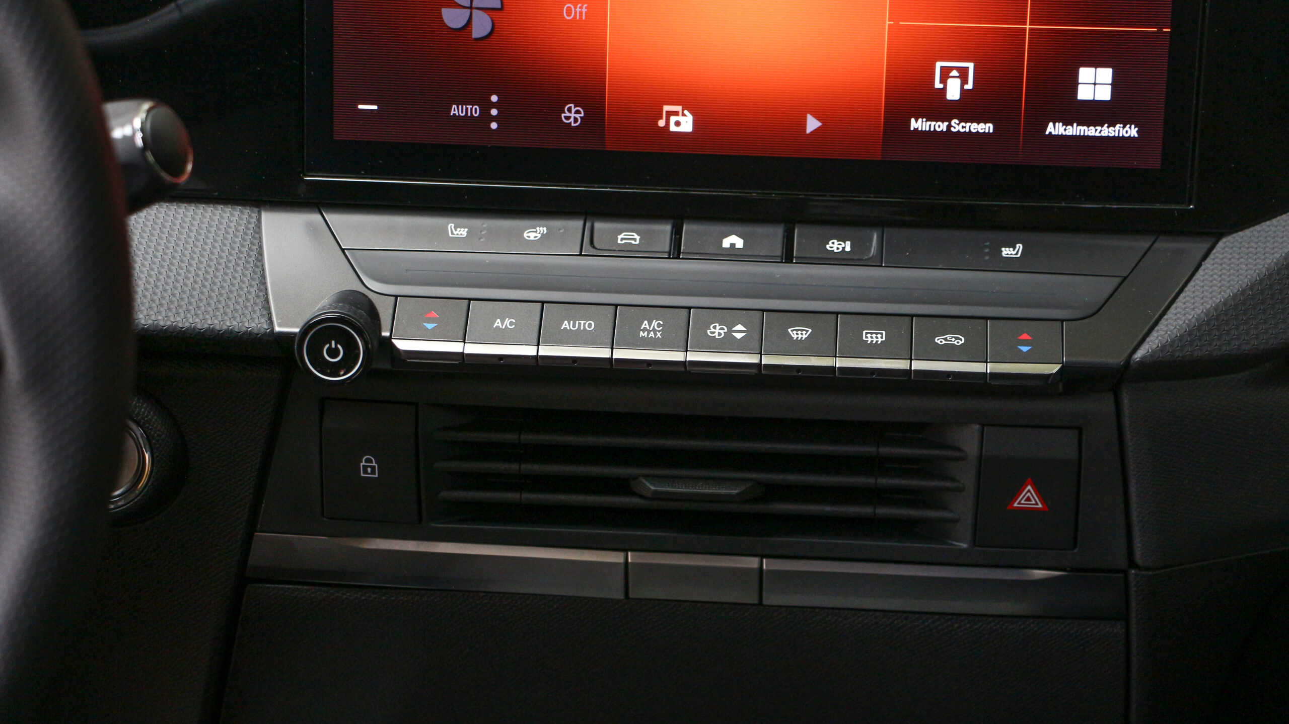 A klímát vezérlő fizikai gombsor kellemes meglepetésként ért, vezetés közben a szellőztetés gyors állításához így nem kell az érintőképernyőn matatni