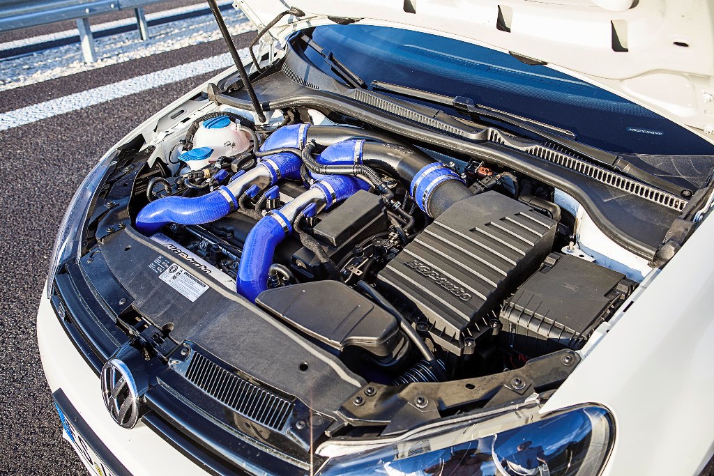 A HGP legerősebb Golfjába a Passat R36 3,6 literes V6-os motorja kerül turbófeltöltéssel, ami a cég honlapja szerint 530 lóerőt tud 700 Nm maximális nyomaték mellett. Mindez kombinálva a hatfokozatú DSG váltóval és az R összkerékhajtásával elég meggyőző. A HGP brutál Golfja könnyebb a Ferrarinál, ezért tudja vele tartani a lépést, és a legszebb, hogy a HGP mesterei hajlandóak a kuncsaft által hozott bontott alkatrészekből is dolgozni, hogy aztán az alábbi videóban láthatóhoz hasonló meglepetéseket okozhasson.