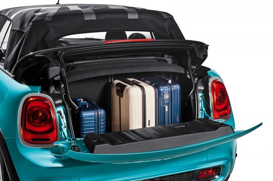 A háromajtós alap Minihez hasonló a zárt tetős kabrió sziluettje, de ennek lemez helyett teljesen hátranyíló vászonteteje van. A nyitás elektromos, 18 másodpercet vesz igénybe a mozdulat, és 30 km/órás sebességig elvégezhető. Aki a praktikumra hajt, azt biztos nem hatja meg a Mini Cabrio 25 százalékkal 215 literre bővült, ülésdöntéssel bővíthető csomagtartója, pedig ez is szép fejlődés. A külső növekedésével az utastér is tágasabb lett, ahogy a többi új MINI-ben, itt is lehet majd érezni a nagyobb fej-, váll- és lábteret, és nőtt a székek ülőfelülete is.