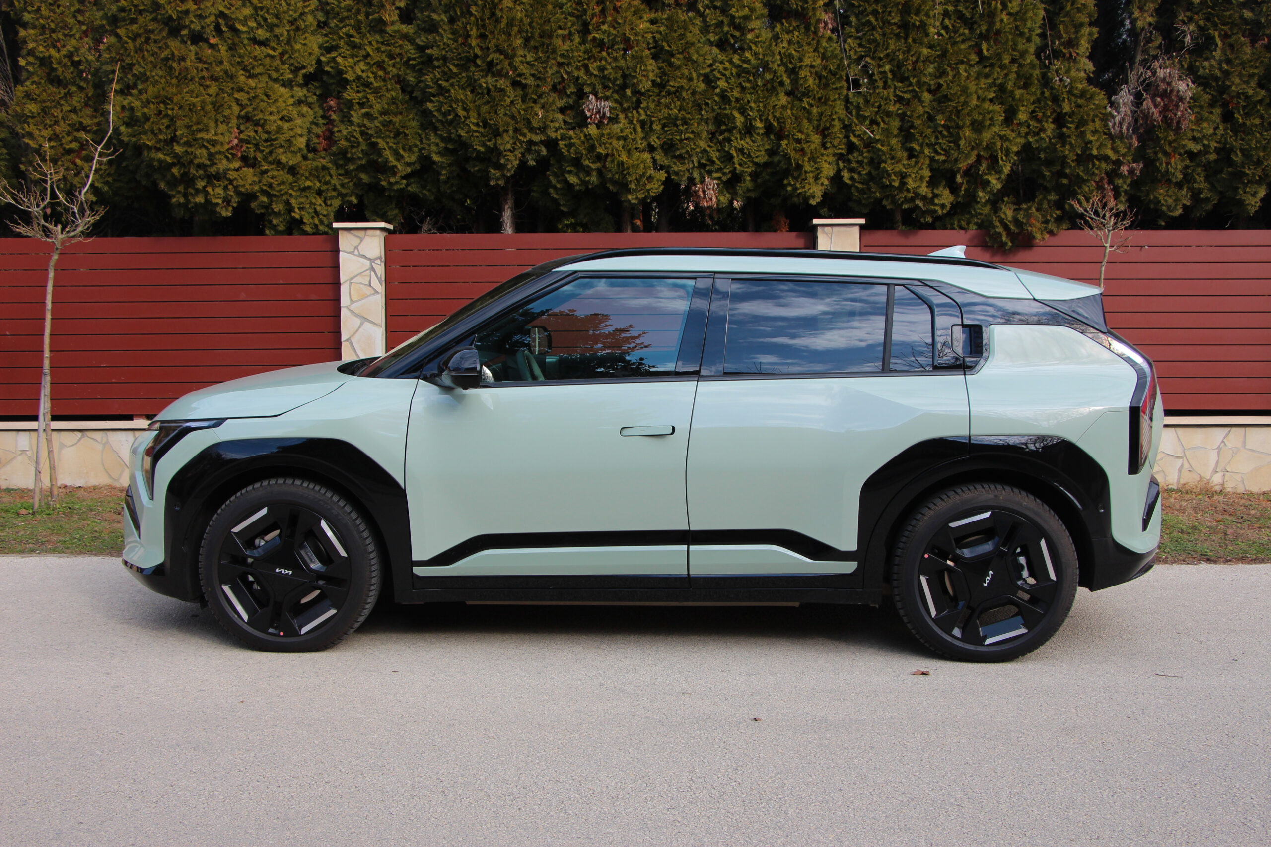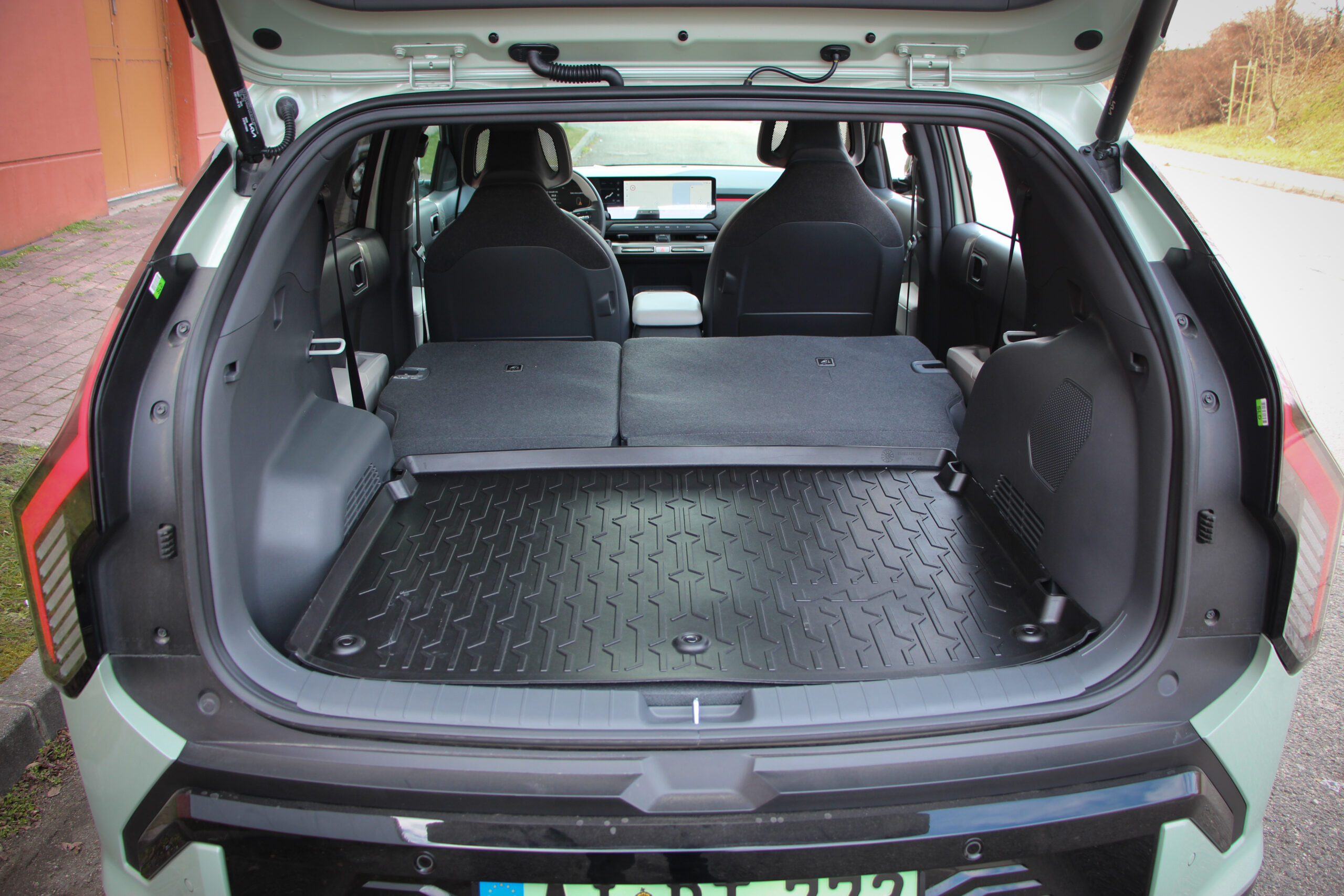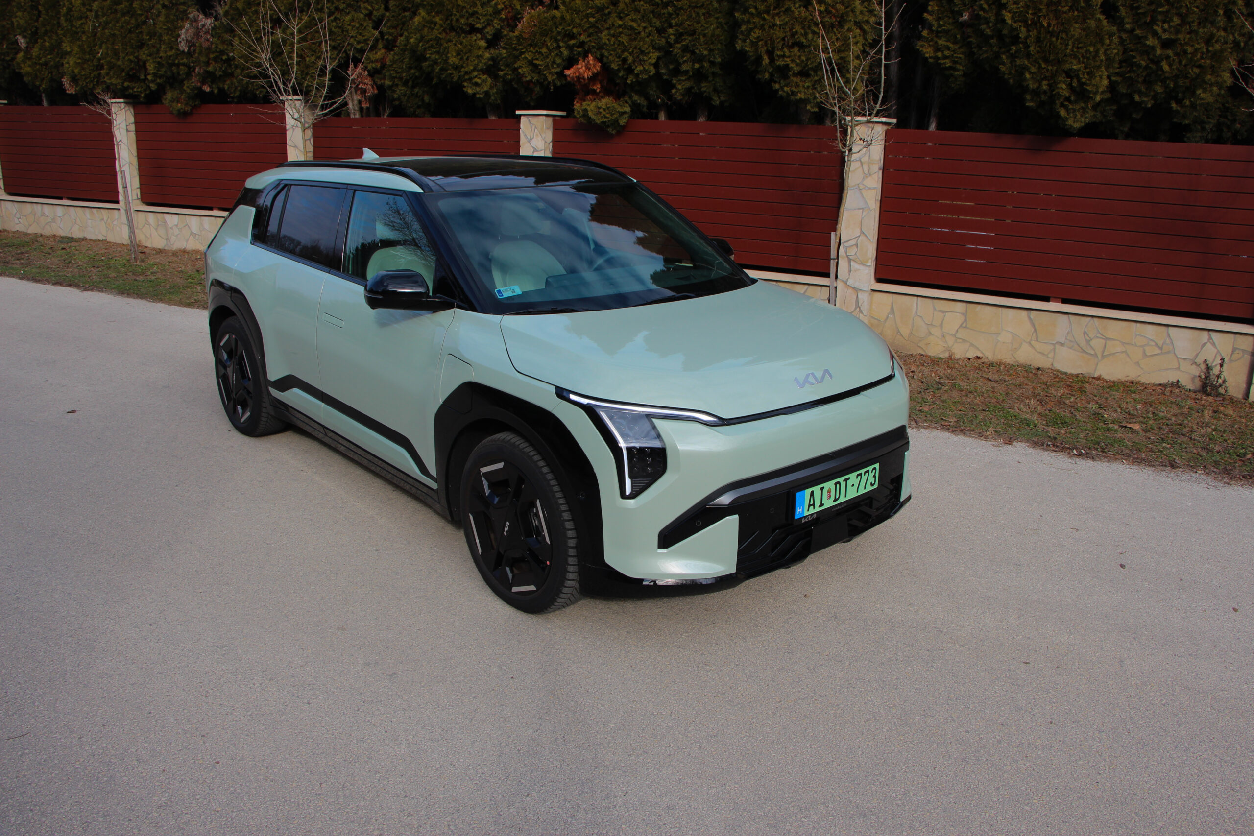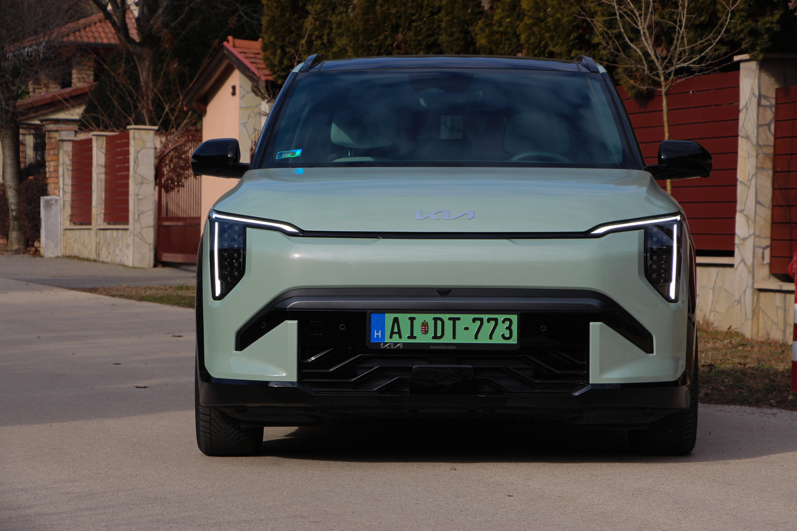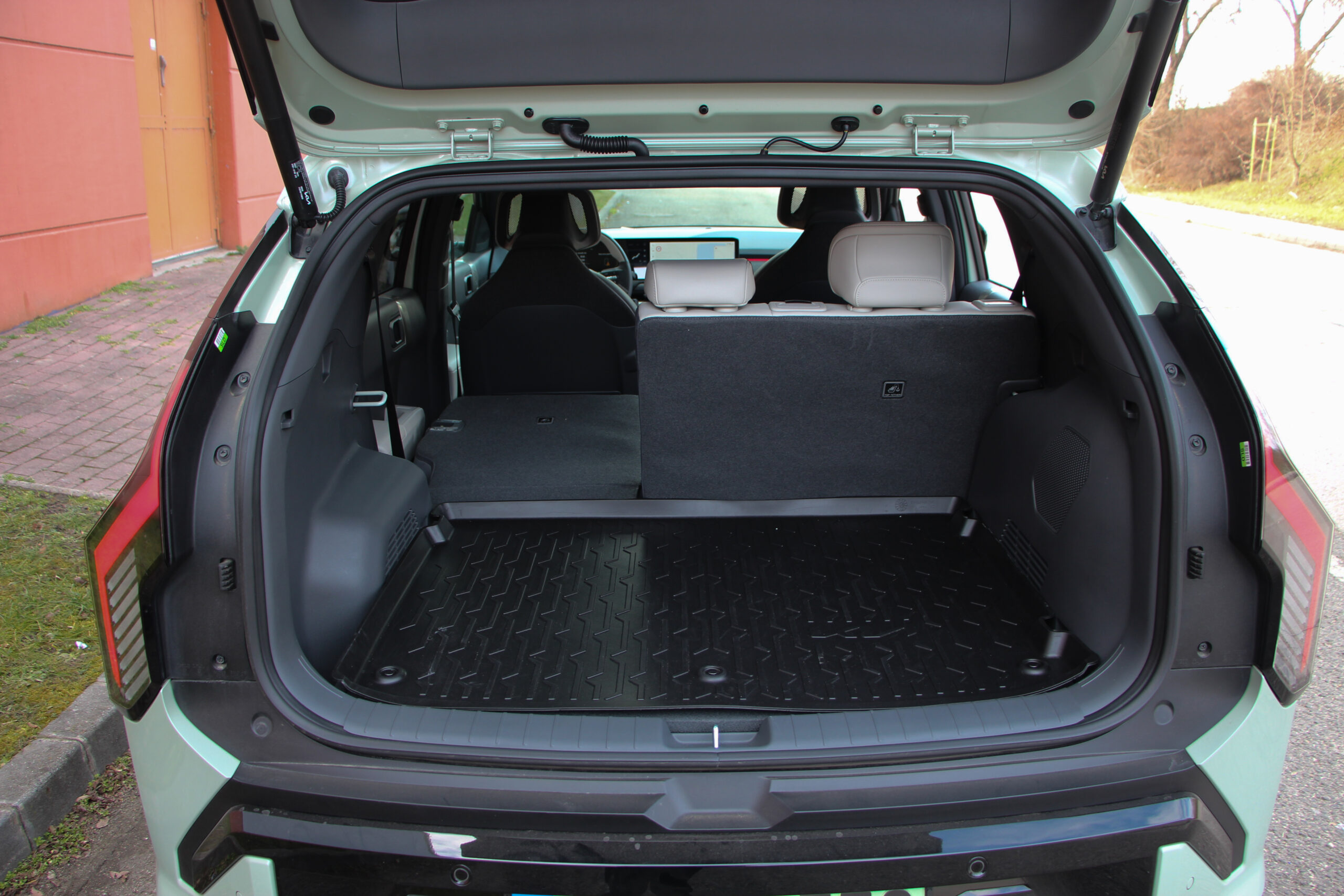 Ahogy korábban már több tesztben is említettem a Niro volt az egyik első olyan villanyautó, ami szerintem tökéletesen alkalmassá vált családi mindenesnek. Az EV3 hasonló receptet követ, csak épp más kategóriában, de itthon mindenképp alkalmas lehet szerintem kisebb családok számára is. A 2,65 méteres tengelytáv, és a 4,3 méteres hosszúság alkalmassá teszi arra, hogy akár 4 felnőtt is kényelmesen elférjen, de a tesztidőszak alatt 5 felnőttel és a csomagjaikkal is boldogult, ám mielőtt nagyon elmélyednék az utastérben, jöjjön néhány gyors gondolat a formatervről. Már csak azért is mert egymás után járt nálunk a sportosnak szánt GT Line és a „polgáribb” változat.