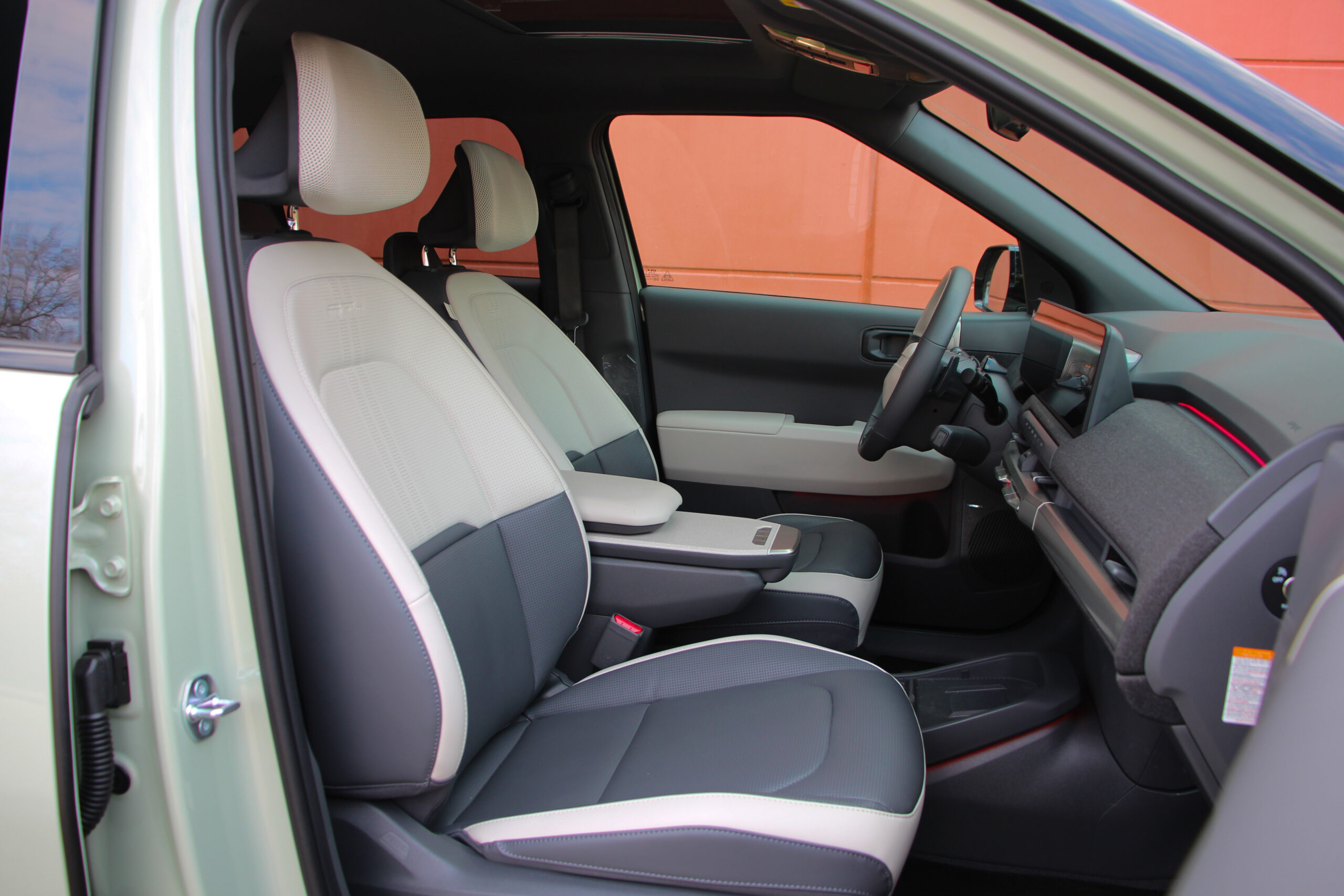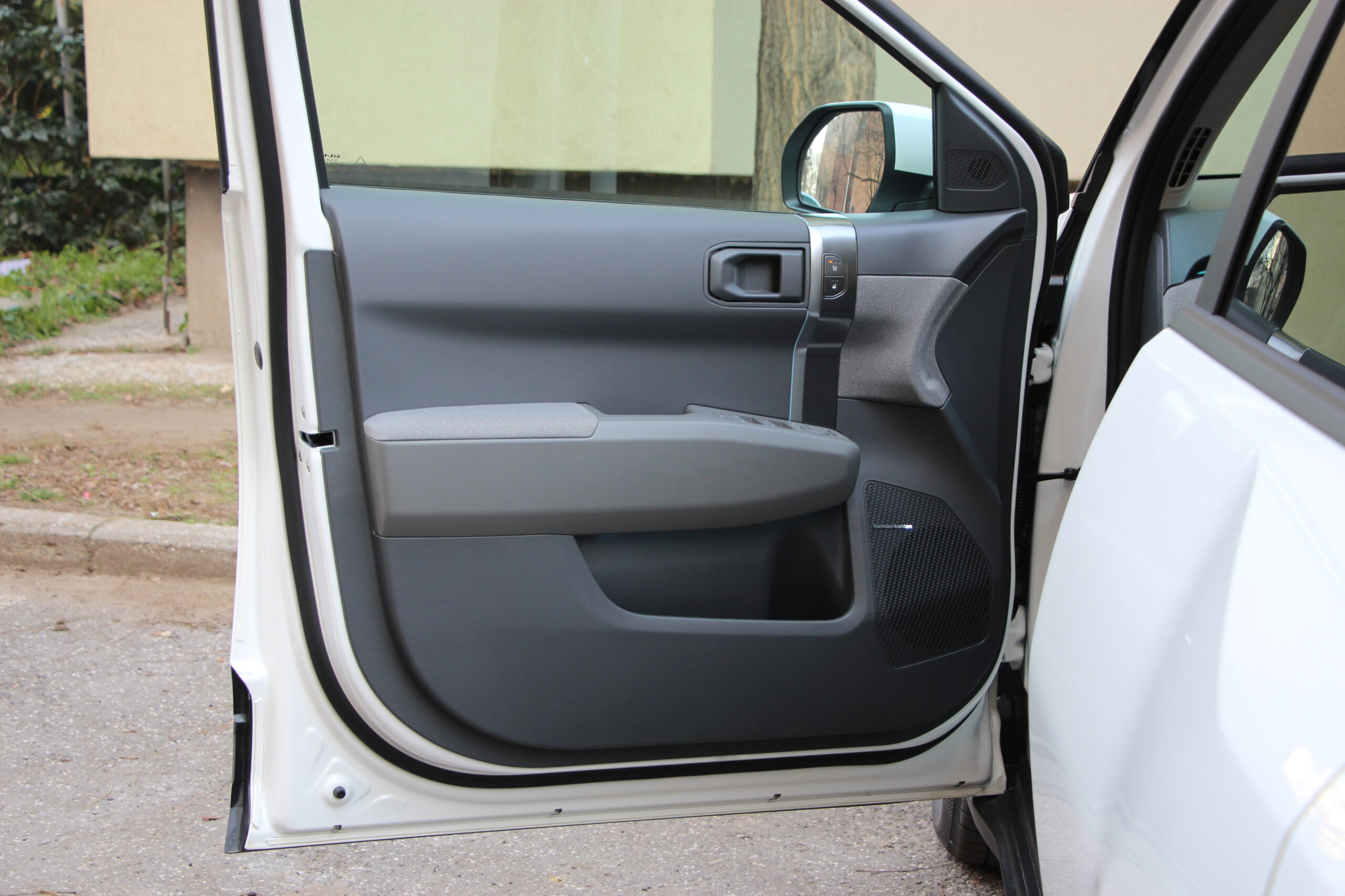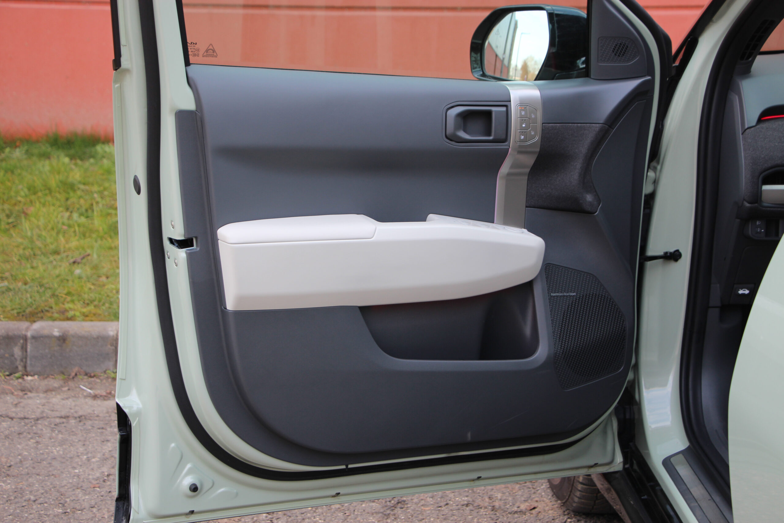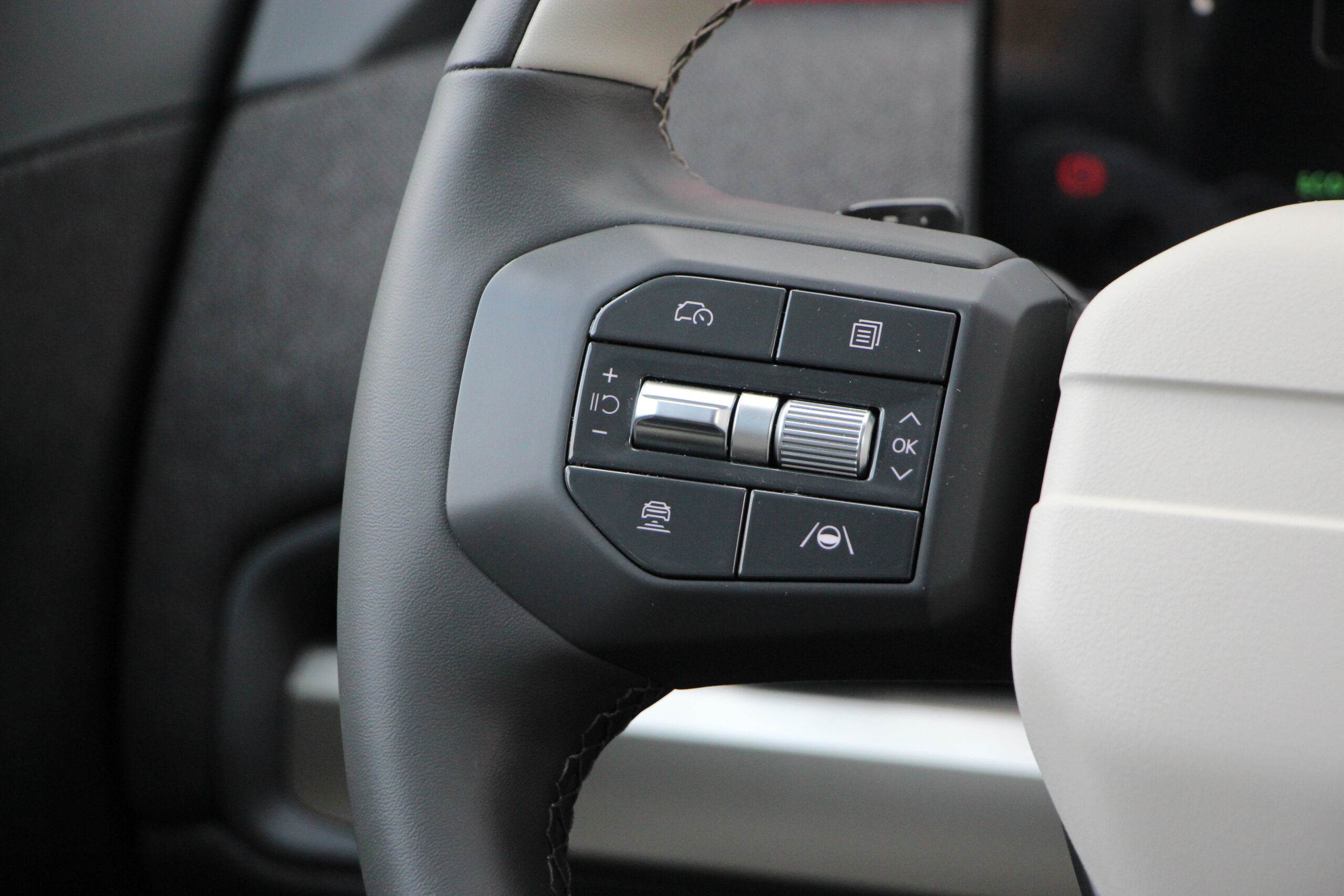 Bent is akad némi különbség a GT Line és az Earth Plus felszereltségű modellek között. Mondjuk ez főleg a kormánykereket és az üléseket jelenti. A GT Line-ban háromküllős, míg a másikban teljesen más kialakítású, és még a kormányra helyezett üzemmódválasztók is máshol helyezkednek el. Számomra külön öröm, hogy kapott tényleges ki-be kapcsológombot az autó, mert egyre inkább terjed az elektromos szekerek körében a beülsz és egyből menetkész megoldás, ami engem kimondottan idegesít. Bár nem tudom racionálisan megmagyarázni, miért. A lényeg, hogy az EV3-ast be kell indítani és le kell állítani, mint egy rendes autó, bár a gombot talán túlságosan is az irányváltó bajuszkapcsoló tövébe rejtették.