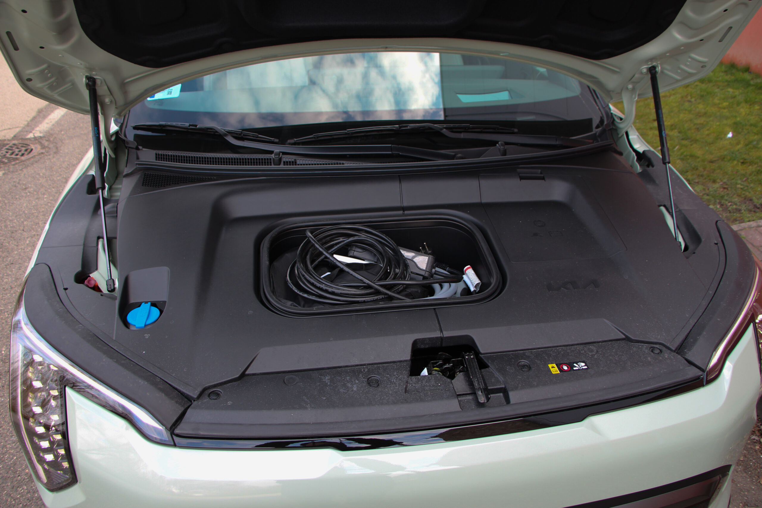 Az ülésekre visszatérve: a GT Line kéttónusú kárpitot kap, de a kialakítás ugyanolyan, tehát nem kagylósabb a „sportos” változatban. Nincs is rá szükség, de az Earth Plusból azért hiányoltam a jobbegy elektromos állíthatóságát, ami a GT Line-ban benne van. Hátul mindkettőben kellemes a párnázottság, és fűthetőek is, ami nagyon jól jött a pont bekopogtató igazi téli időben. A csomagtér is mindkettőben 460 literes alaóból és 1251 literesre bővíthető a 60/40 arányban osztható ülések lehajtásával. Ráadásul elöl is van 25 literes frunk, ahol pont elfér két töltőkábel, így nem rabolnak helyet hátul.